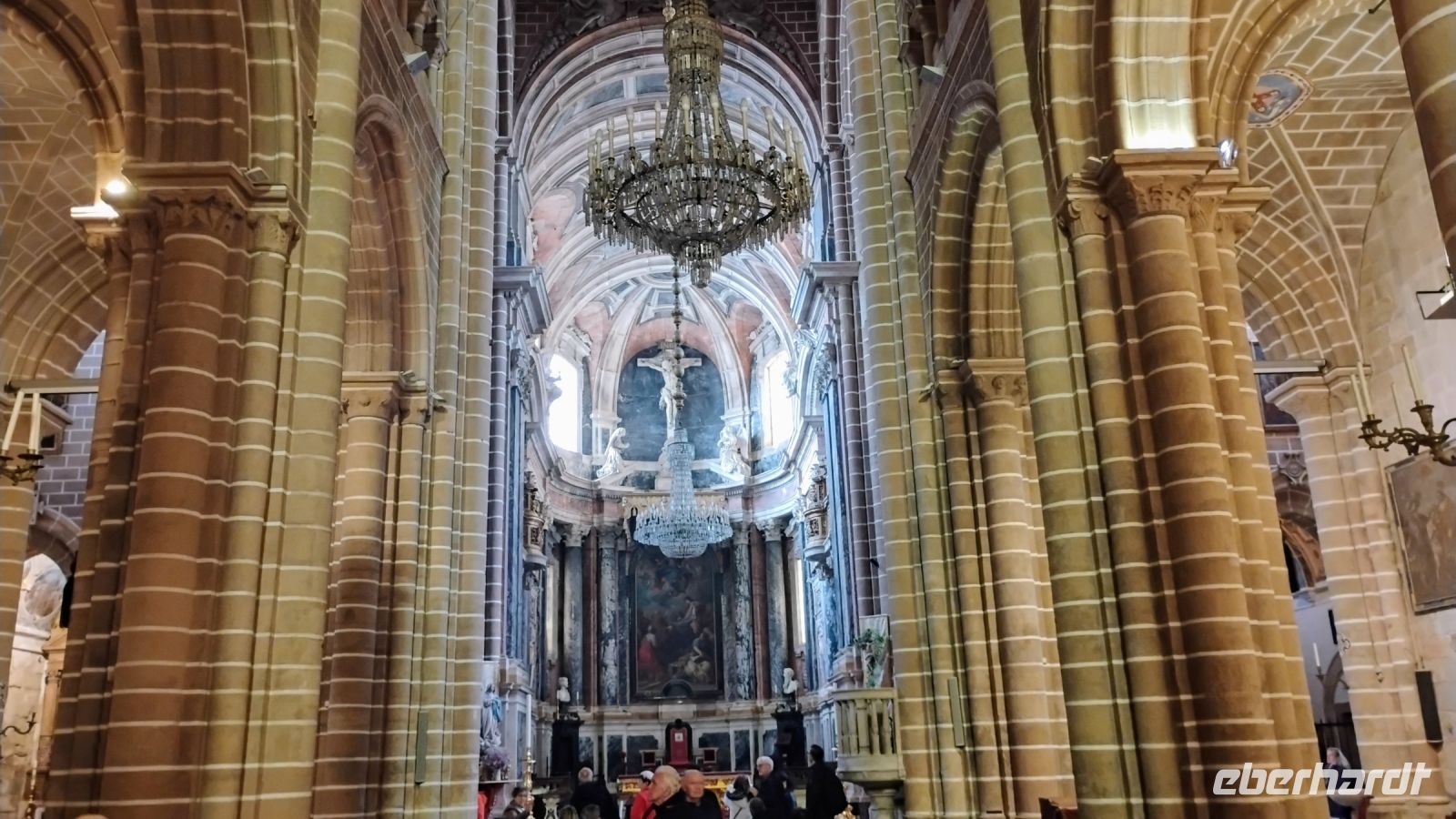 Im Anschluss führte uns die Fahrt in die geschichtsträchtige Stadt Évora, das kulturelle Zentrum des Alentejo. Innerhalb der alten Stadtmauern begaben wir uns auf einen Rundgang durch die verwinkelten Gassen der Altstadt. Dabei begegneten wir Zeugnissen aus unterschiedlichen Jahrhunderten: dem gut erhaltenen römischen Dianatempel, der mächtigen Kathedrale mit ihren romanisch-gotischen Formen sowie zahlreichen malerischen weißen Häusern mit bunten Fensterrahmen. In der Freizeit blieb noch etwas Zeit, die besondere Atmosphäre Évoras auf eigene Faust zu genießen.