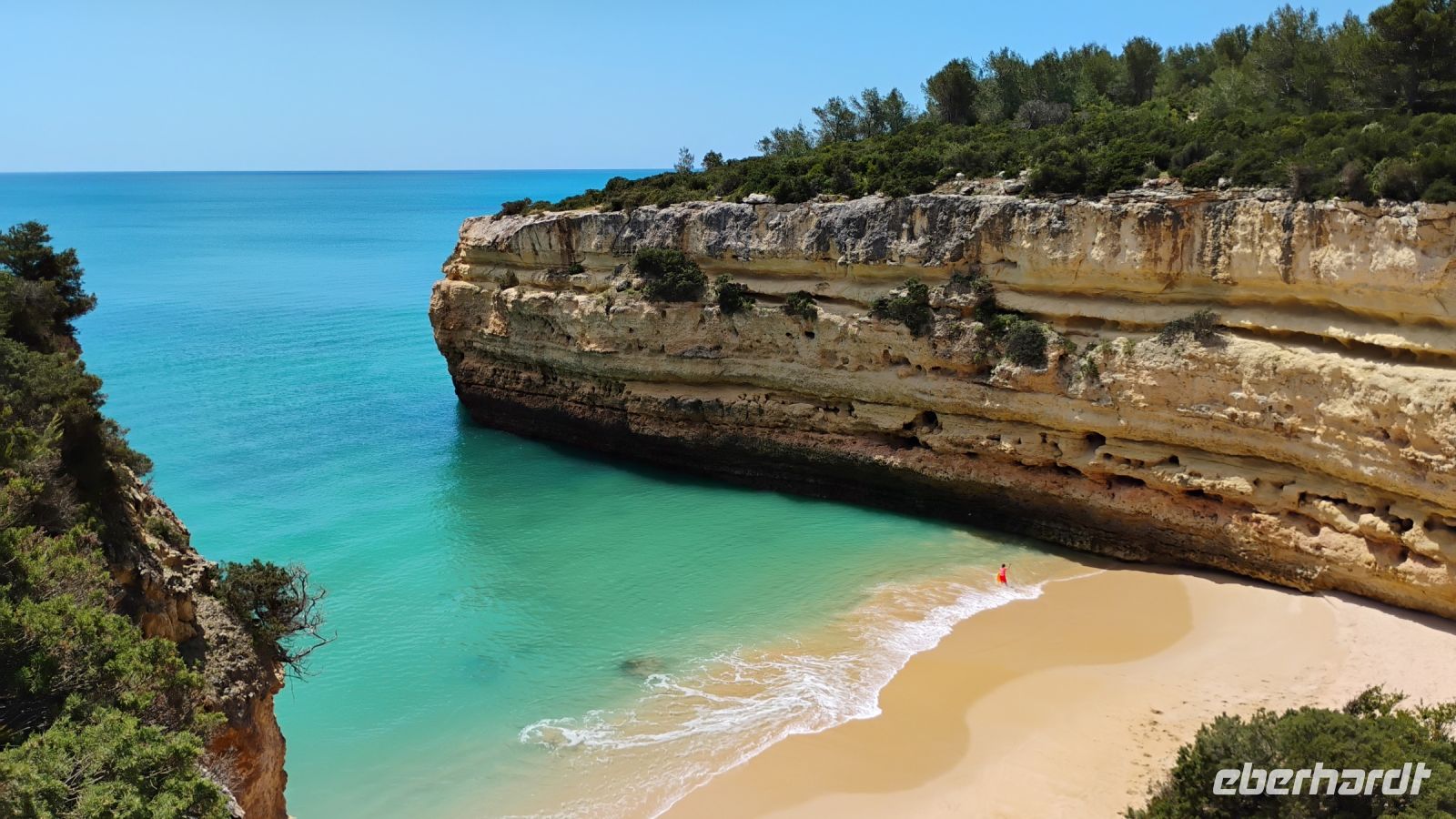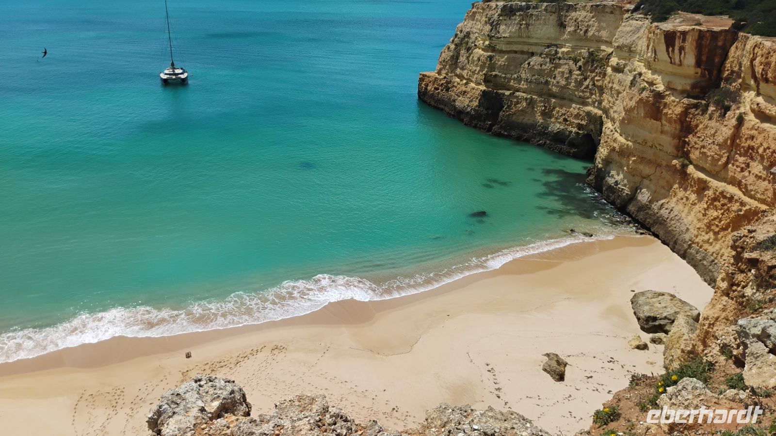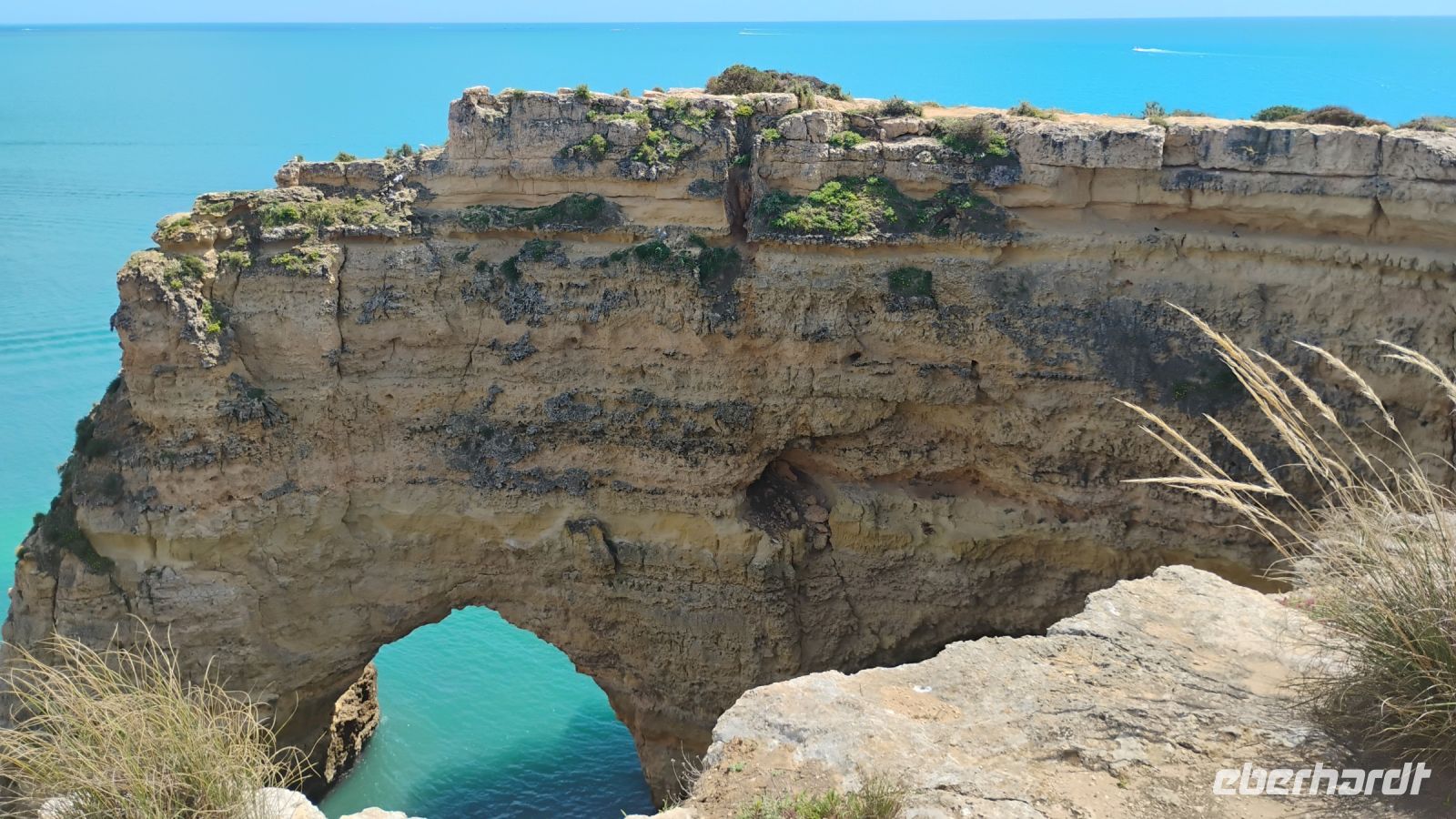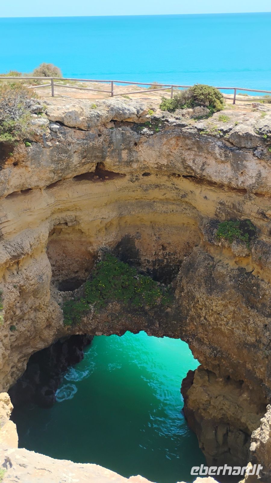 Ein paar wenige wagten sich westwärts auf den deutlich anspruchsvolleren Wanderweg zum Algar do Pontal. Der Algar do Pontal liegt inmitten einer der spektakulärsten Wanderregionen der Algarve. Entlang des Küstenpfads eröffnen sich immer wieder beeindruckende Ausblicke auf bizarre Felsformationen. Der Weg führt über schroffe Klippen, durch mediterrane Vegetation und belohnt mit grandiosen Blicken aufs Meer.