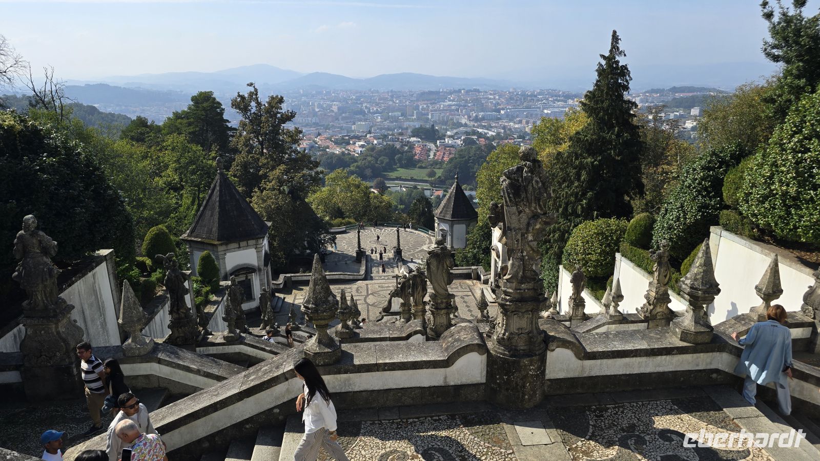 Durch das Stadttor betreten wir die wunderschöne Altstadt und spazieren durch mittelalterliche Gassen zur Kathedrale und zum Erzbischofspalast. So vieles gab es zu entdecken, besonders beeindruckend der Garten der hl. Barbara am Erzbischofspalast. Mit vielen Fotos im Gepäck trennen wir uns vorerst, jeder hatte nun Zeit für weitere Erkundungen, einfach einen Bummel oder ein kleines Mittagsmenü. Dann fuhren wir weiter, Hatten wir Braga bereits als religiöses Zentrum kennengelernt so fuhren wir nun zu seinem absoluten Höhepunkt: