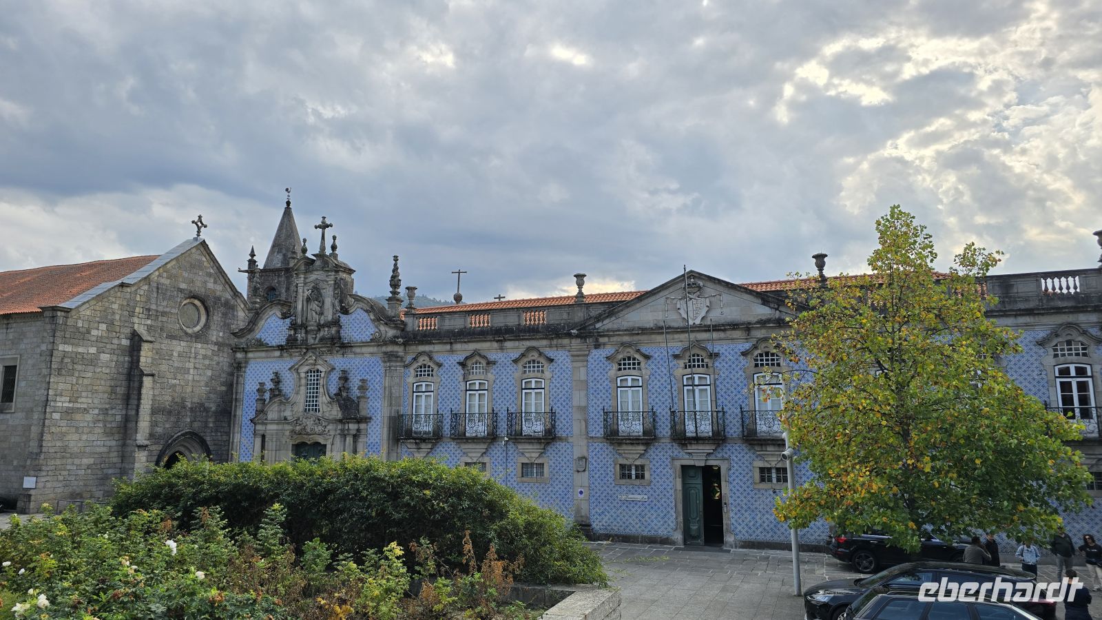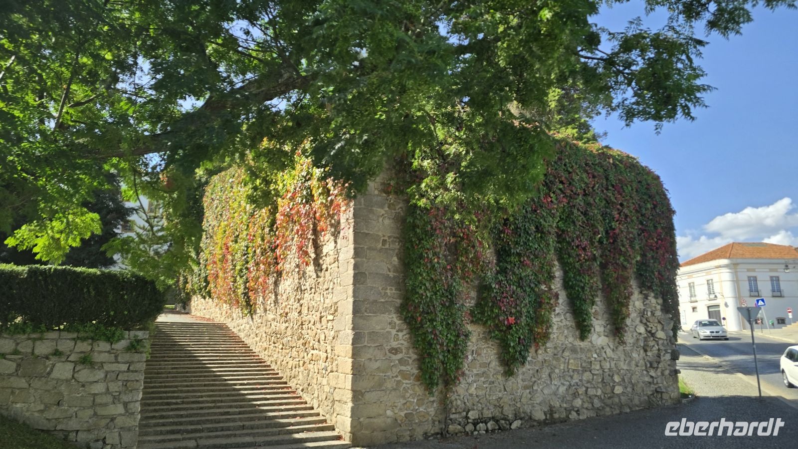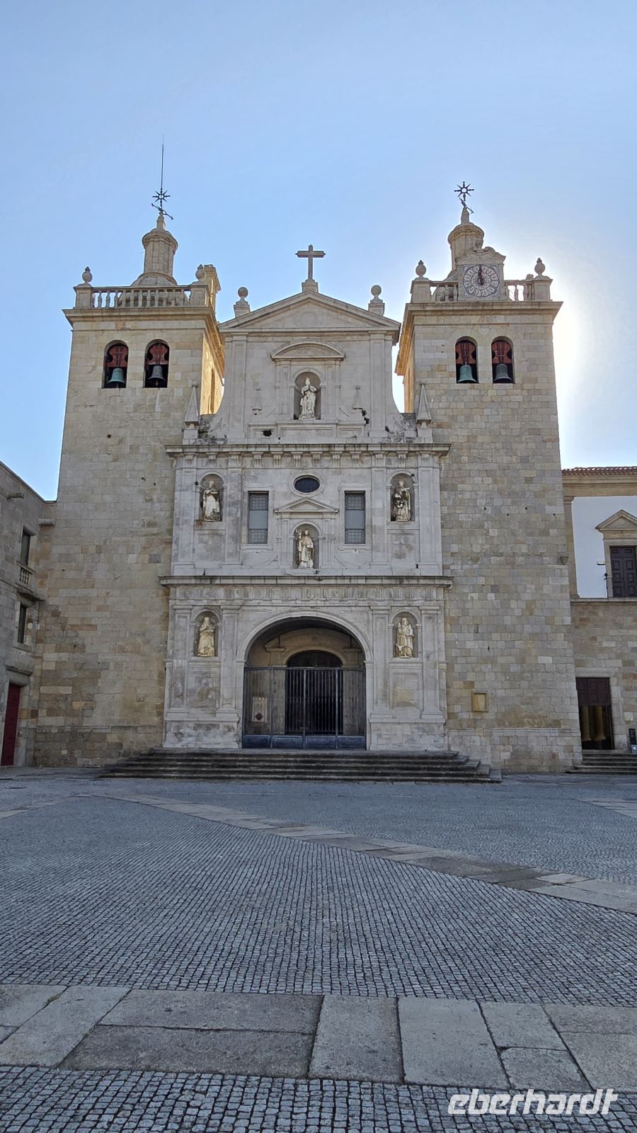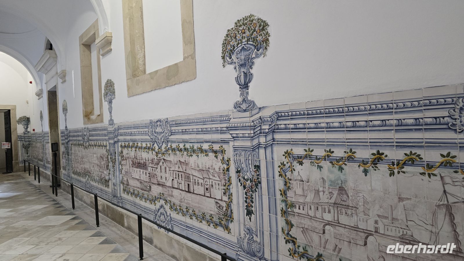 ist unser erstes Ziel. Wir spazieren in die Altstadt, durch ein Stadttor, vorbei an der Marienkapelle zur Kathedrale. Stolz erhebt sich dieses mittelalterliche Bauwerk, unschwer zu erkennen die vielen An- und Umbauten. Trotzdem hat sie ihren romanischen Charakter bewahrt. Gleich gegenüber der Kathedrale steht die Kirche der Barmherzigkeit (Igreja da Misericordia), hier in Portugal eine gemeinnützige Einrichtung, die sich um Kranke, Alte und sozial Benachteiligte kümmert. Ihr Zeichen ist ein blaues Kreuz auf weißem Grund. Dann spazieren wir durch die Gassen zurück, Luis erzählt von den Vierteln, den Geschichten, die viele Häuser erzählen können-dann geht es weiter nach