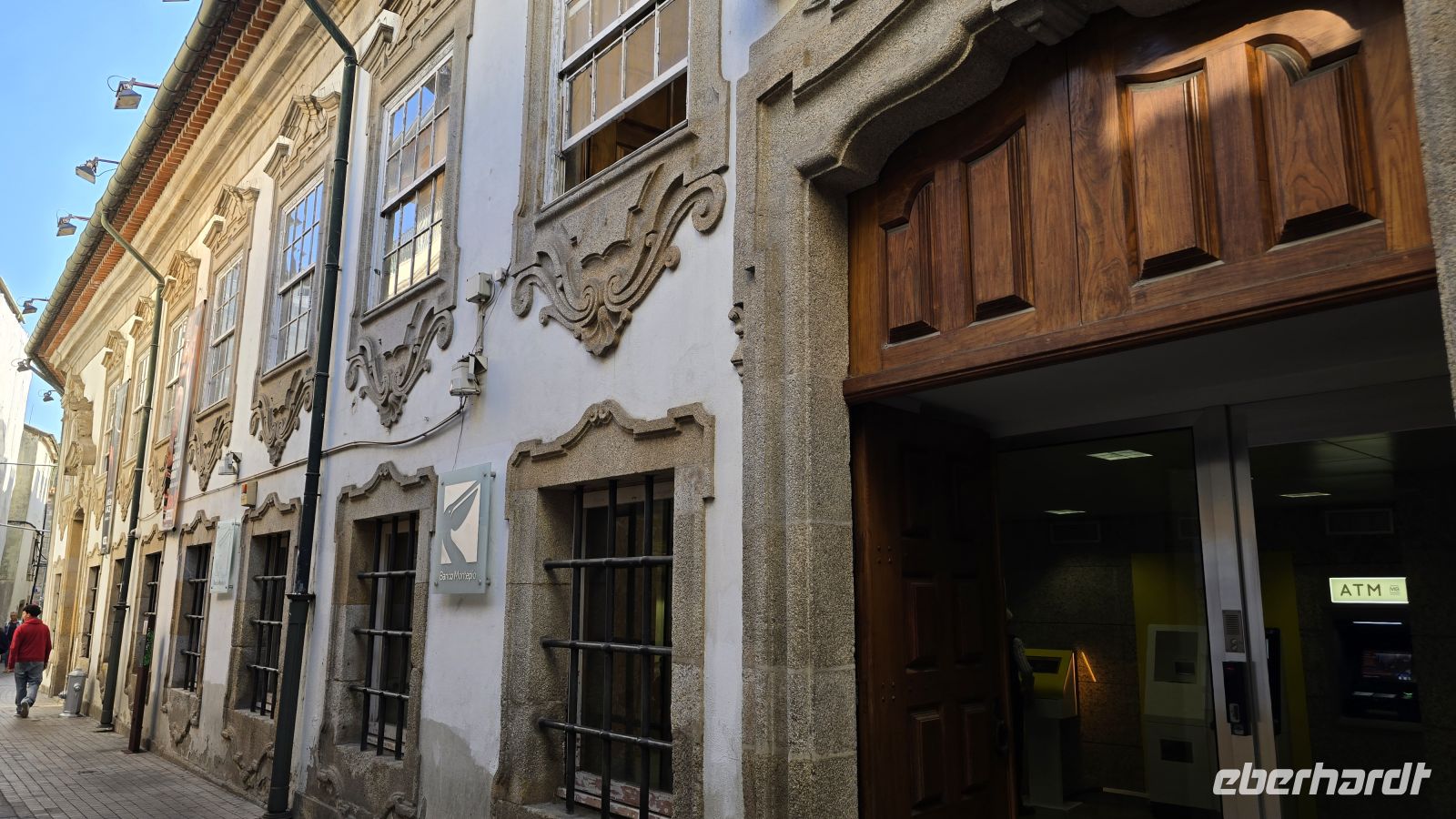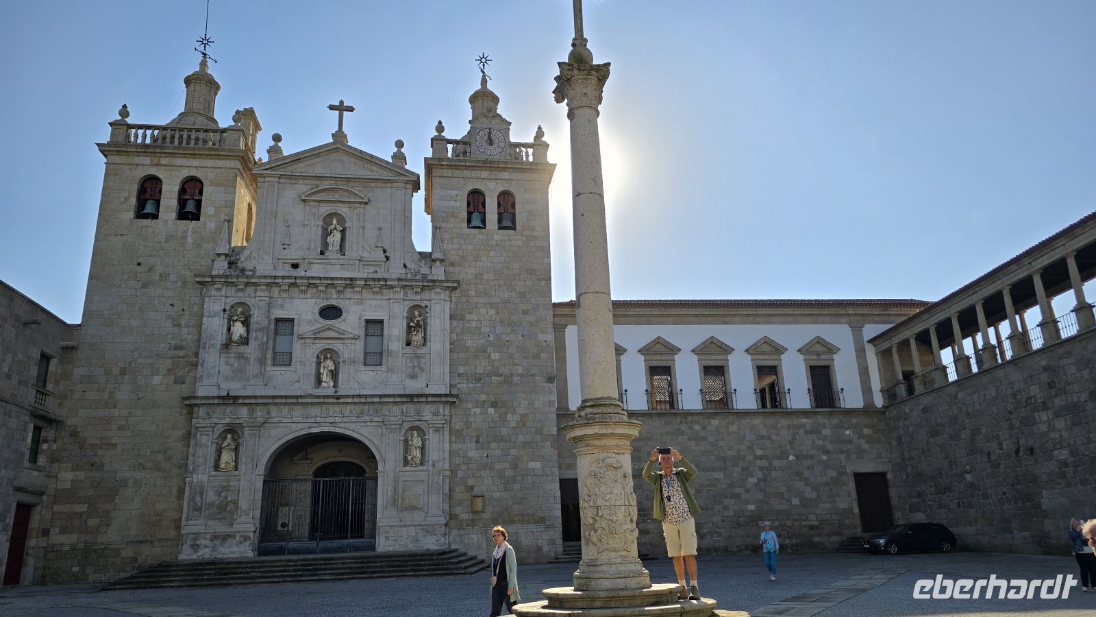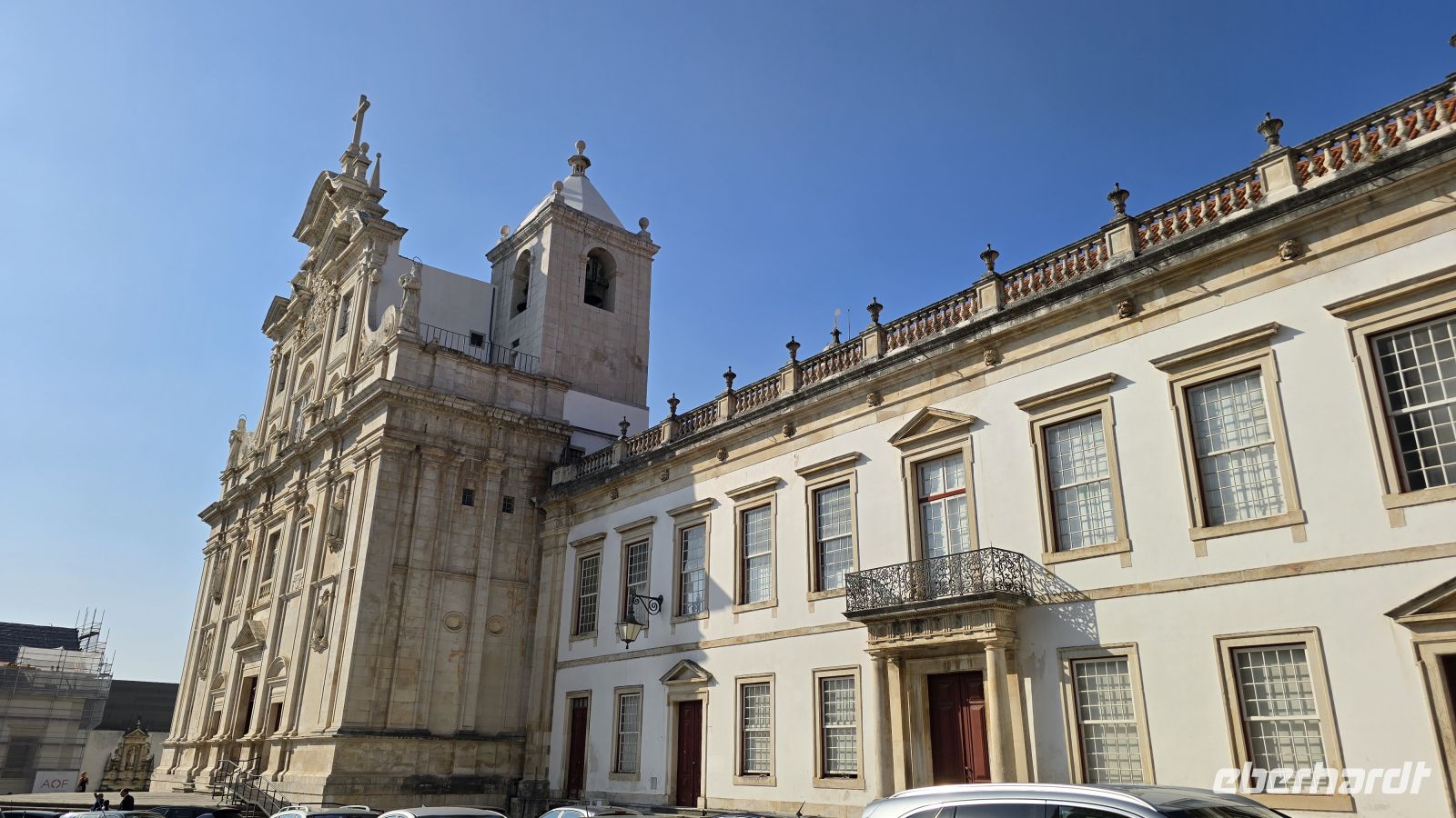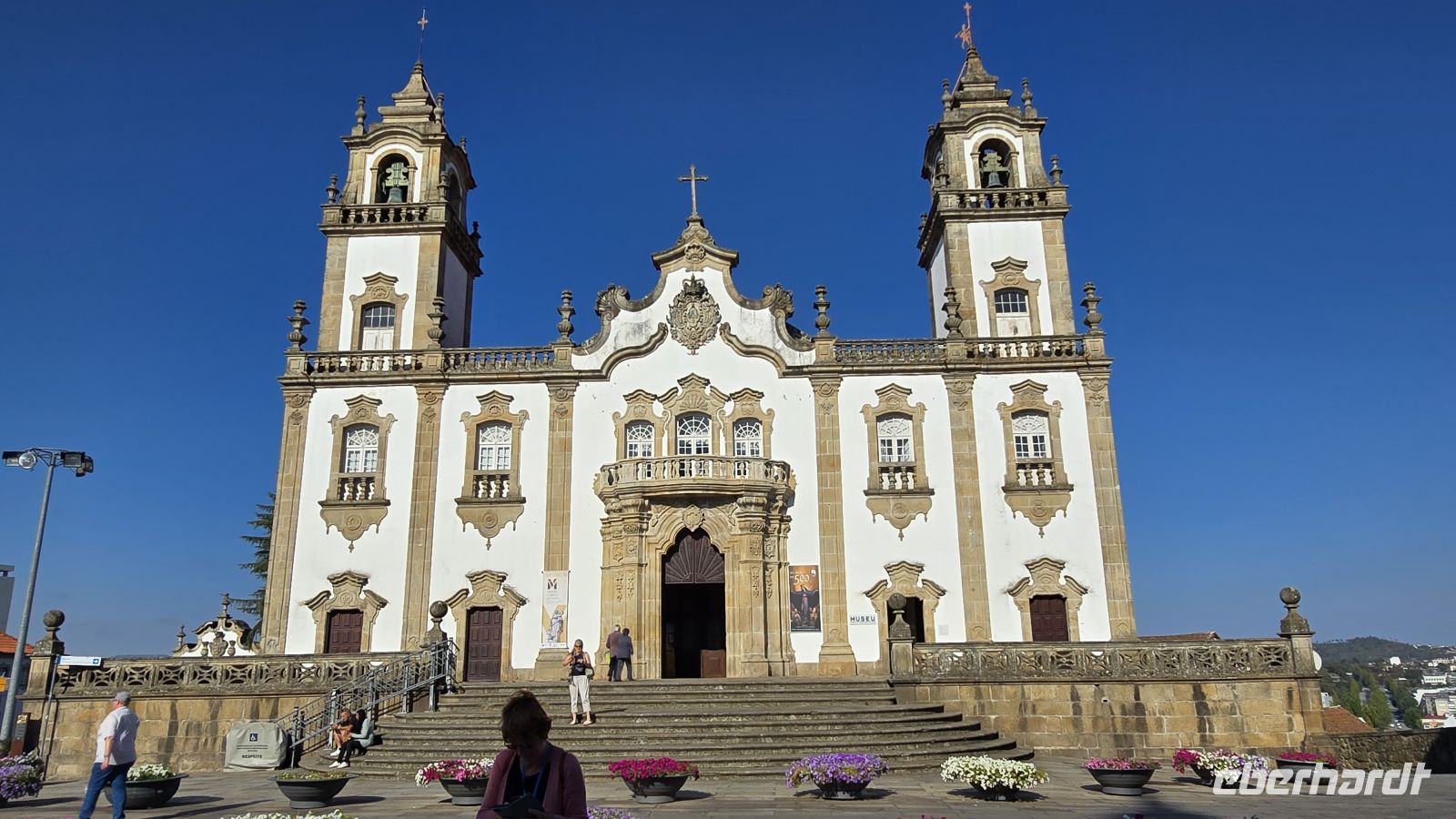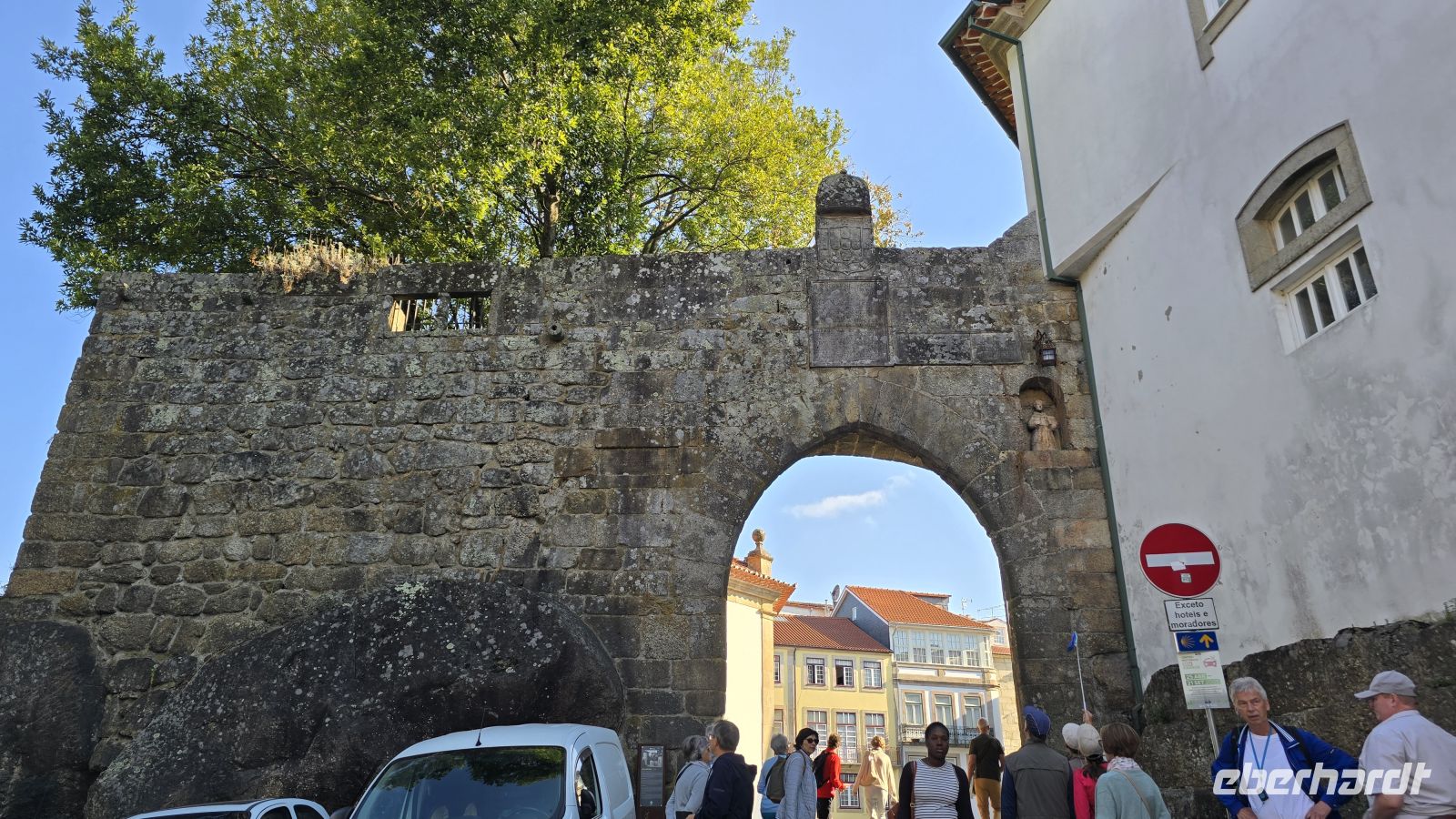 ist unser erstes Ziel. Wir spazieren in die Altstadt, durch ein Stadttor, vorbei an der Marienkapelle zur Kathedrale. Stolz erhebt sich dieses mittelalterliche Bauwerk, unschwer zu erkennen die vielen An- und Umbauten. Trotzdem hat sie ihren romanischen Charakter bewahrt. Gleich gegenüber der Kathedrale steht die Kirche der Barmherzigkeit (Igreja da Misericordia), hier in Portugal eine gemeinnützige Einrichtung, die sich um Kranke, Alte und sozial Benachteiligte kümmert. Ihr Zeichen ist ein blaues Kreuz auf weißem Grund. Dann spazieren wir durch die Gassen zurück, Luis erzählt von den Vierteln, den Geschichten, die viele Häuser erzählen können-dann geht es weiter nach