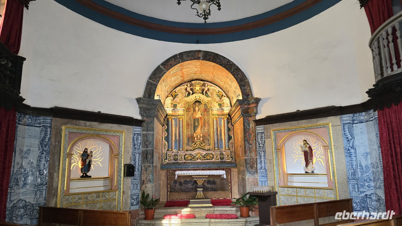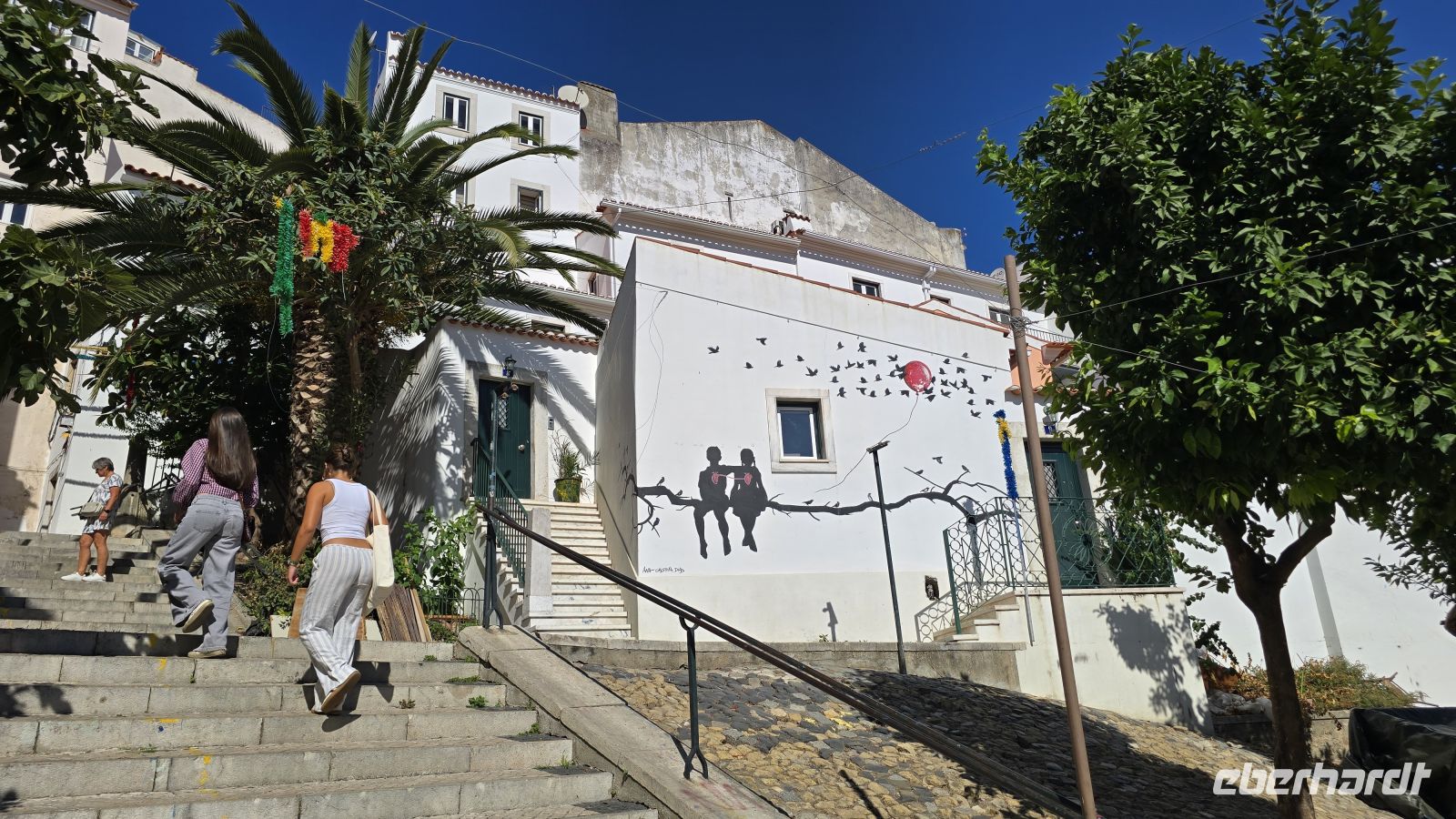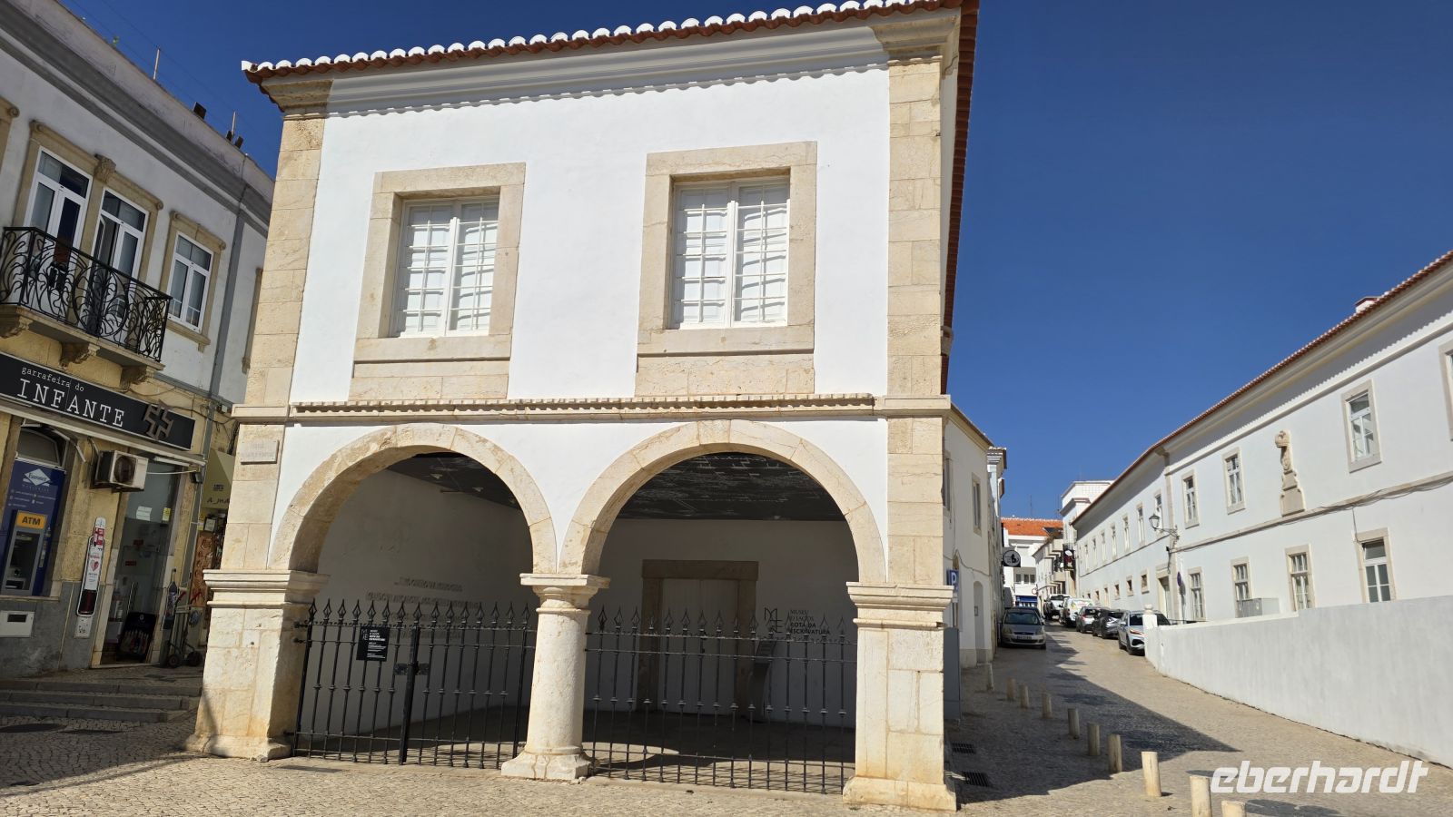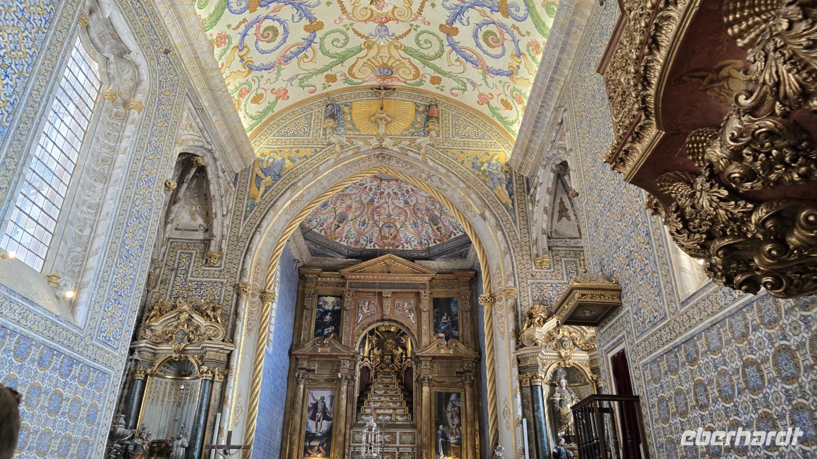 ist unser erstes Ziel. Wir spazieren in die Altstadt, durch ein Stadttor, vorbei an der Marienkapelle zur Kathedrale. Stolz erhebt sich dieses mittelalterliche Bauwerk, unschwer zu erkennen die vielen An- und Umbauten. Trotzdem hat sie ihren romanischen Charakter bewahrt. Gleich gegenüber der Kathedrale steht die Kirche der Barmherzigkeit (Igreja da Misericordia), hier in Portugal eine gemeinnützige Einrichtung, die sich um Kranke, Alte und sozial Benachteiligte kümmert. Ihr Zeichen ist ein blaues Kreuz auf weißem Grund. Dann spazieren wir durch die Gassen zurück, Luis erzählt von den Vierteln, den Geschichten, die viele Häuser erzählen können-dann geht es weiter nach