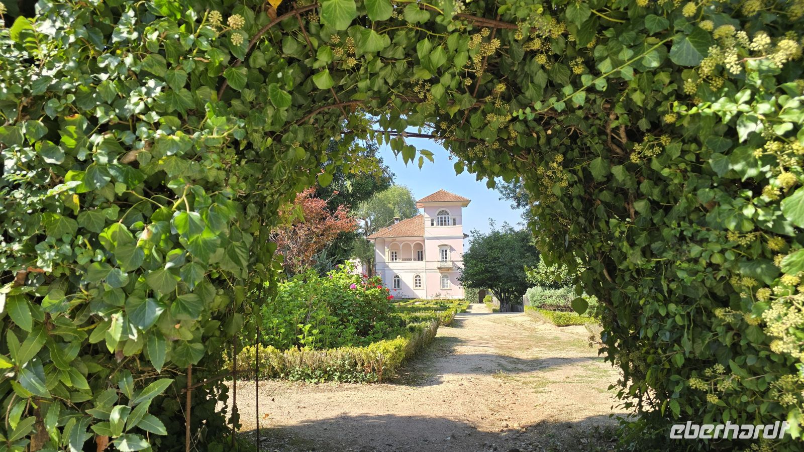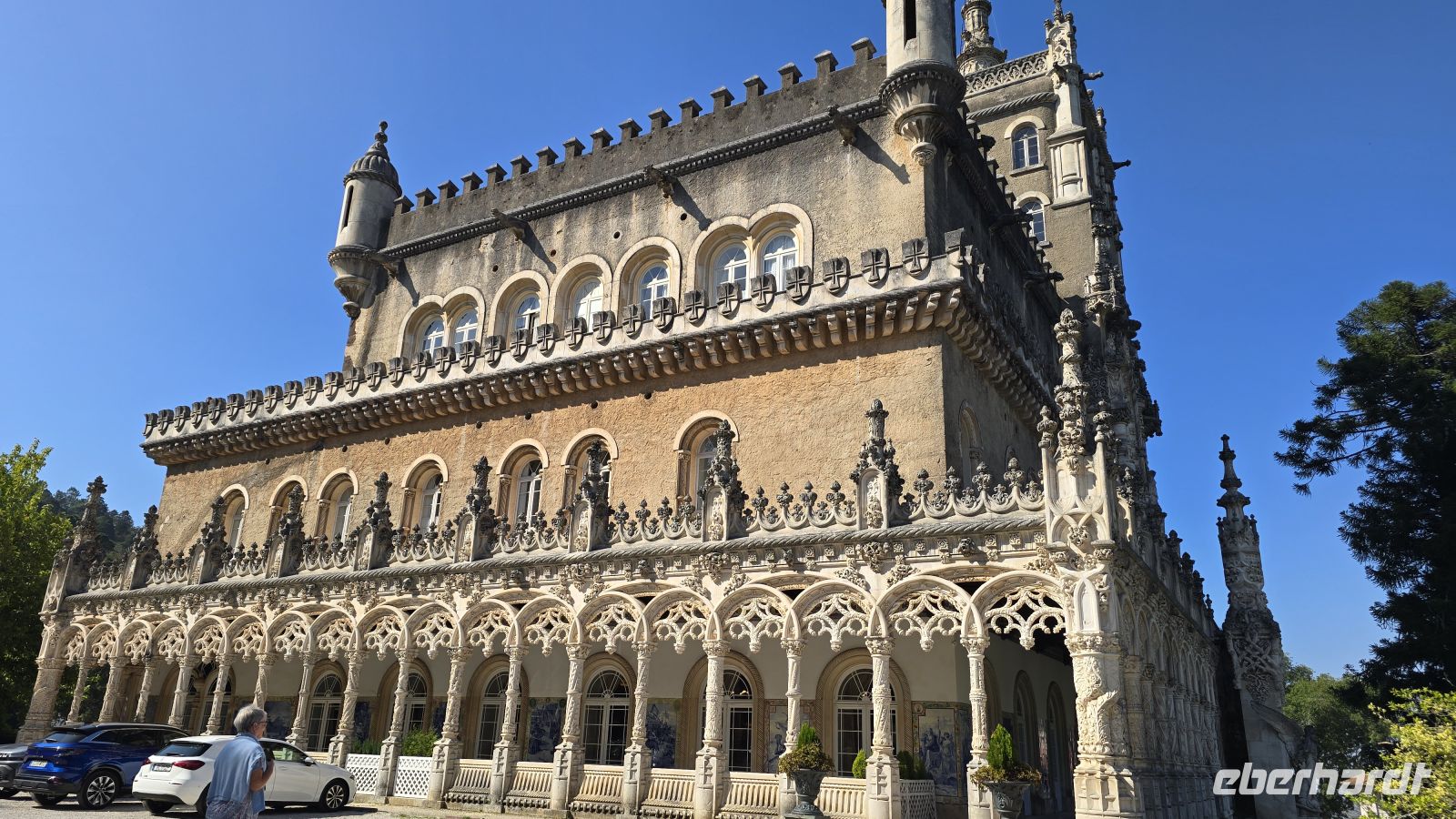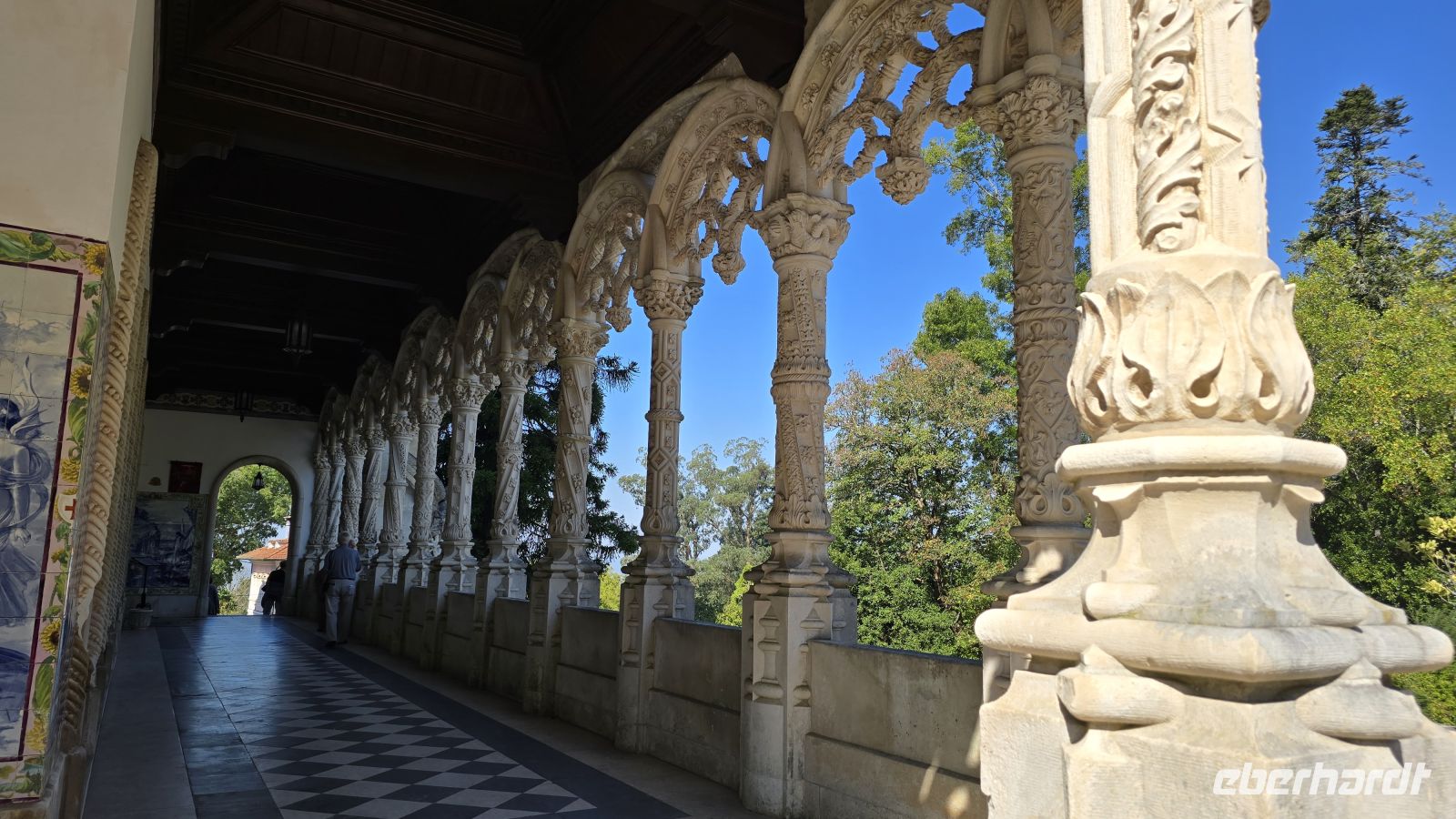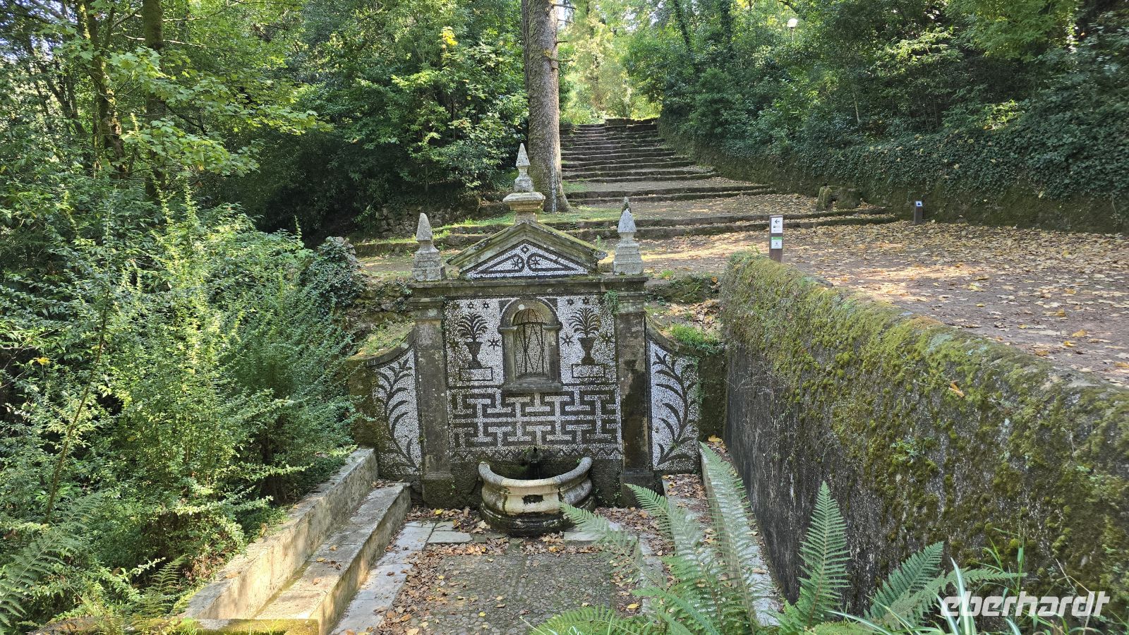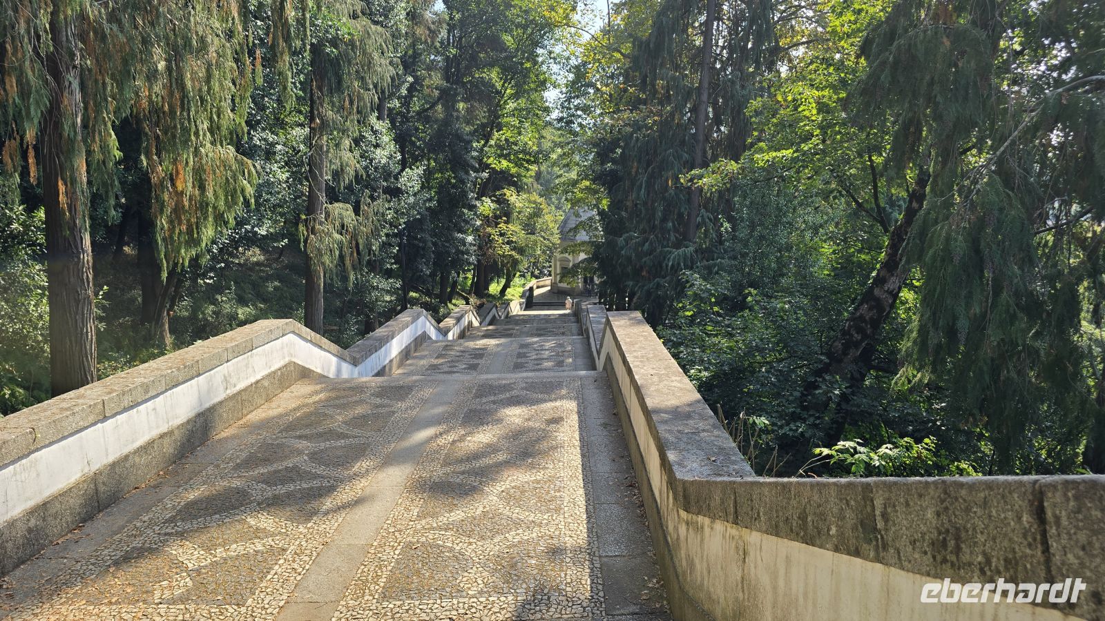 Heute einer der schönsten Parks Portugals- gegründet als "Wüste" der Karmeliter, die hier ihr Kloster bauten und den Garten mit Brunnen und Gebetsnischen anlegten. (Für Karmeliter war der irdische Weg die Wüste- ihre Oase würde erst im Himmel kommen) Mit der Auflösung der religiösen Orden ab 1834 ziehen die Karmeliter aus, es entsteht zunächst ein Jagdschloß der königlichen Familie, später das heute noch existierende Hotel. Wir haben Zeit und schauen uns um, ein kleiner Park direkt an den Gebäuden lockt zum Spazierengehen, verschlungene Wege führen zu Brunnen und Quellen, der Wald ringsherum berherbergt eine unglaubliche Vielfalt an Bäumen und zeigt sich als Märchenwald.