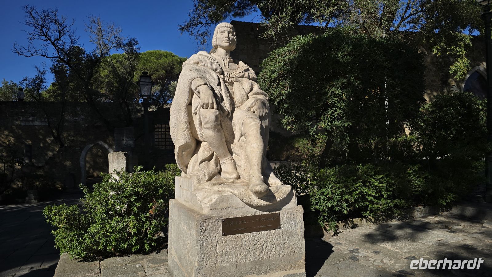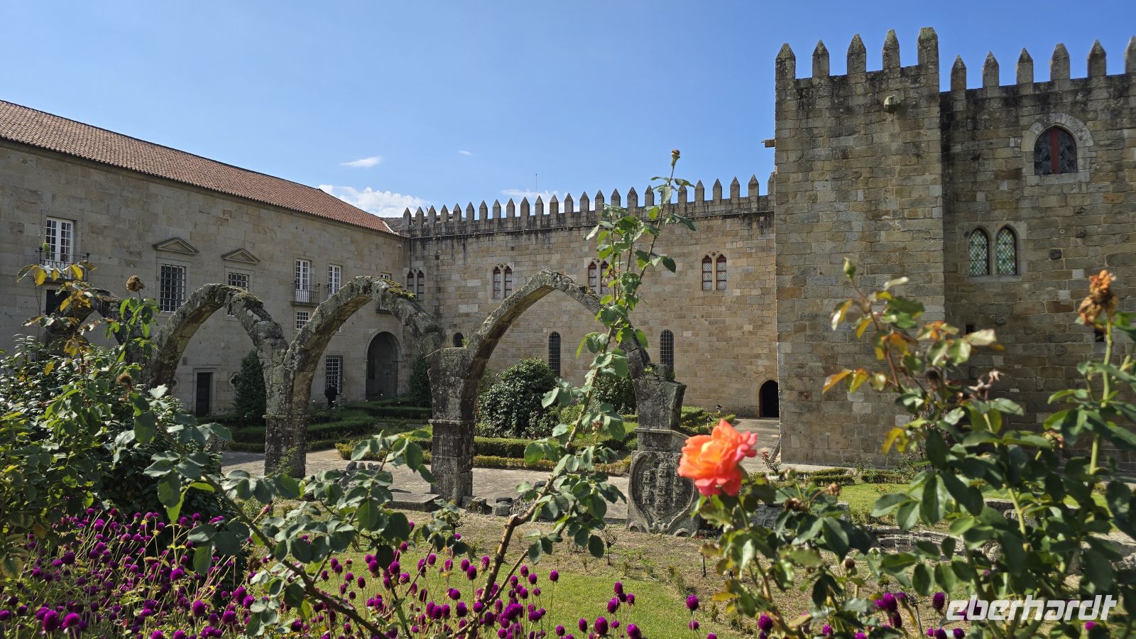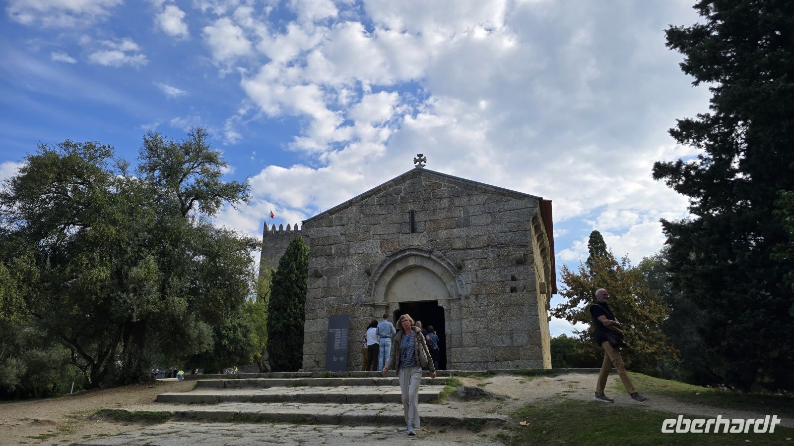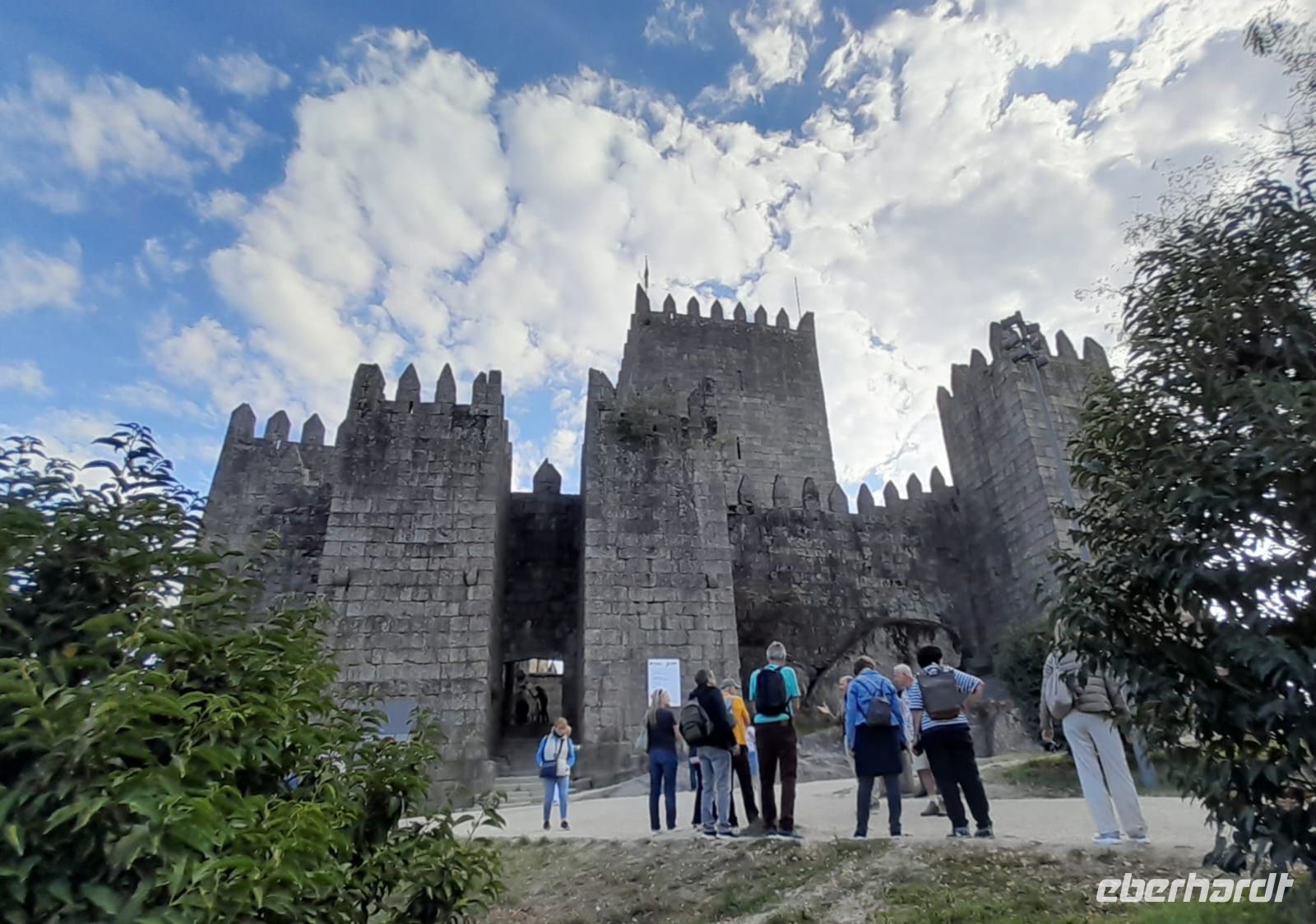 Wir besuchen die alte romanische Burg. Sie sollte das Kloster beschützen, das die Gräfin Mumadona im 10. Jahrhundert hier errichten ließ. Hier wurde Alfonso Henriques geboren, der erste König Portugals. Deshalb gilt der Ort auch als Wiege Portugals und war seine erste Hauptstadt. Wir werfen noch einen Blick in die nahegelegene Kapelle, in der Alfonso I. getauft wurde und spazieren dann hinunter in den Ort, teilweise auch auf dem Pilgerweg, die Jakobsmuschel weist im Boden darauf hin. Wir genießen den Spaziergang durch die Altstadt, übrigens auch Teil des Weltkulturerbes der UNESCO, die berühmte Rua de Santa Maria entlang bis zum Olivenbaumplatz, zur Kirche mit dem Alpendre vor dem Westportal in ihrem manuelinischen Stil (ein besonderer Baustil benannt nach König Manuel I., erkennbar an den Schiffstauen und den runden statt spitzen Bögen der Gotik), genießen die Läden und Gassen ringsumher... verlassen die Altstadt und bestaunen die wundervoll angelegte Avenue davor. Unser Bus bringt uns dann sicher nach
