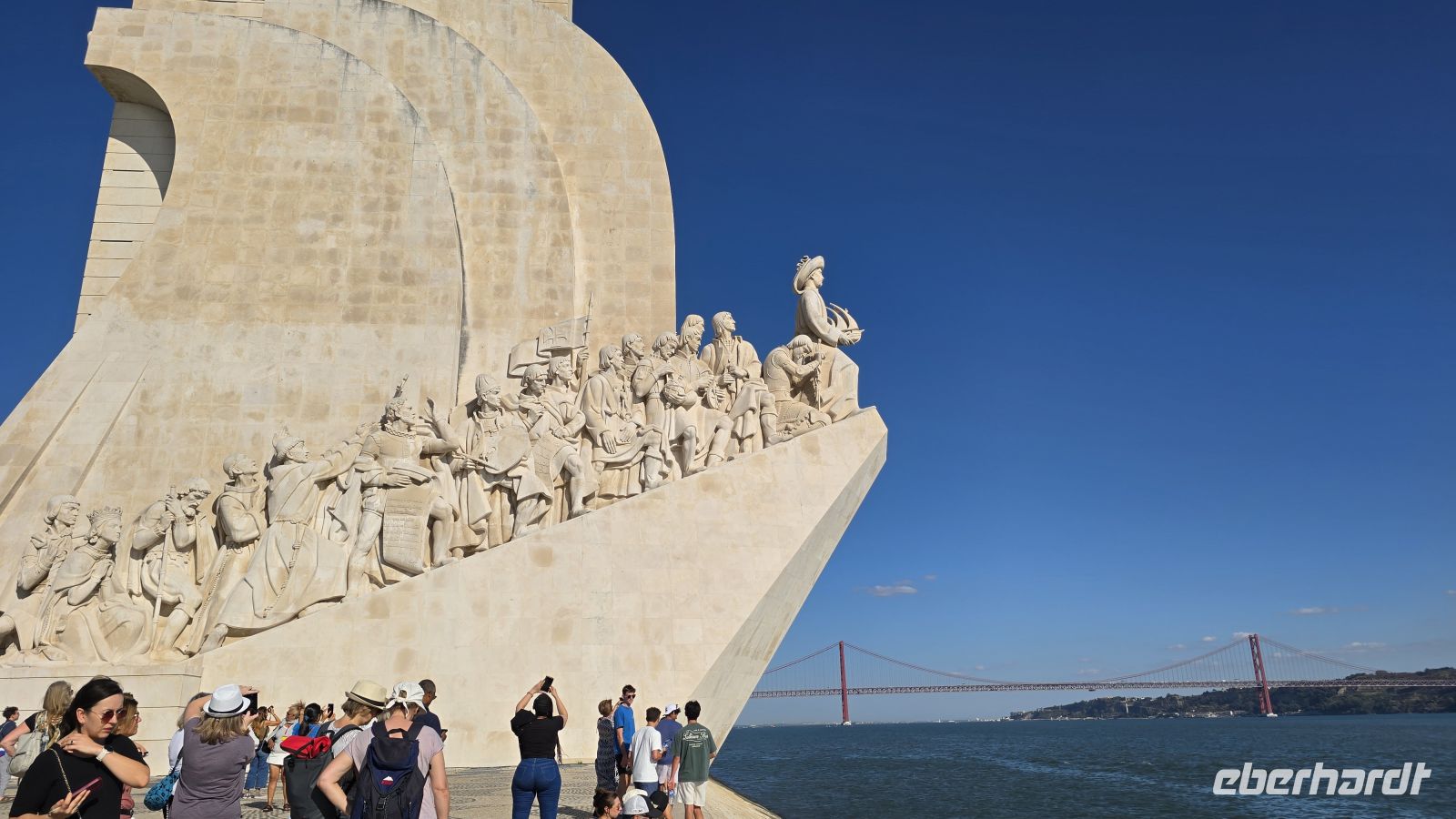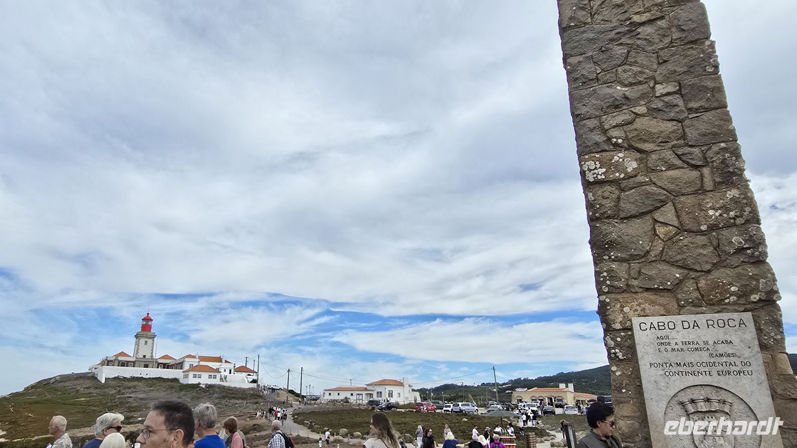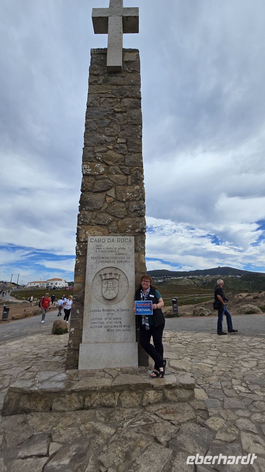 zum westlichsten Punkt des europäischen Festlandes. Schon von weitem war der Leuchtturm zu sehen und eine Stele mit einem Kreuz stand an den Klippen, "wo die Erde endet und das Meer beginnt" (Luís de Camões, 1524–1580). Wir genossen den traumhaften Anblick und das Tosen der Wellen unter uns. Stundenlang könnte man dem zusehen, doch unsere Fahrt geht weiter: Am Nordufer der Mündung des Tejo in den Atlantik liegt