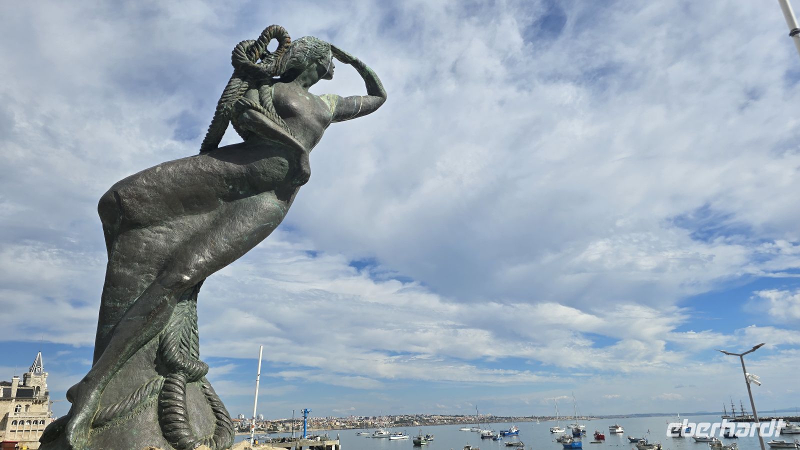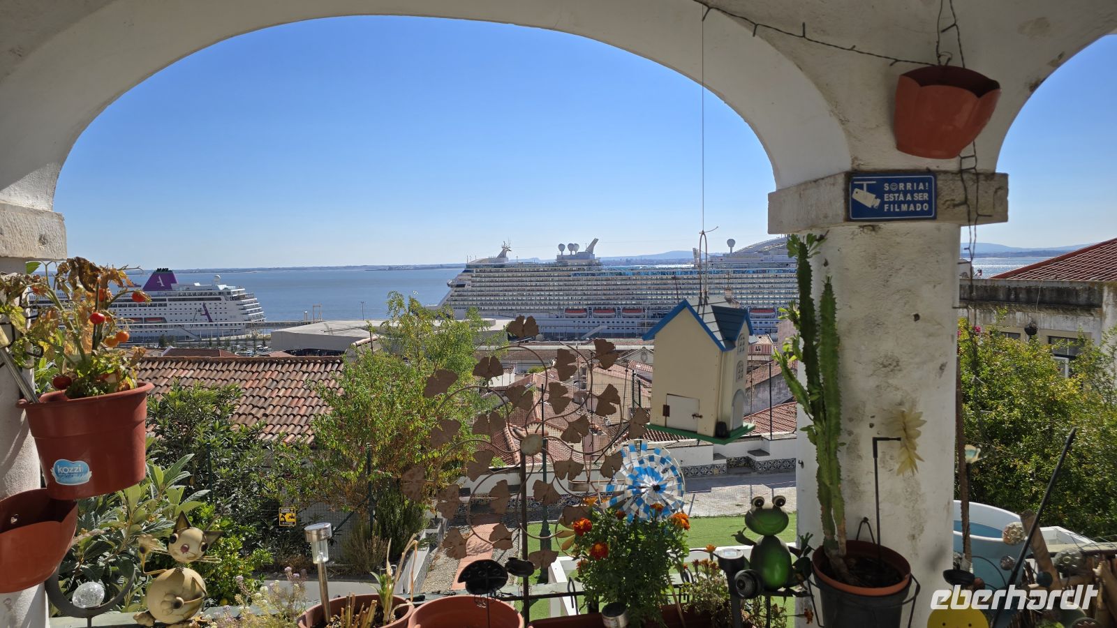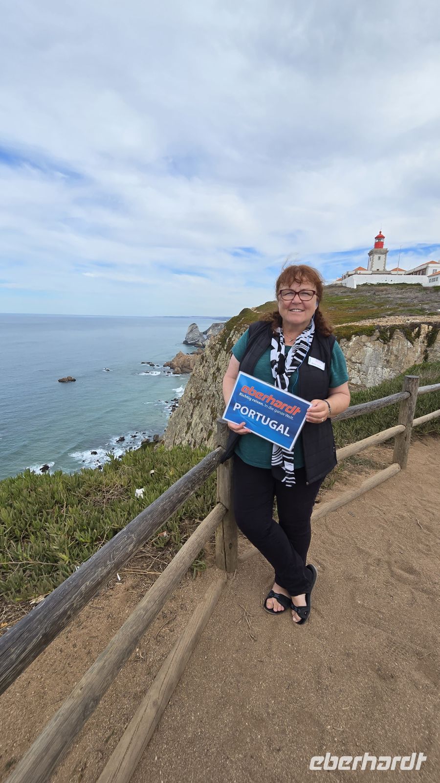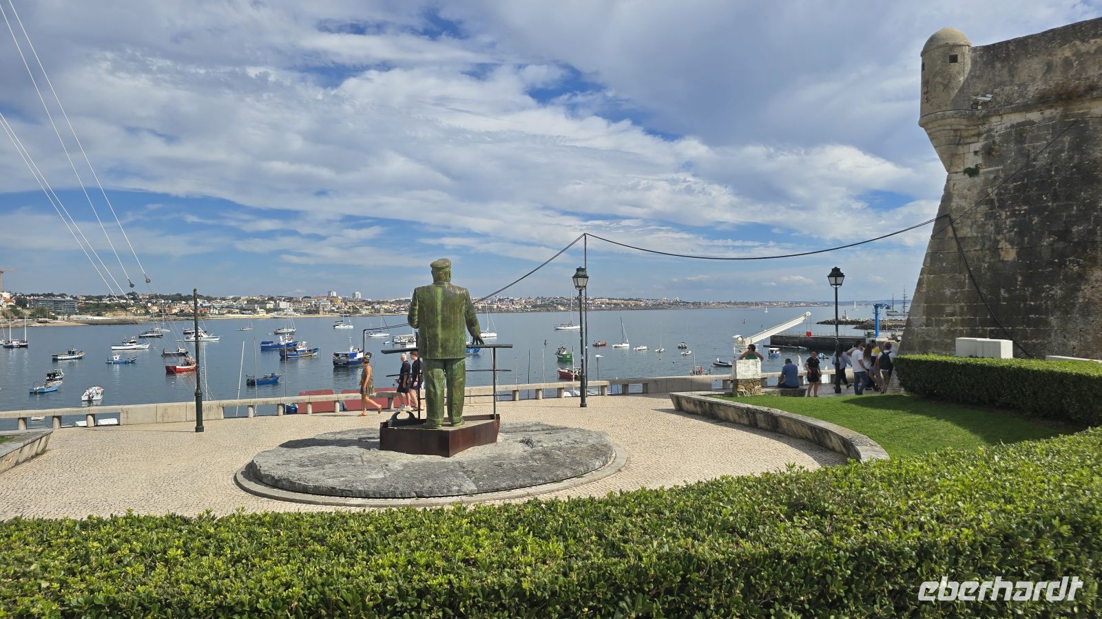 zum westlichsten Punkt des europäischen Festlandes. Schon von weitem war der Leuchtturm zu sehen und eine Stele mit einem Kreuz stand an den Klippen, "wo die Erde endet und das Meer beginnt" (Luís de Camões, 1524–1580). Wir genossen den traumhaften Anblick und das Tosen der Wellen unter uns. Stundenlang könnte man dem zusehen, doch unsere Fahrt geht weiter: Am Nordufer der Mündung des Tejo in den Atlantik liegt