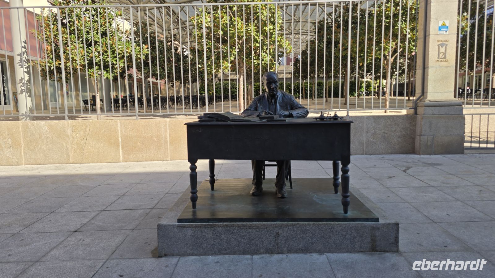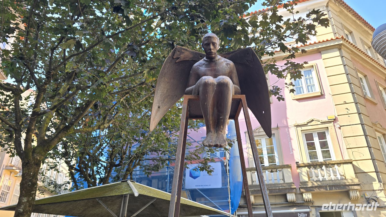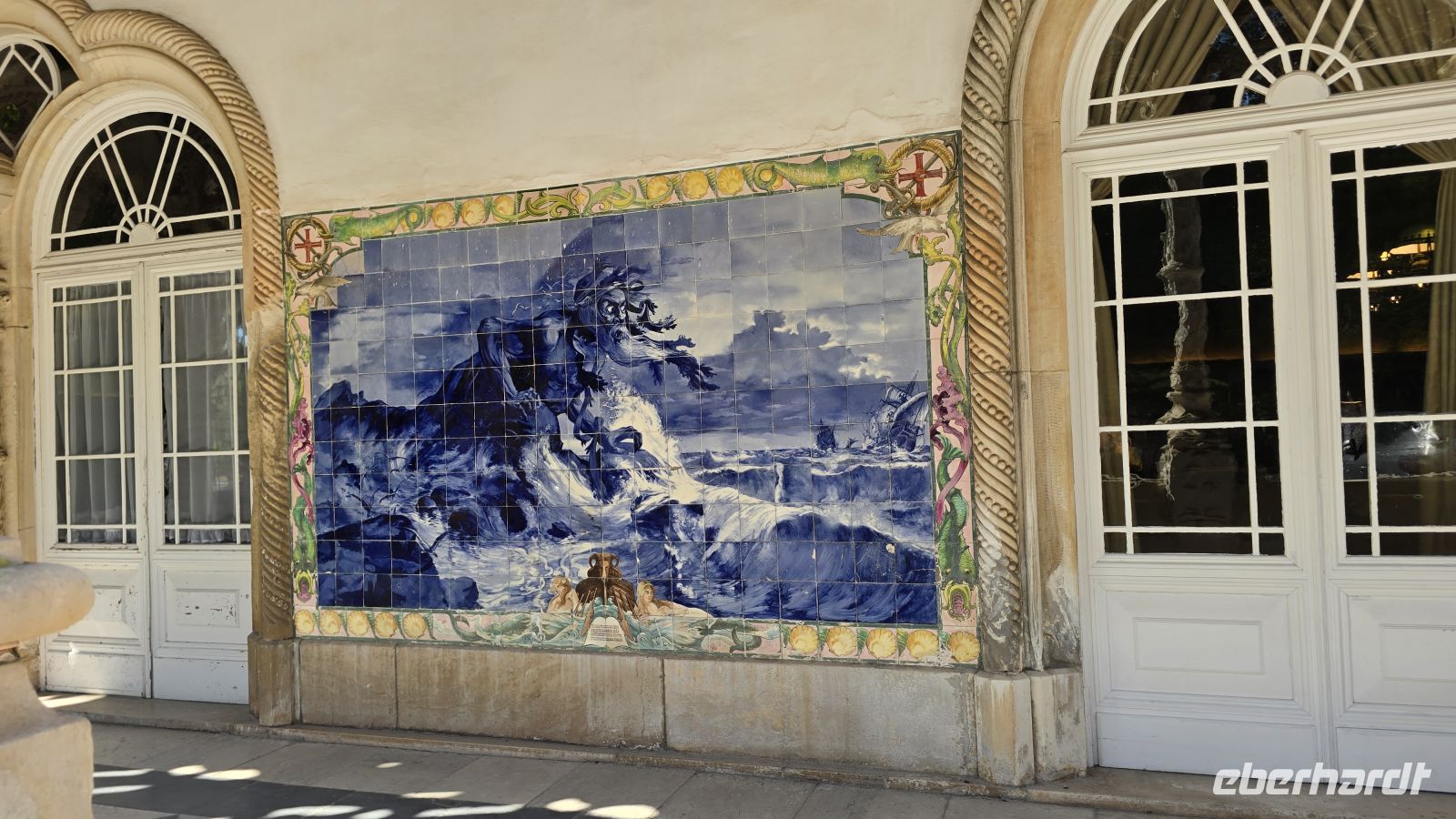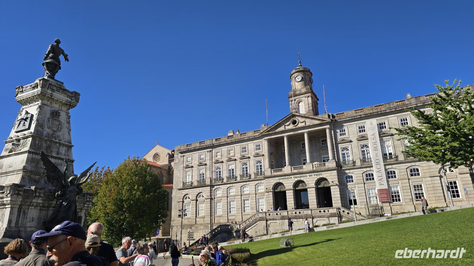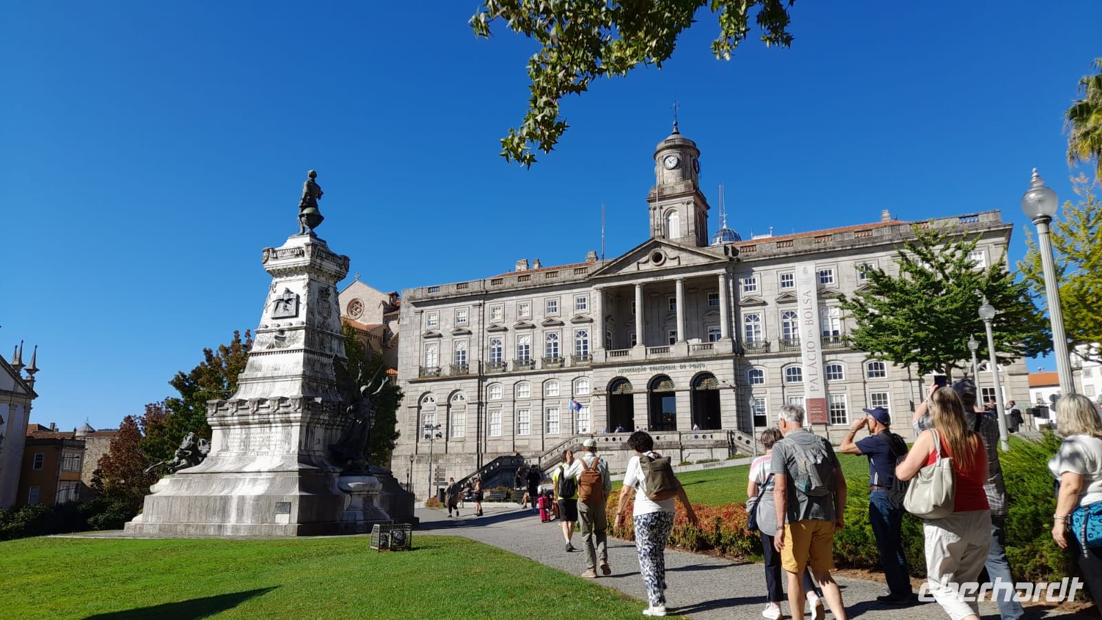 eine Gegend, in der oftmals das Geld für Sanierungen fehlt oder die Erben sich nicht einig sind oder, oder, oder. Trotzdem versprühen diese verwinkelten Gassen einen unglaublichen Charme. Am Mercado Ferreira Borges, einer historischen Markthalle, ist Gelegenheit für eine kleine Pause und schon erreichen wir einen großen Platz- das Denkmal Heinrich des Entdeckers in der Mitte. Flankiert wird der Platz von einem besonderen Gebäude: der Börse. Eigentlich heißt es