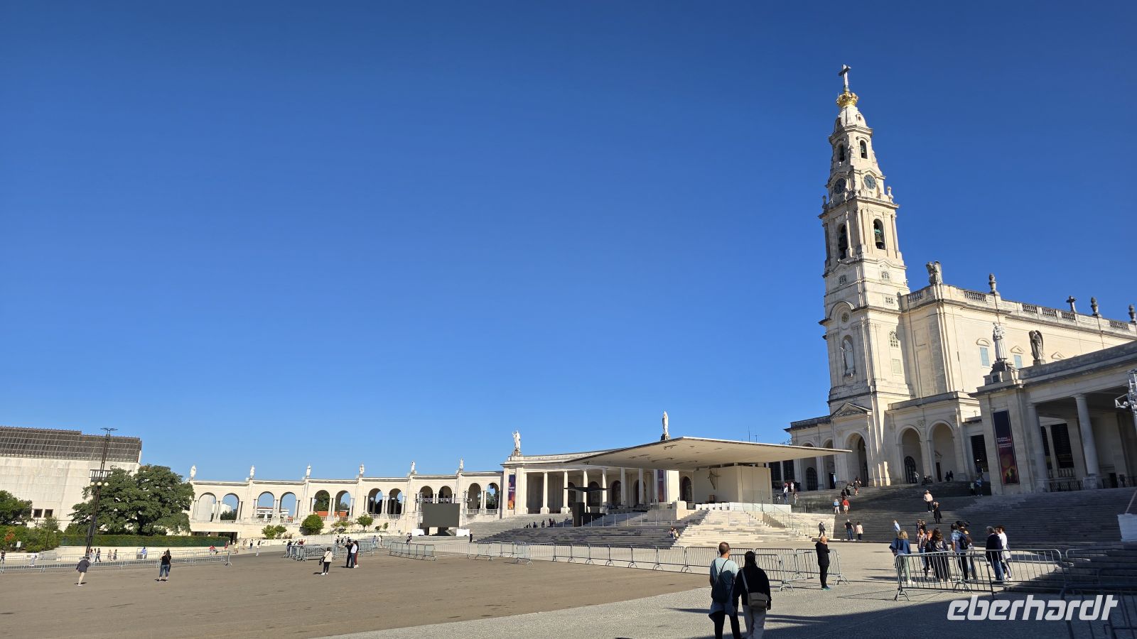 Nach einer knappen Stunde Fahrt erreichen wir Fatima, eine der wichtigsten Pilgerstätten Europas. Hier soll vor 108 Jahren die Jungfrau Maria 3 Hirtenkindern erschienen sein, sie kündigte für den 13. Oktober 1917 ein Wunder an und ein 13. Oktober ist in 3 Tagen. Wir sehen viele Pilger von überall her strömen und dann haben wir ihn auch schon erreicht: den größten Kirchenvorplatz der Welt. Manche rutschen den Weg zur Kapelle auf Knien, als Sühne oder Buße oder Dank für ein erbetenes Wunder. An der Erscheinungskapelle findet gerade ein Gottesdienst statt und wir haben Zeit, uns individuell umzuschauen. Viele werfen einen Blick in die Kirche mit den Gräbern der Seher-Kinder und natürlich auch in die neue Kirche gegenüber. Heute Abend wird wieder eine Kerzenprozession hier statfinden und bald das 108. Jubiläum der 6. Erscheinung gefeiert, Hundertausende werden erwartet. Wir sind tief beeindruckt von diesem Ort und seiner fast magischen Aura. Allerdings gibt es auch einen Schreckmoment- einem Gast ist nicht gut und wir suchen eine Rettungsstelle der Feuerwehr auf, die Gott sei dank gerade vor uns ist. Als es ihm besser geht fahren wir weiter, zum