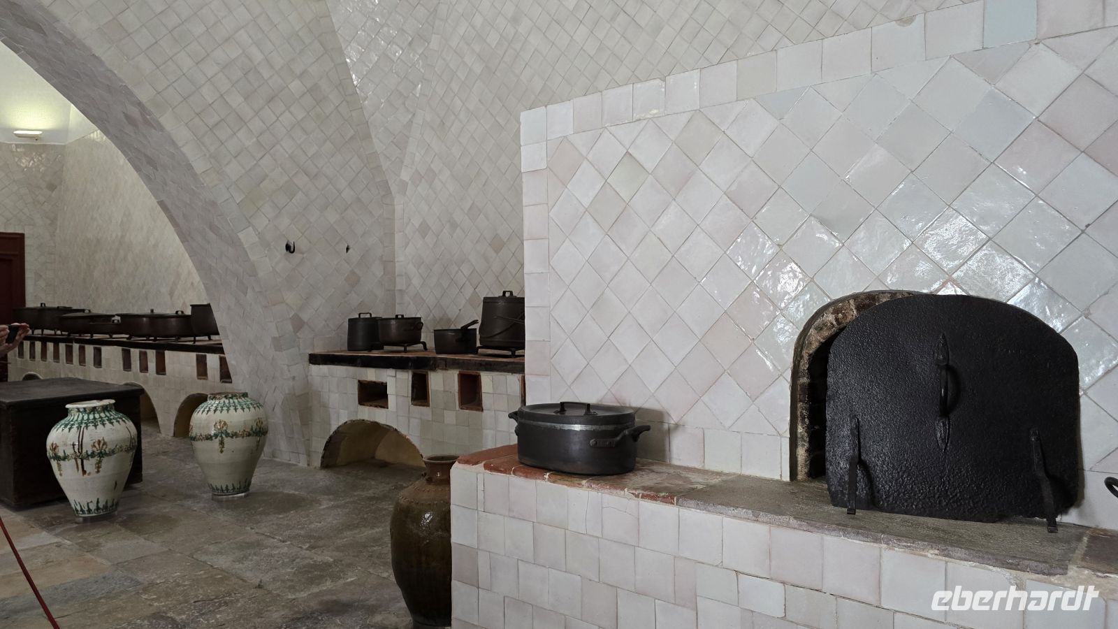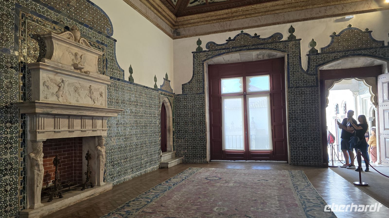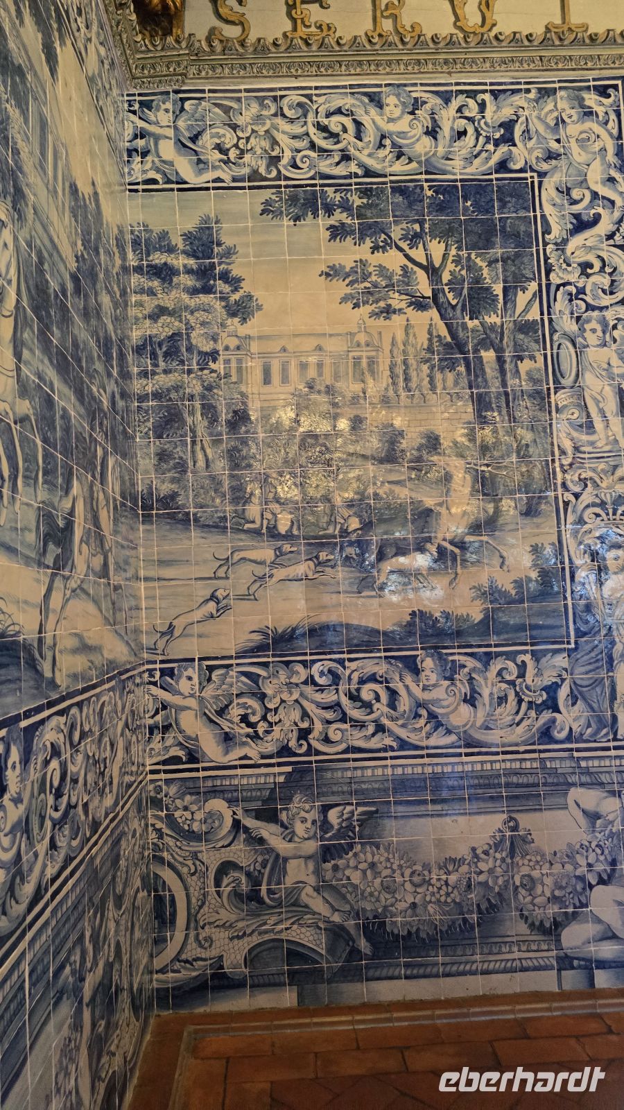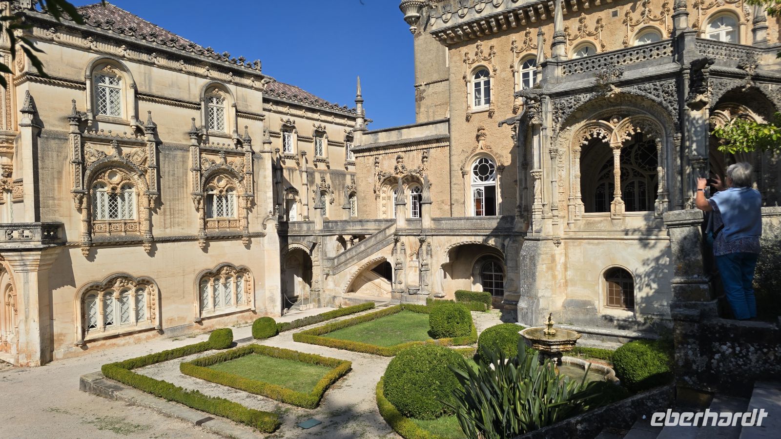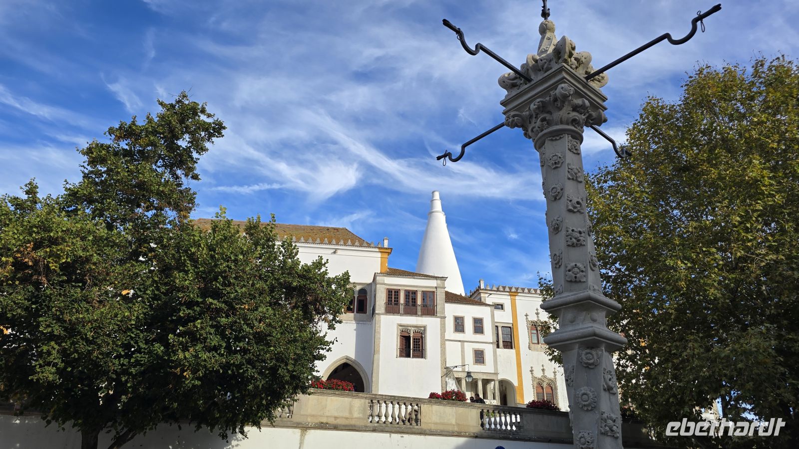 ist unser Ziel, die Sommerresidenz der Könige. Bis zum 11. Jahrhundert waren die Mauren hier- ihre Festung thront heute noch hoch über der Stadt. König Alfonso Henriques eroberte Sintra 1147, verlieh dem Ort Stadtrechte und mit den Klöstern des 12. und 13. Jahrhunderts wuchs auch die Stadt und wurde von den portugiesischen Königen wegen des kühleren Klimas hier geliebt und geschätzt. Der Adel zog mit und errichtete hier wundervolle Anwesen und Herrenhäuser, doch die konnten wir später bewundern. Zunächst wollten wir den Nationalpalast besichtigen. König João I. ließ ihn nach den Zerstörungen durch das Erdbeben 1755 wiederaufbauen und unter Manuel I. erhielt der Palast einen weiteren Flügel und sein heutiges Gesicht. Luis besorgte unsere Tickets und dann konnten wir unsere Entdeckungsreise starten. Und es gab tatsächlich so viel zu entdecken, Möbel aus der Handelszeit mit Indien, eine Pagode aus Elfenbein, manuelinische Gestaltungselemente, den Elster- und den Schwanensaal, und überall die wunderschönen Azulejos. Luis erzählte uns die Geschichten zu den Elstern, dem Prunksaal und erläuterte uns die verschiedenen Azulejos, aus maurischer Zeit und danach. Auch die Küche war von unten bis oben mit weißen Azulejos verkleidet, hier erheben sich die riesigen, 33 Meter hohen Schlote, so konnte an allen Feuerstellen gleichzeitig gekocht und gebrutzelt werden und es blieb doch relativ kühl. Beeindruckend auch die Innenhöfe, der Badegarten...Mit vielen Fotos und Eindrücken ging es weiter in das Stadtzentrum von Sintra. Hier konnten wir uns nach Herzenslust umsehen, dem bunten Treiben zusehen und einen Kaffee genießen. Am Bus trafen wir uns wieder und hier gab es wieder eine portugiesische Köstlichkeit für alle zum Probieren: Piriquitas. Soo lecker! Weiter geht die Fahrt durch den Nationalpark von Sintra. Schließlich kommen wir zum