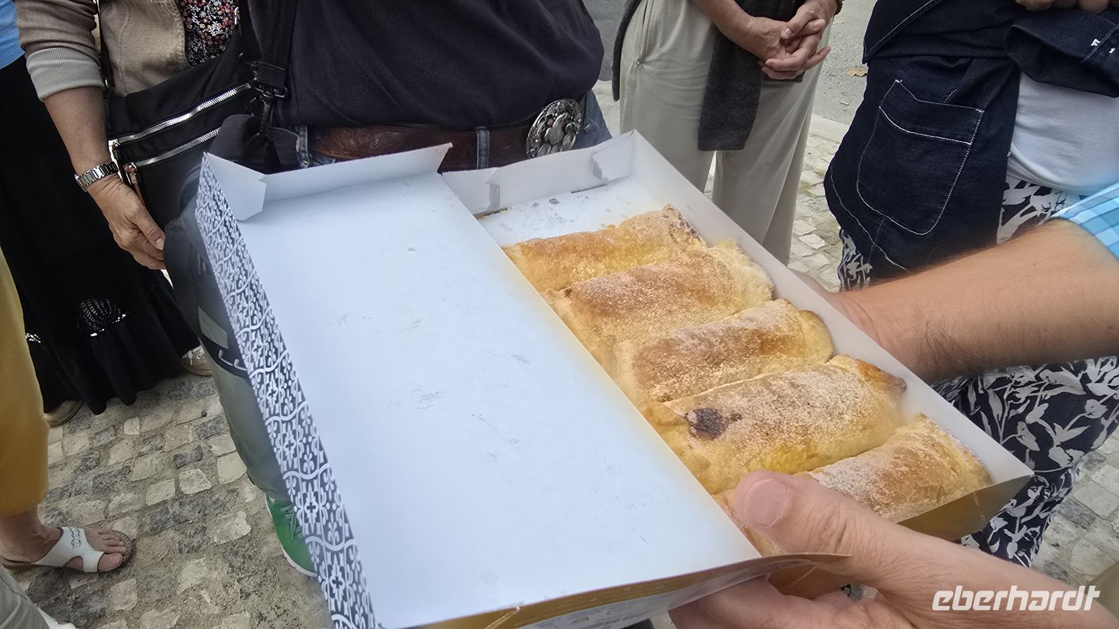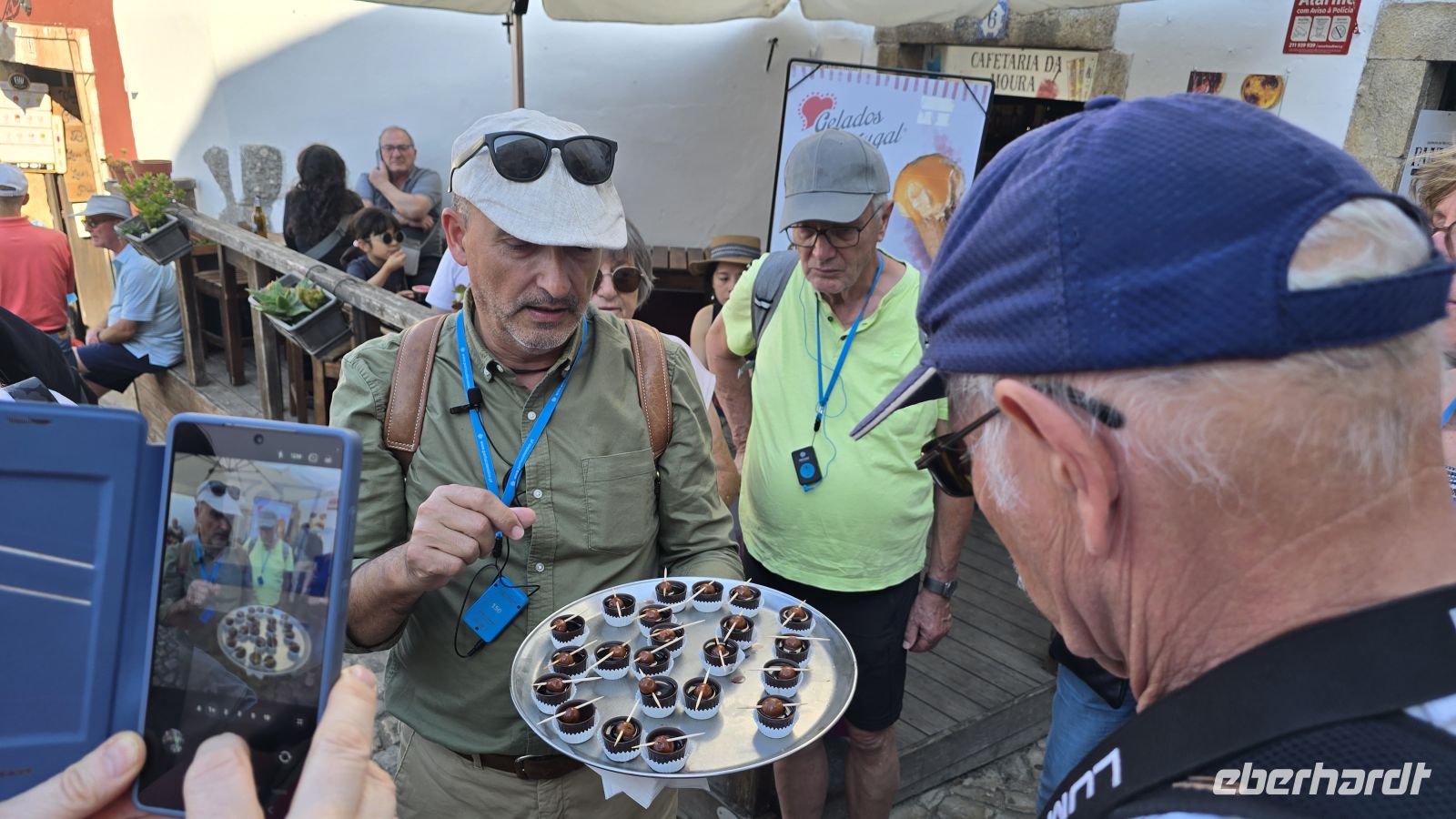 Hier erhebt sich das Marão-Gebirge und der Fluss Tâmega fließt durch das Herz der Stadt. Wir überqueren den Tâmega über eine Brücke, die die Einwohner der Stadt einst erfolgreich gegen Napoleon verteidigt hatten, und erreichten die Kirche des heiligen Gonçalo. Er ist Schutzpatron der Liebenden und hier in der Kirche ist auch sein Grab. Wir sind überrascht von der prunkvollen Ausstattung der Kirche und den Hinweisen auf den Fruchtbarkeitskult zu Ehren des hl. Gonçalo. Dieses besondere Gebäck mußte ich natürlich für unsere Gruppe zum Probieren erstehen. Dann nutzen wir die Zeit und bummeln durch das Städtchen- herrliche Gässchen, Cafes und originale Läden sorgen für ein tolles Ambiente. Hier kann ich auch Käse, Brot und Schokolade für unsere Weinverkostung bekommen, alles original und hausgemacht. Über den Markt geht es zurück zum Bus, alle lassen es sich mit einem Schmunzeln schmecken und weiter geht es. Weiter geht unsere Fahrt durch das wunderschöne