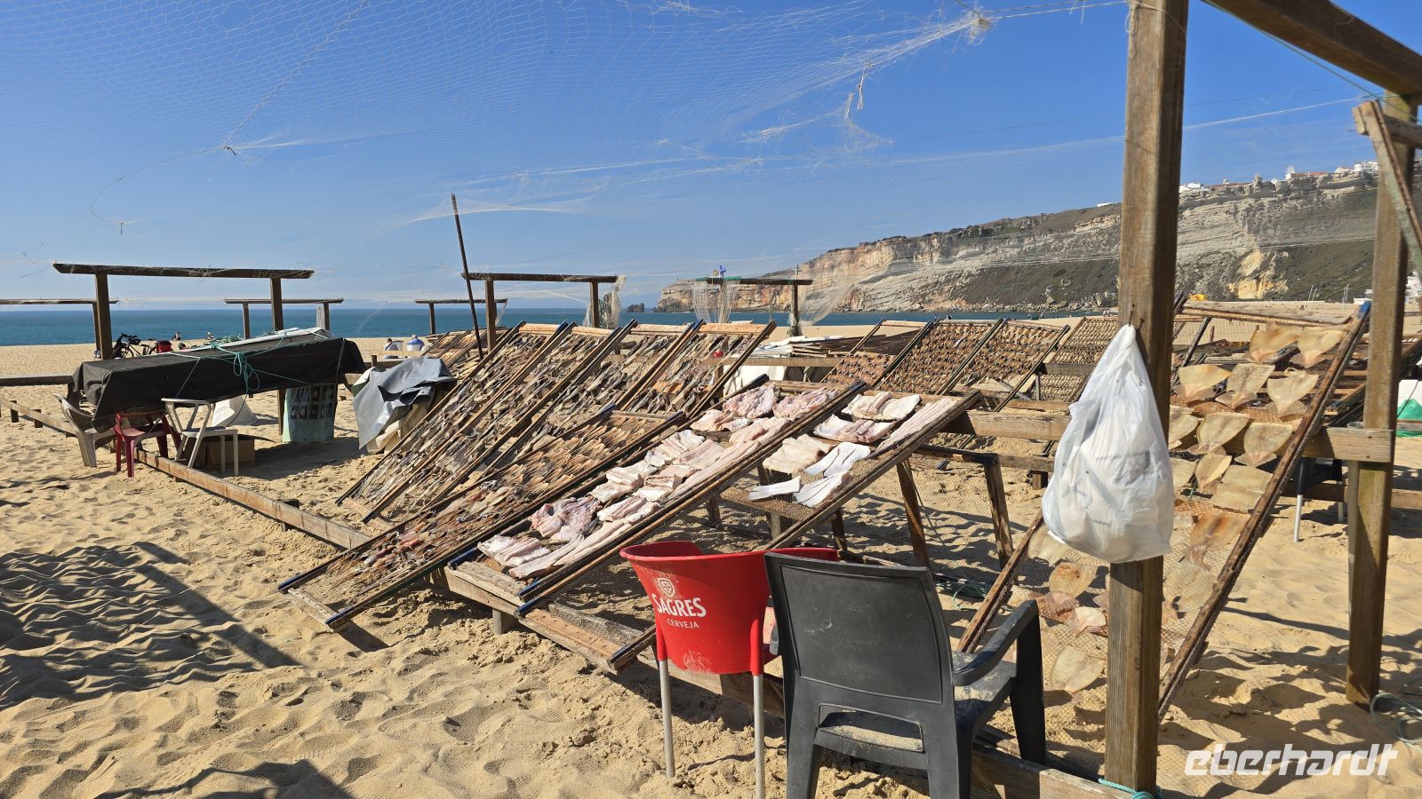 Auch heute noch ein Fischerdorf liegt es an der Westküste, wir fahren an die Strandpromenade. Wer direkt zum Meer geht sieht, wie die Wellen sich tosend brechen! Wie die Gischt aufbraust und den ganzen Strand in feinen Nebel hüllt- WOW! Für manche kommt eine große Welle doch überraschend und das Bad im Atlantik ist perfekt. Gut, dass es so heiß ist heute wieder, die Sachen trocknen schnell und dann haben wir Zeit für den Strand und einen Mittagsimbiss. Auf dem Weg zum Treffpunkt schlendern wir am Strand entlang, sehen die Frauen, die ihren Trockenfisch feilbieten... Für uns doch gewöhnungsbedürftig. Basilio bringt uns dann nach
