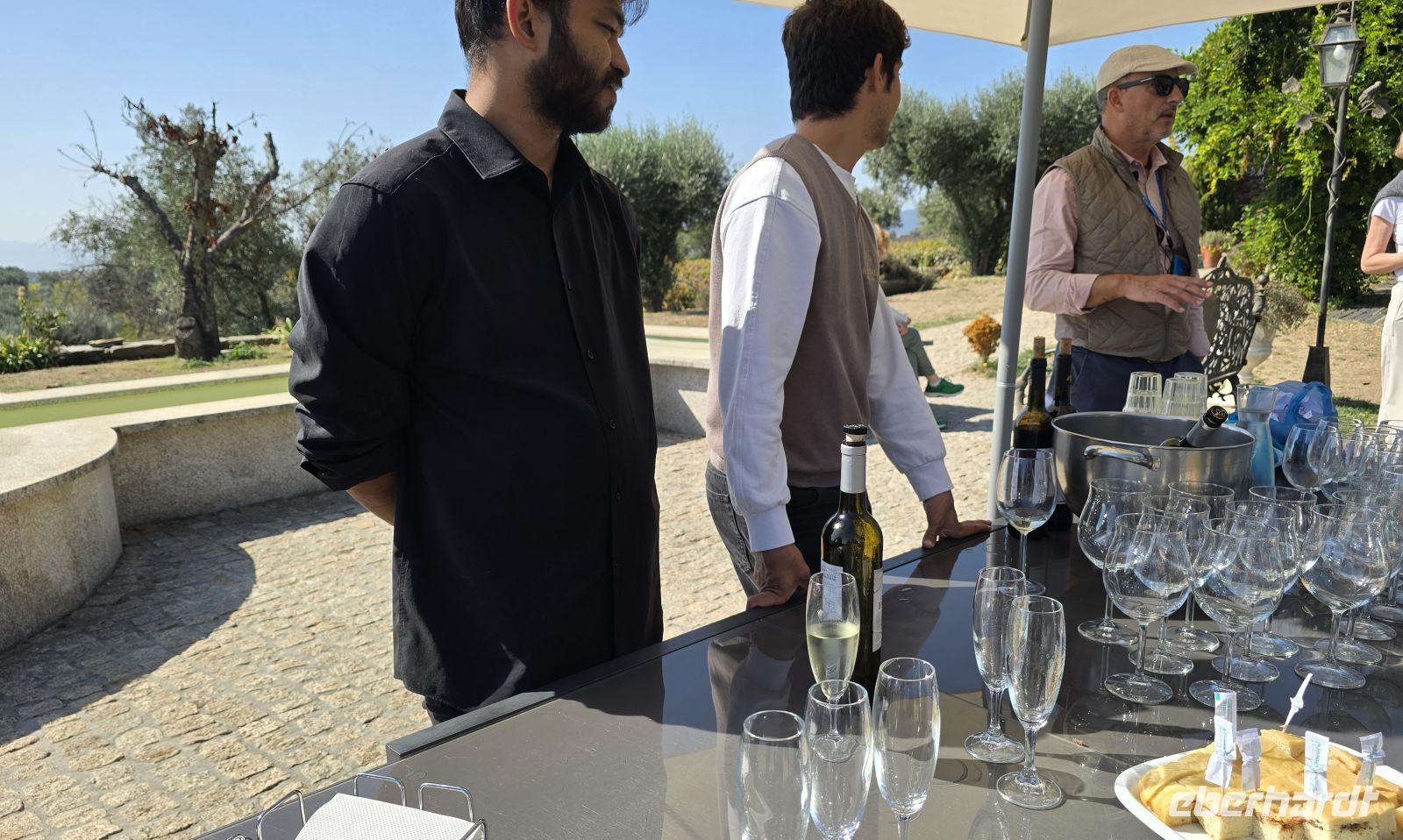In Serpentinen schließlich hinauf in die Weinterrassen. Nur ca. 30 % der Flächen sind mit Weinstöcken bepflanzt, das andere sind Pinienwälder, Kirsch- und Mandelbäume, und natürlich Olivenbäume. Heute zeigt sich, wie wichtig es war, diese Tradition zu erhalten und nicht auf intensive Bewirtschaftung nur mit Wein zu setzen: Es sind einzigartige Lebensräume hier, die Raubvögel wohnen in den Wäldern – sie halten die Reben von Ungeziefer und Insekten frei und so profitieren alle. Dann erreichen wir unser