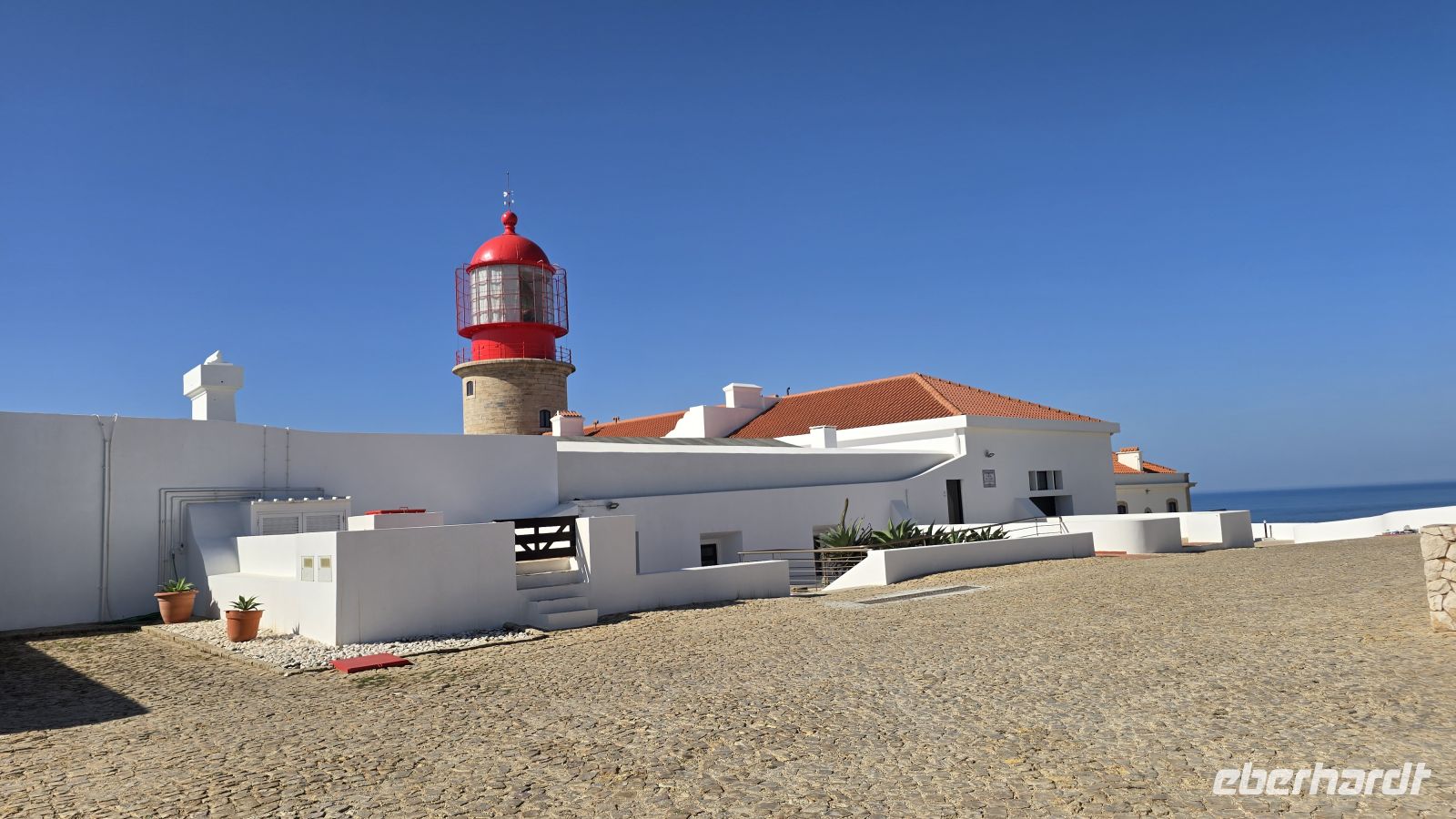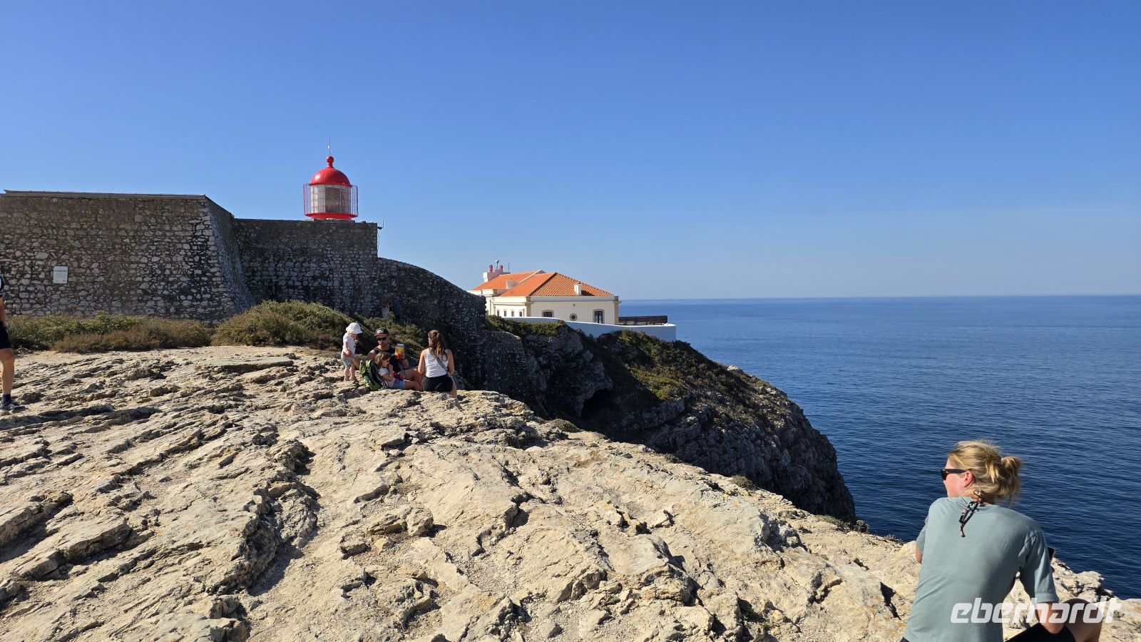 Was für ein Anblick! Über Holzstege erreichen wir die Klippen und sind vom Anblick der Felsen und Formationen überwältigt. Immer wieder bieten sich andere Ausblicke und so wundert es nicht, dass wir hier länger verweilen. Auf dem Weg zum Kap dann ein kurzer Stopp an der Seefahrerschule und Festung in Sagres, von hier aus kann man schon den Leuchtturm sehen. Am