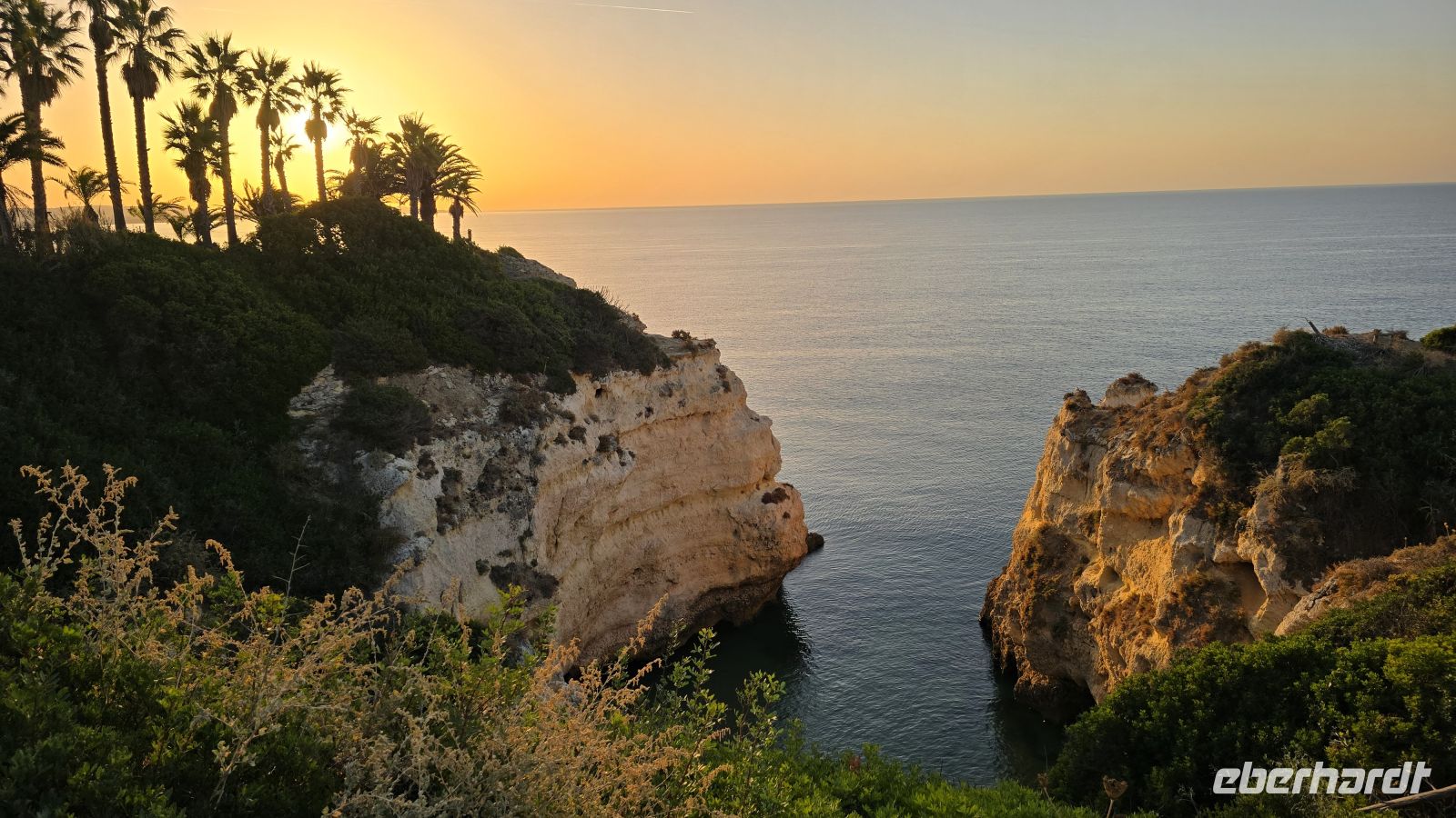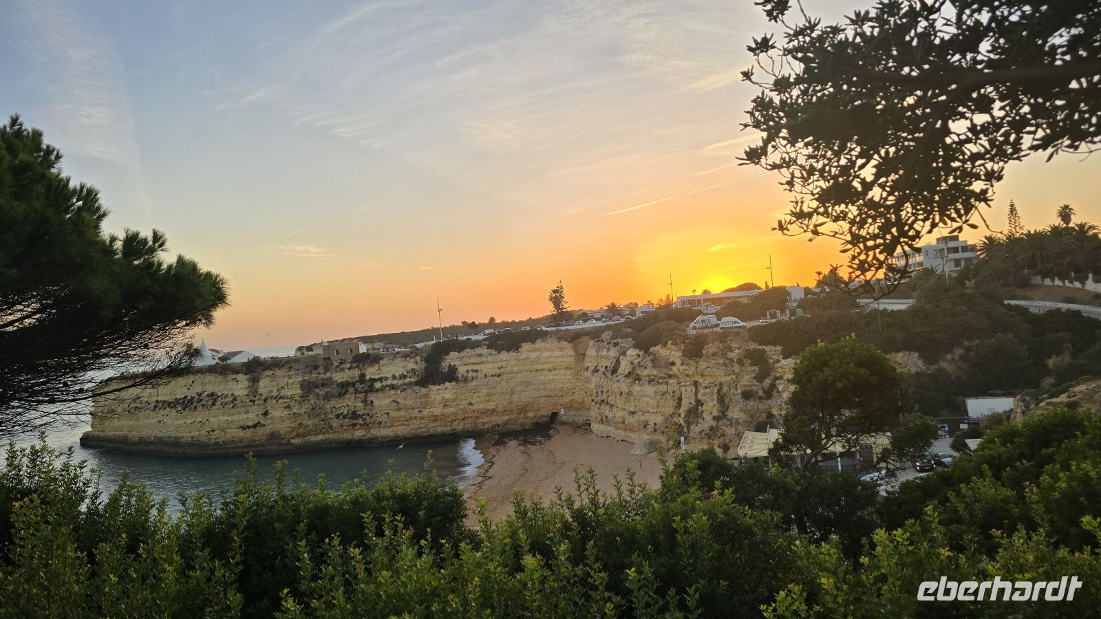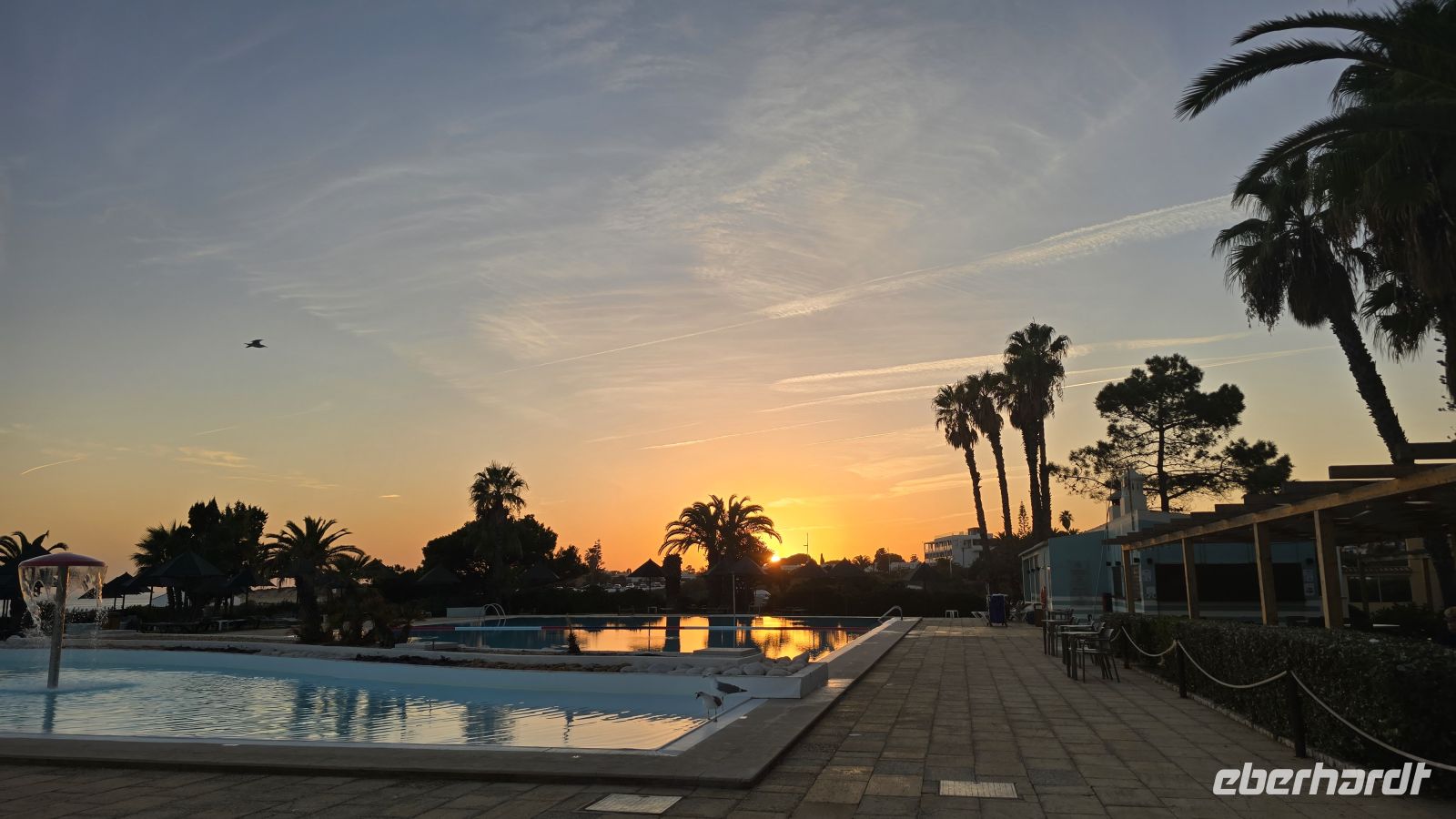 Hier werden wir die letzten Tage unserer Reise verbringen, wir checken ein und müssen uns dann von unserem Guide Luis verabschieden. Das tun wir schweren Herzens und mit einem riesigen Dank an ihn für seine umsichtige und auch flexible Art, unsere Reise zu gestalten. Am Abend genießen wir die traumhafte Lage des Hotels direkt an den Klippen über dem Meer und den ersten Sonnenuntergang hier. Unsere Plätze im Restaurant zum Abendessen sind reserviert, wie immer weisen unsere blauen Eberhardt-Schilder den Weg. Das Buffet läßt keine Wünsche offen und wir lassen den Tag ausklingen, verabschieden uns- bis morgen.
