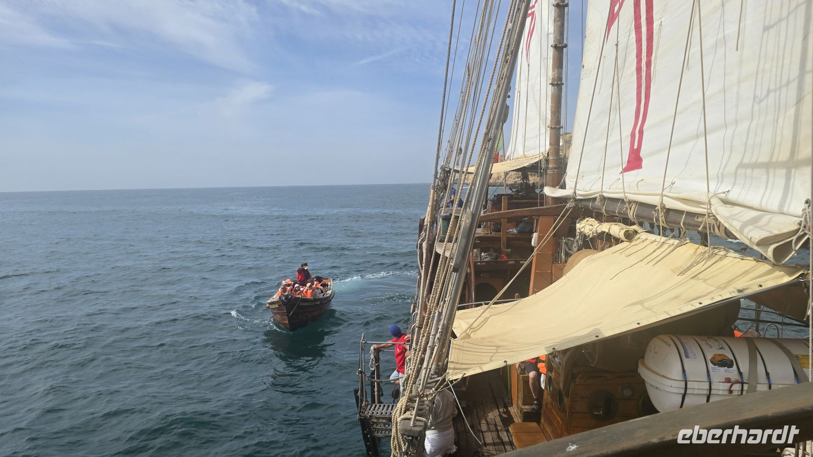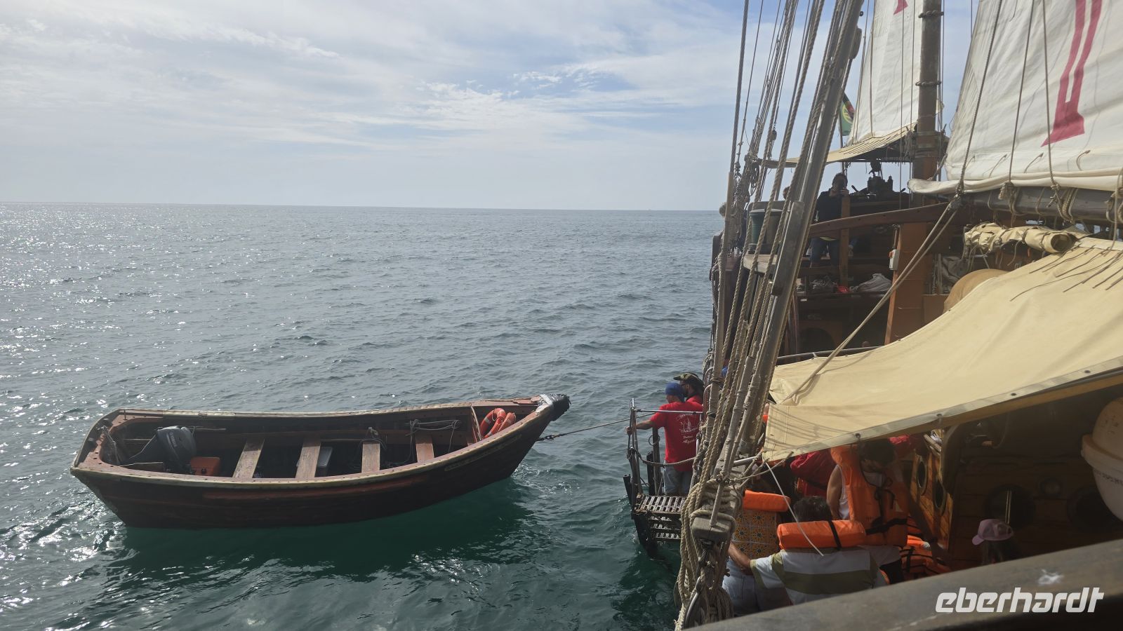 Viele genossen heute den freien Tag, aber 13 Gäste waren meiner Einladung gefolgt zu einem besonderen Ausflug: Ich hatte einen Shuttle nach Portimão bestellt, der brachte uns in die Hafenstadt und bald kam auch schon unser Segelschiff: die