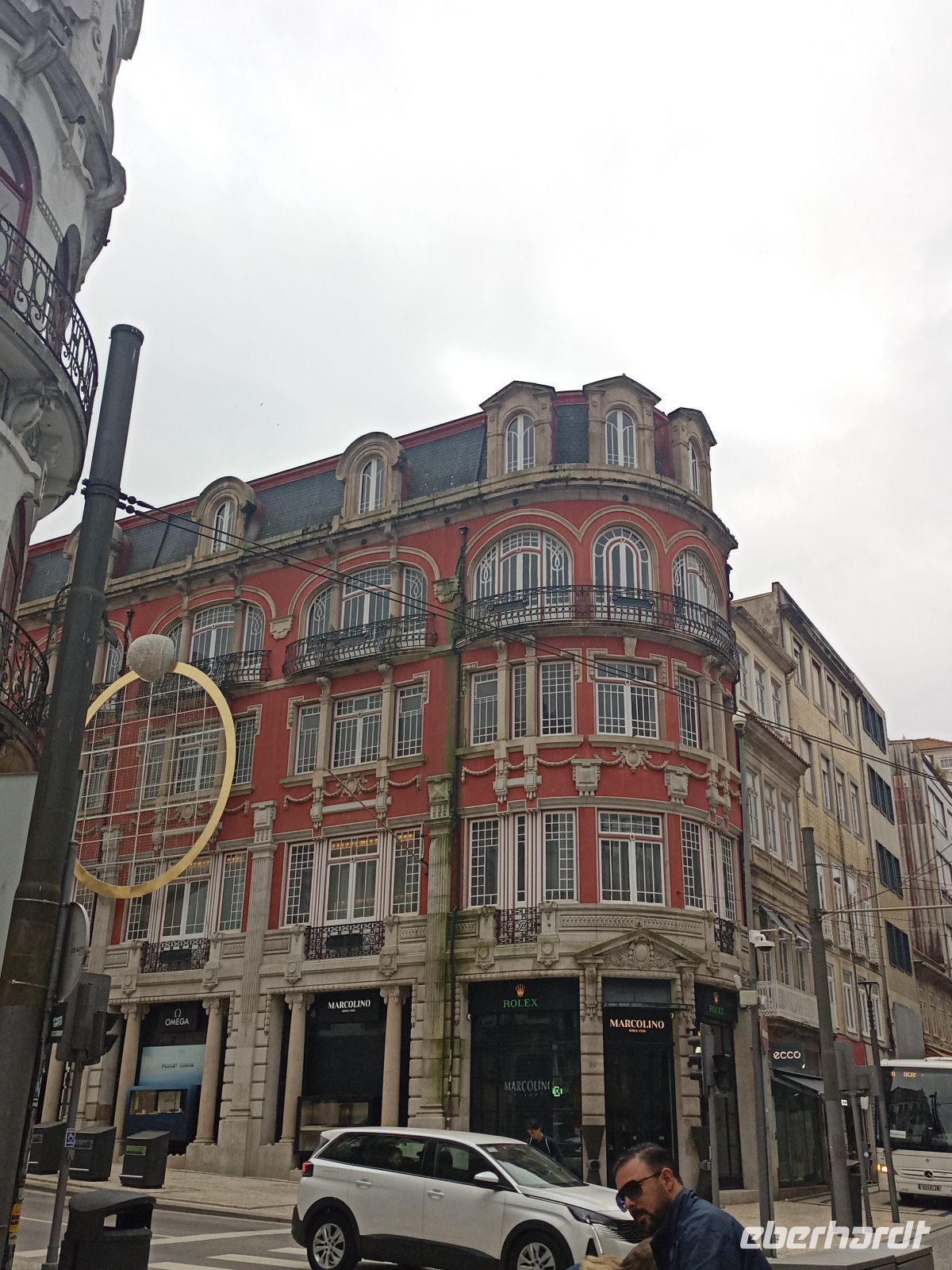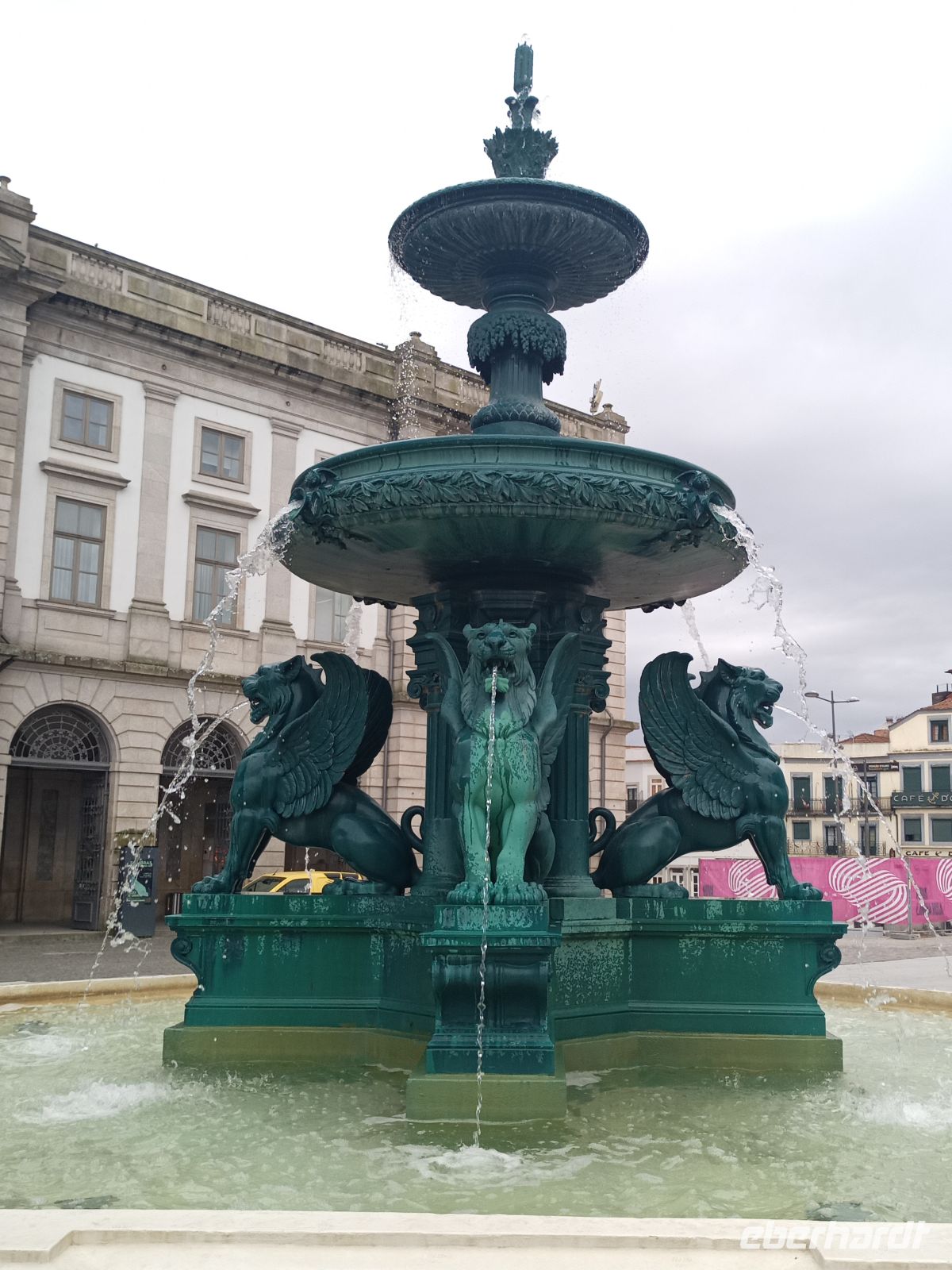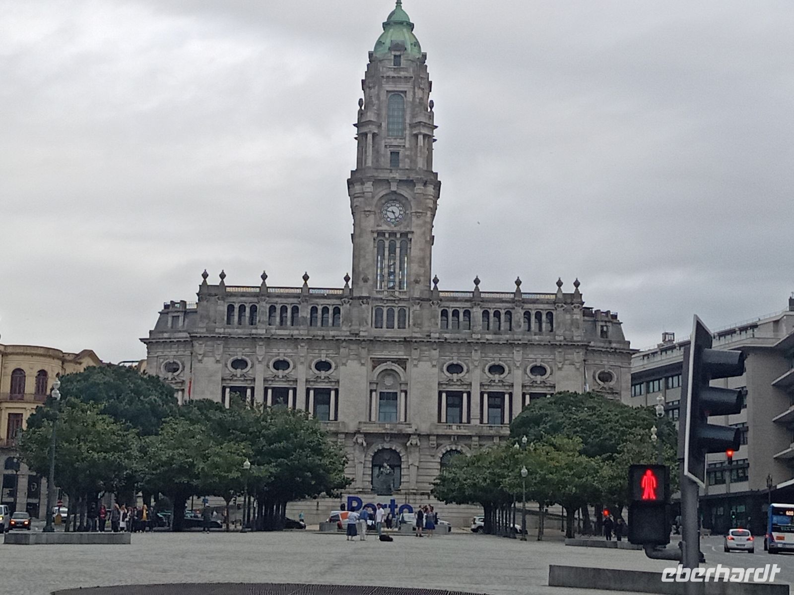 Wie so oft am Atlantik zeigte sich das Wetter an diesem Tag wechselhaft. Während unserer Führung setzte starker Regen ein, und einige Gäste wurden regelrecht durchnässt – ein durchaus authentisches Porto-Erlebnis, wie man augenzwinkernd sagen könnte. Wir kamen zu Börse, mittlerweile hatten wir in dem Trubel zwei Gäste verloren, die wir aber schnell telefonisch erreicht haben. Da Börsengebäude war leider zu, der Regen hat langsam aufgehört, so laufen wir weiter Richtung Hafen.