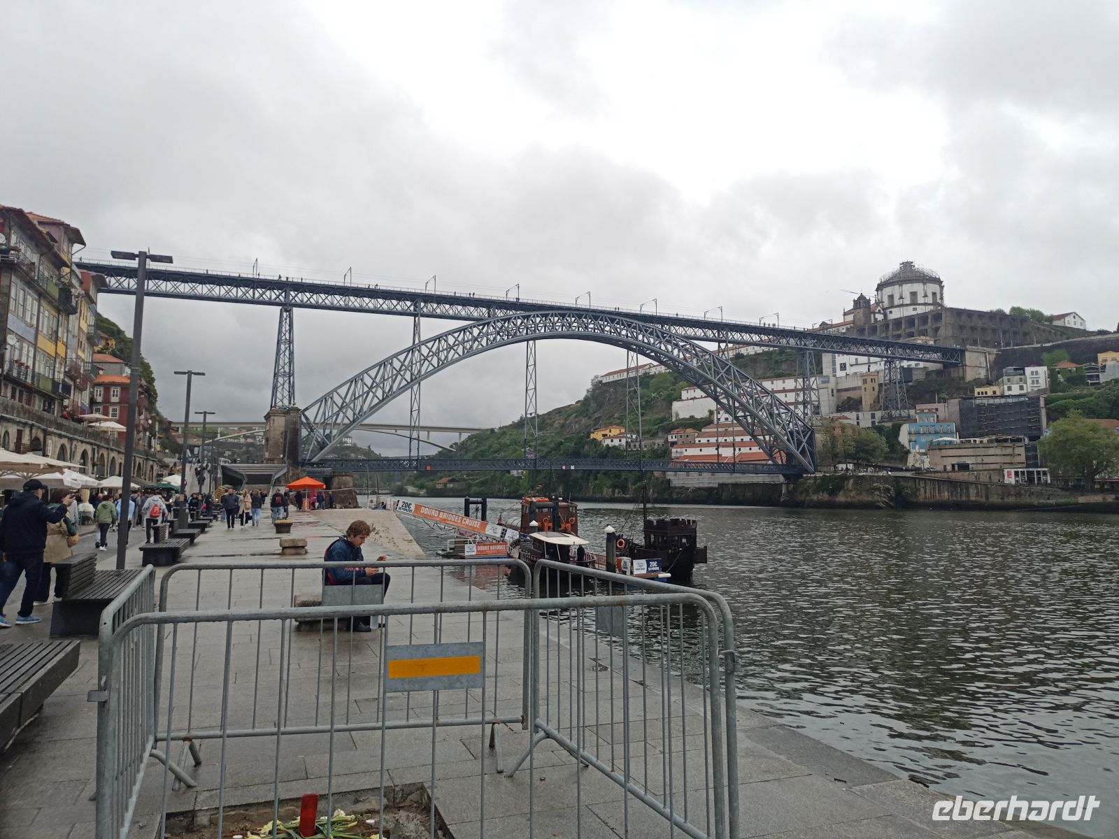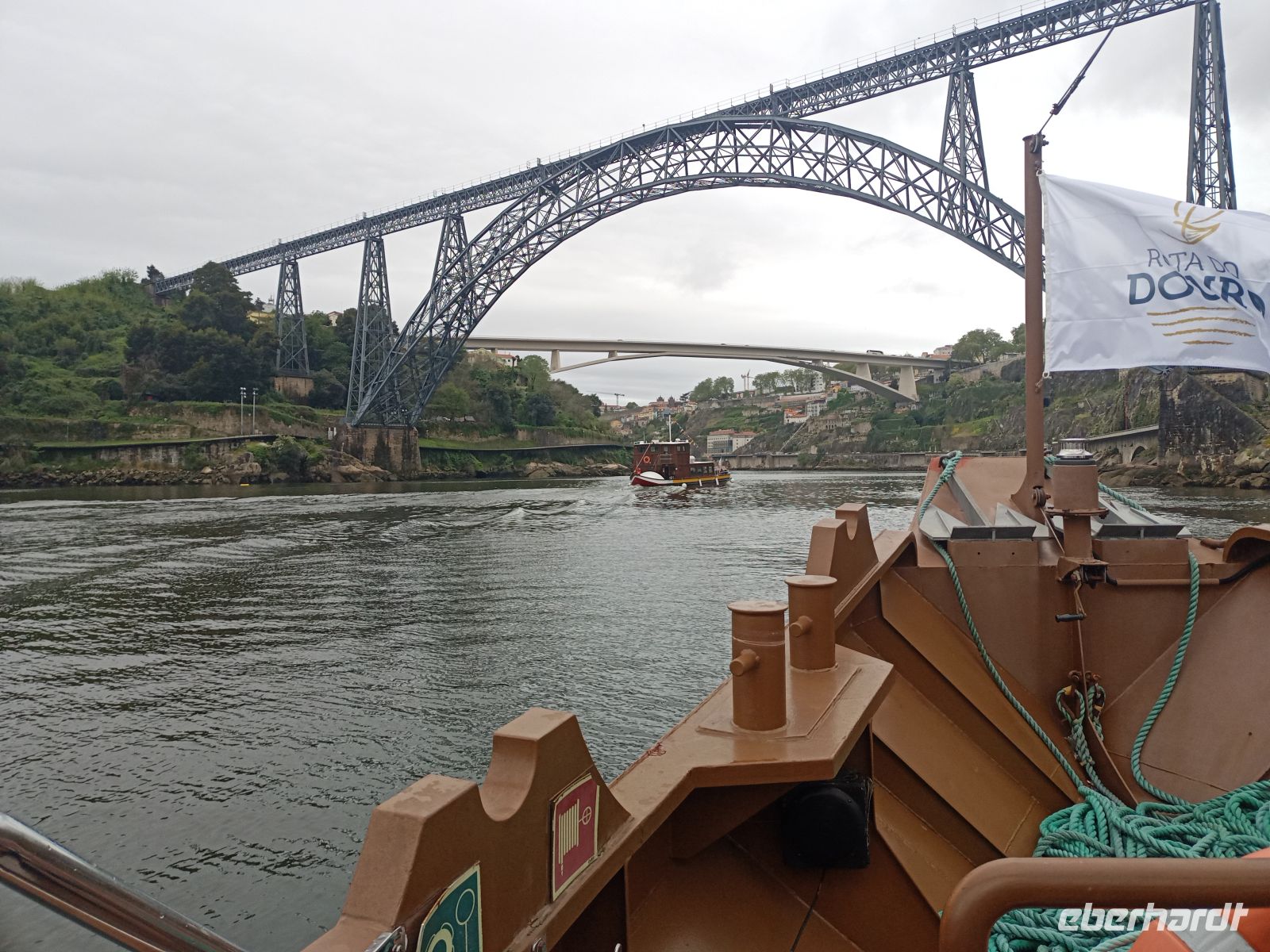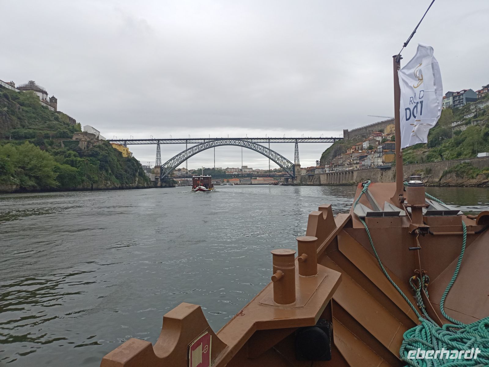 Die beiden zwischenzeitlich ins Hotel zurückgekehrten Gäste stießen wieder zur Gruppe, sodass wir vollständig unser Programm fortführen konnten. Eine Stunde erlebten wir Porto vom Wasser aus – ein Perspektivwechsel, der die Stadt noch einmal ganz anders erschließt. Das Wetter zeigte sich inzwischen freundlicher, auch wenn es kühl und windig blieb. Besonders eindrucksvoll war die Fahrt unter den berühmten Brücken Portos hindurch, die beide Ufer des Douro miteinander verbinden und jeweils ein Stück Stadtgeschichte erzählen. Allen voran die markante Dom-Luís-I-Brücke, entworfen von einem Schüler Gustave Eiffels, gilt bis heute als Wahrzeichen der Stadt. Auch die älteste Brücke, Ponte Maria Pia, einst von Eiffel selbst konstruiert, zeugt von Portos Bedeutung als Handels- und Hafenstadt. Während diese eindrucksvollen Bauwerke an uns vorbeizogen, genossen viele Gäste die besondere Atmosphäre an Bord.