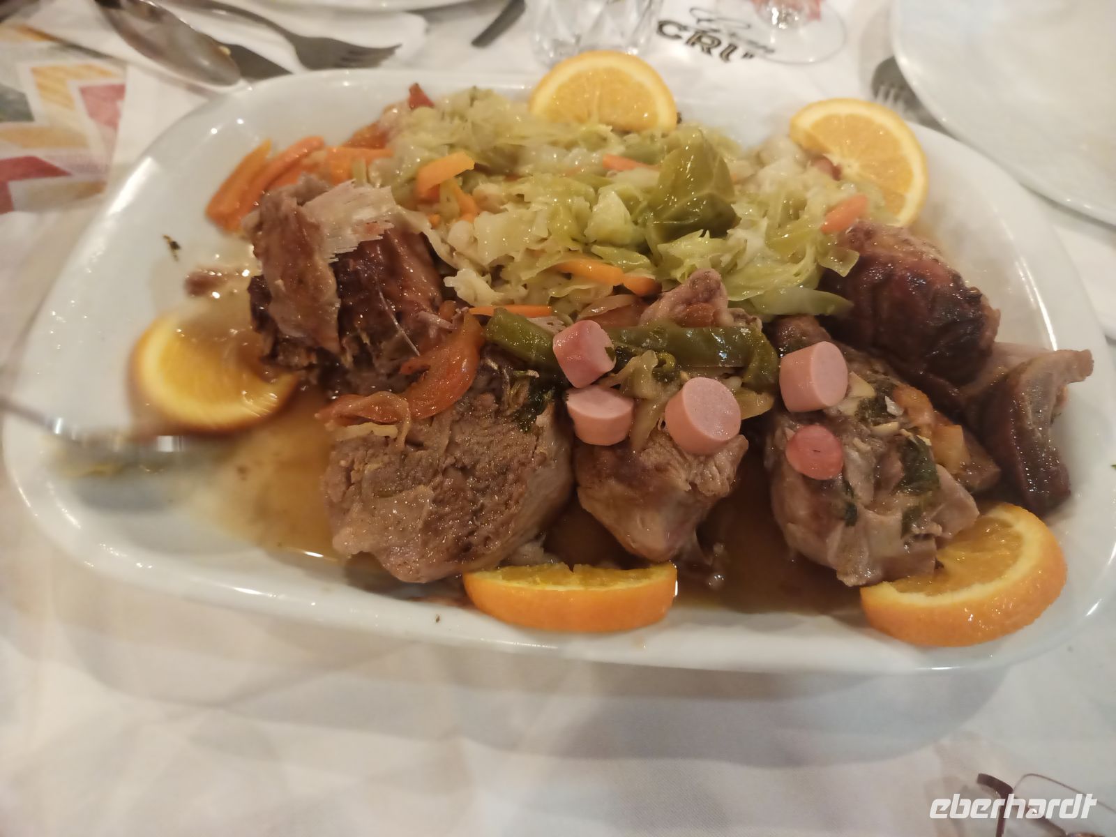 So hatten wir uns das Abendessen redlich verdient. Nach einer kurzen Pause im Hotel ging es gemeinsam zu Fuß in das nahegelegene Restaurant „Taberna Esquina“. Dort erwartete uns ein sehr gutes und reichhaltiges Menü mit Vorspeisen, Bisaro-Schweinenacken als Hauptgang und einem wunderbaren Crème Brûlée als Dessert.