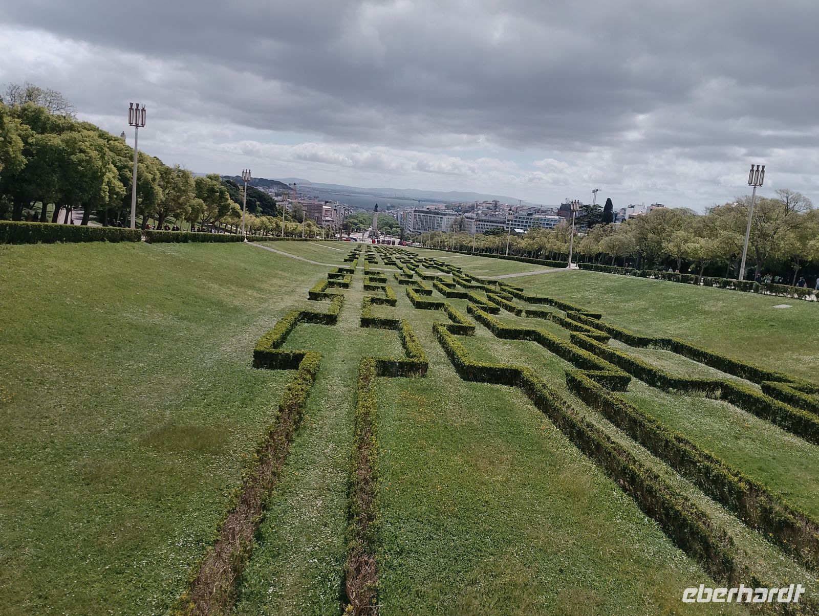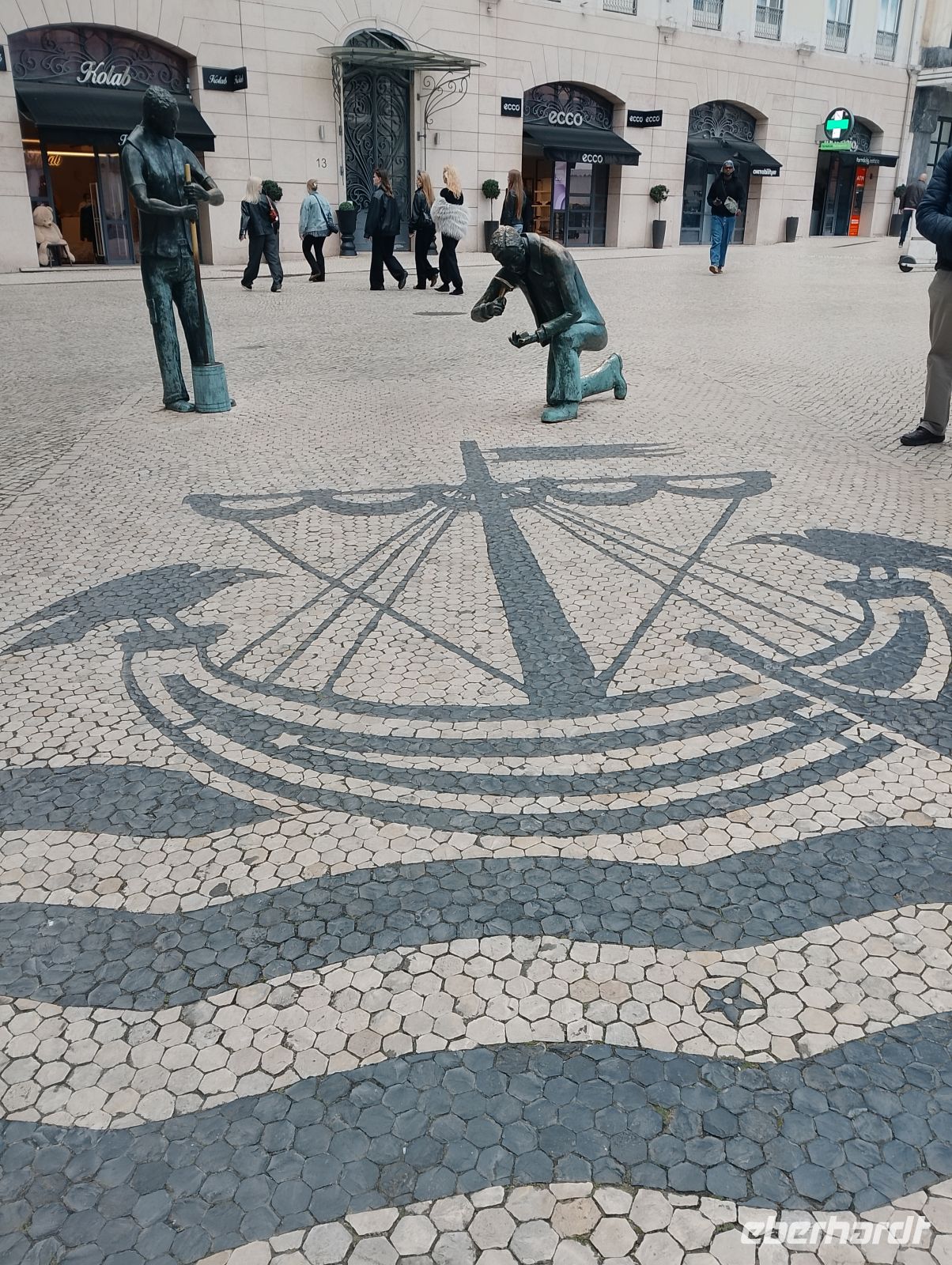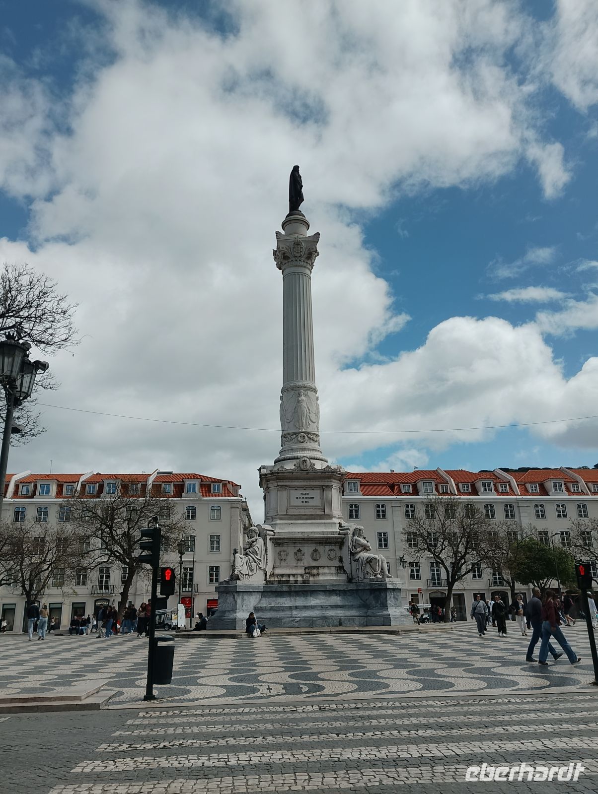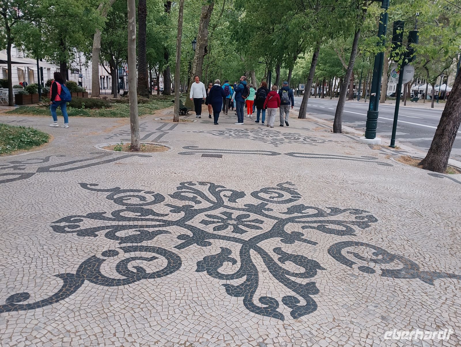 Kurz konnten wir den Zieleinlauf der Sportlerinnen im Bereich des Parque Eduardo VII beobachten. Von dort spazierten wir durch die Grünanlagen des Eduardo-VII-Parks hinunter zum Praça Marquês de Pombal und weiter entlang der Avenida da Liberdade in die Innenstadt von Lissabon. Dort zeigte sich das Wetter deutlich milder und angenehmer. Die Sperrungen des Stadtlaufs waren inzwischen aufgehoben, sodass die Innenstadt wieder frei zugänglich war.