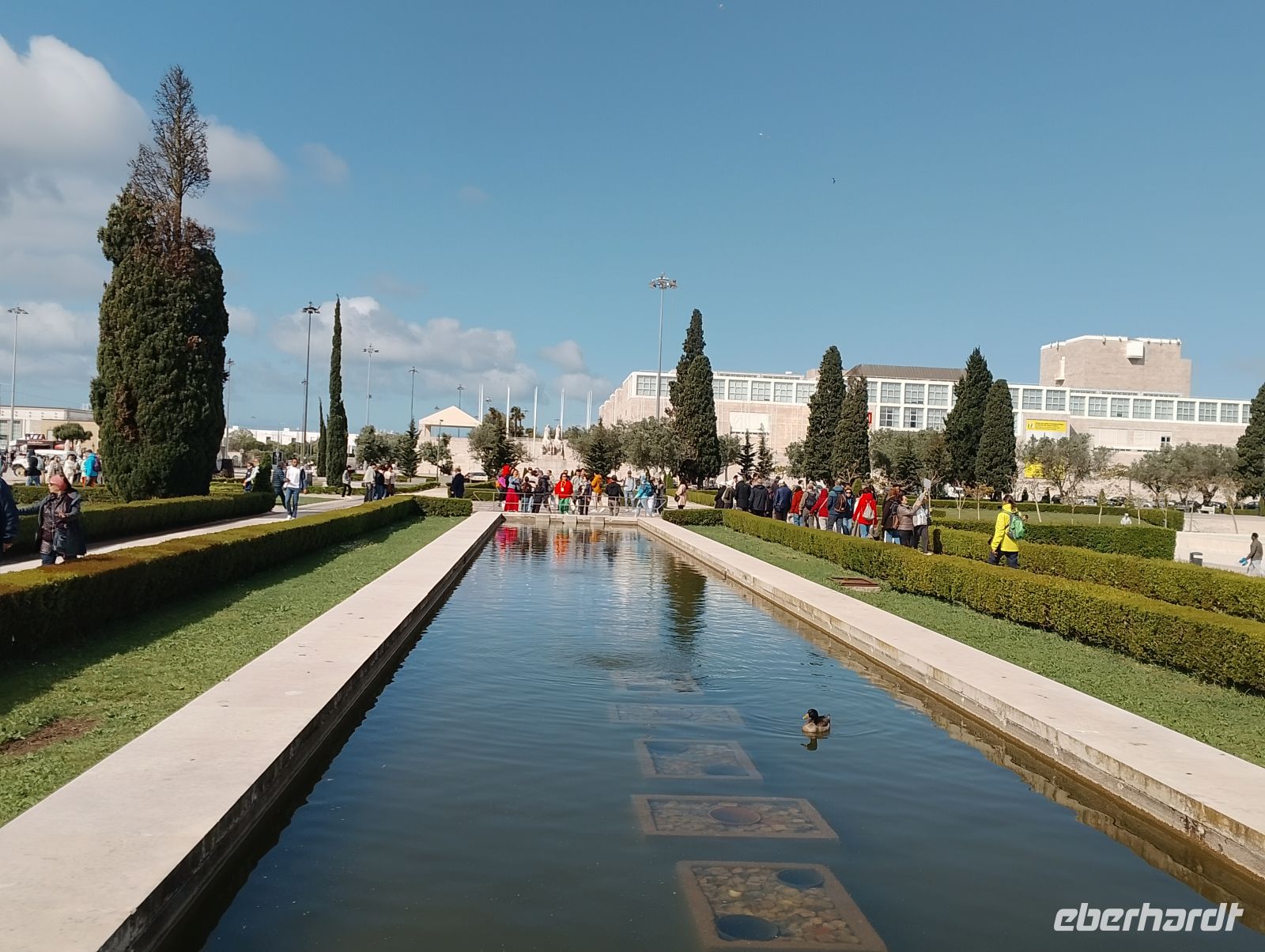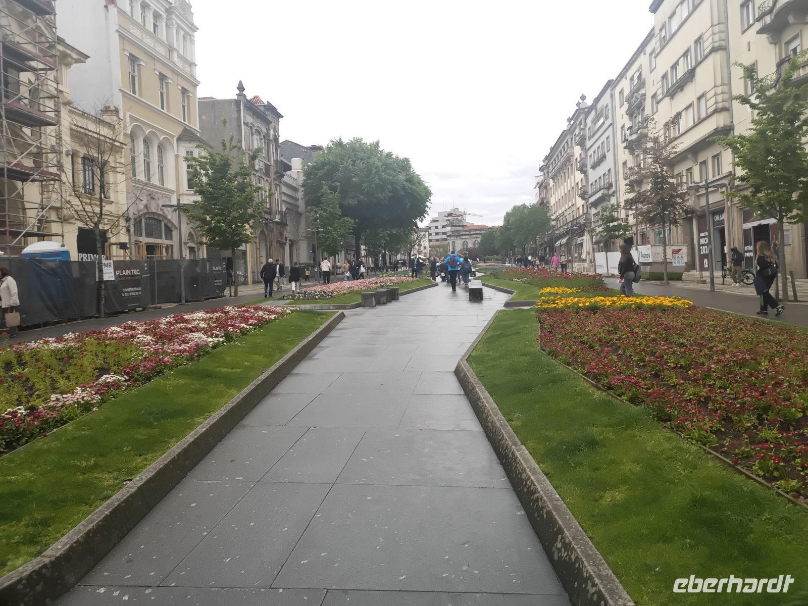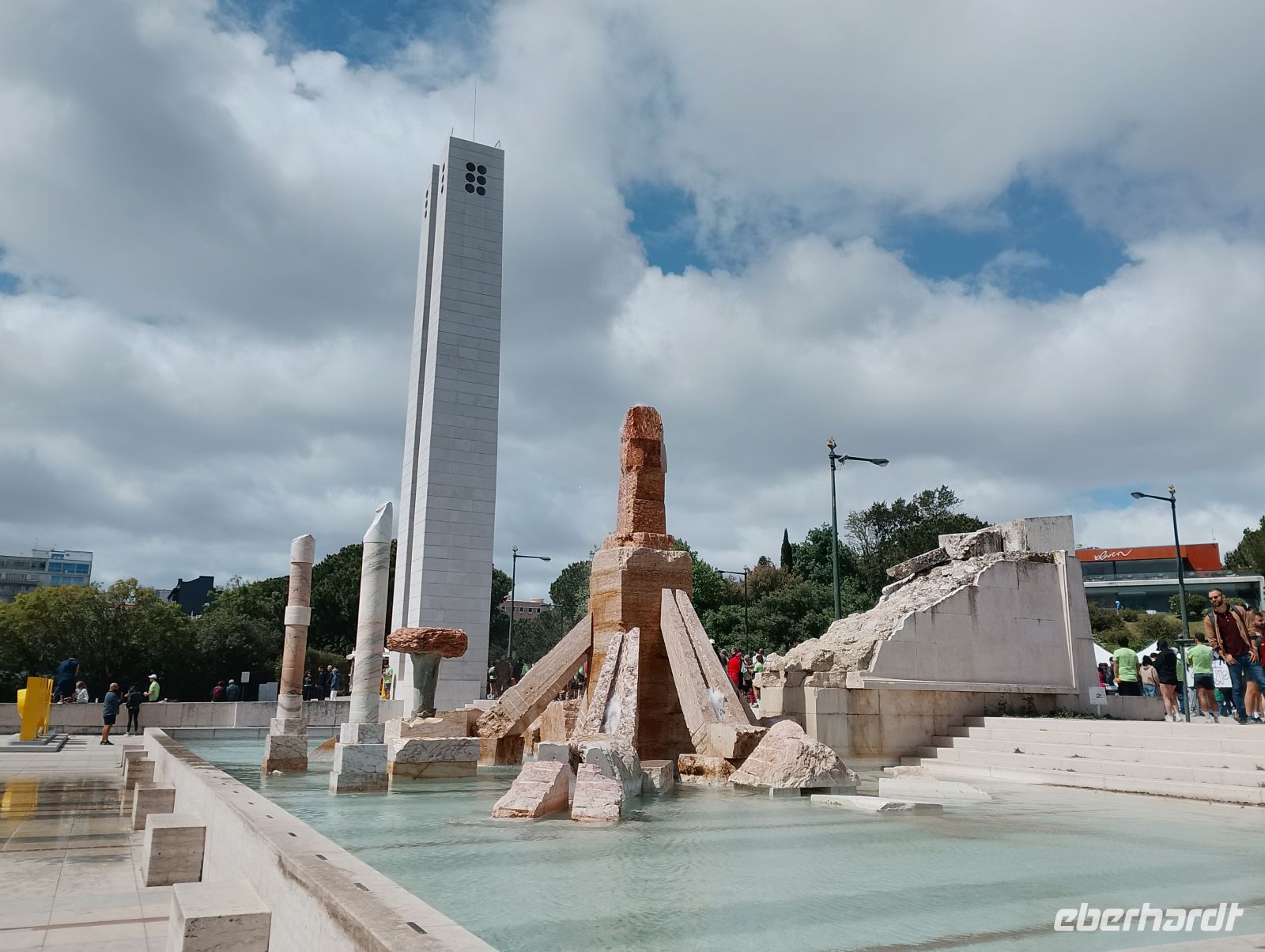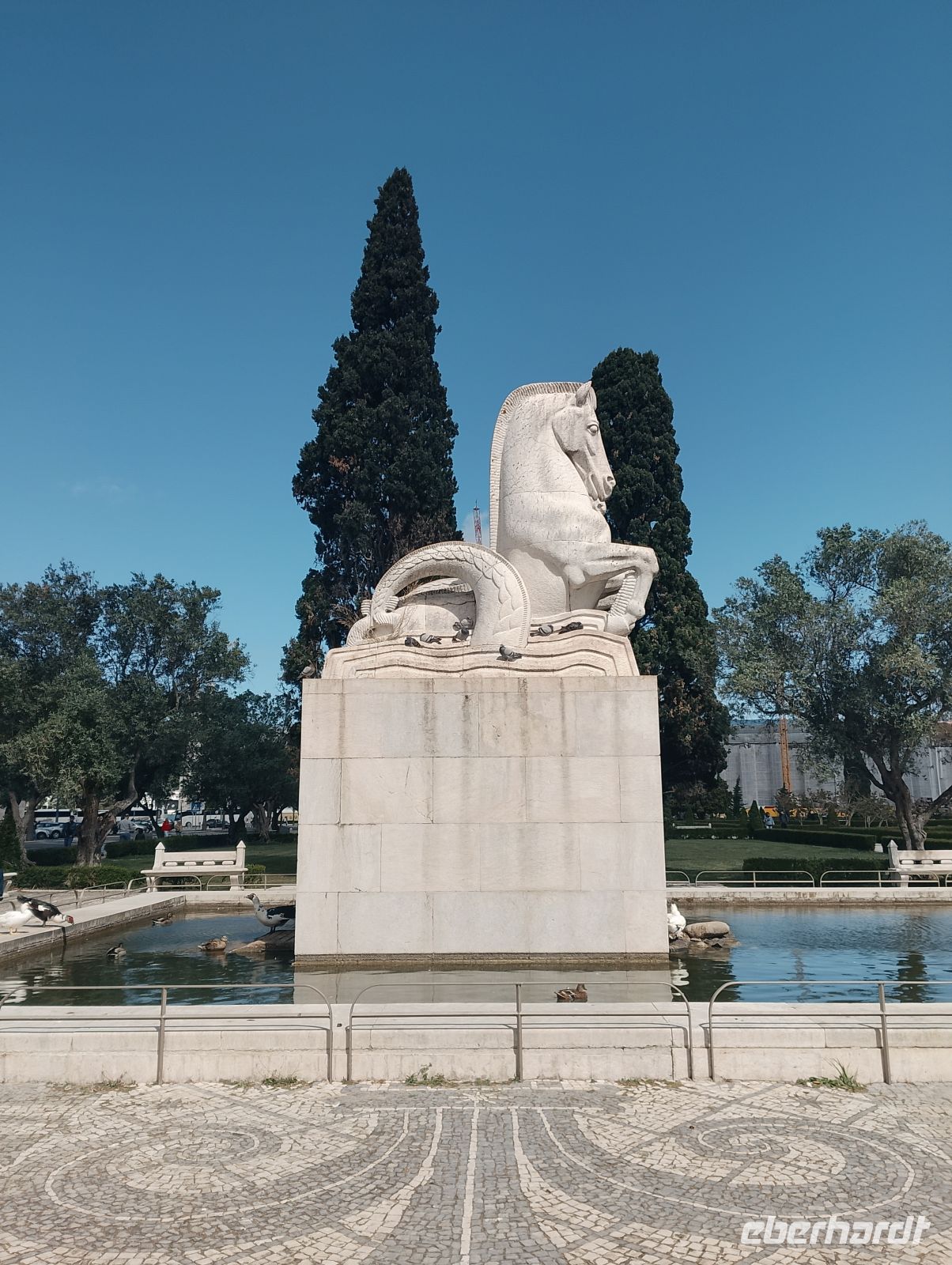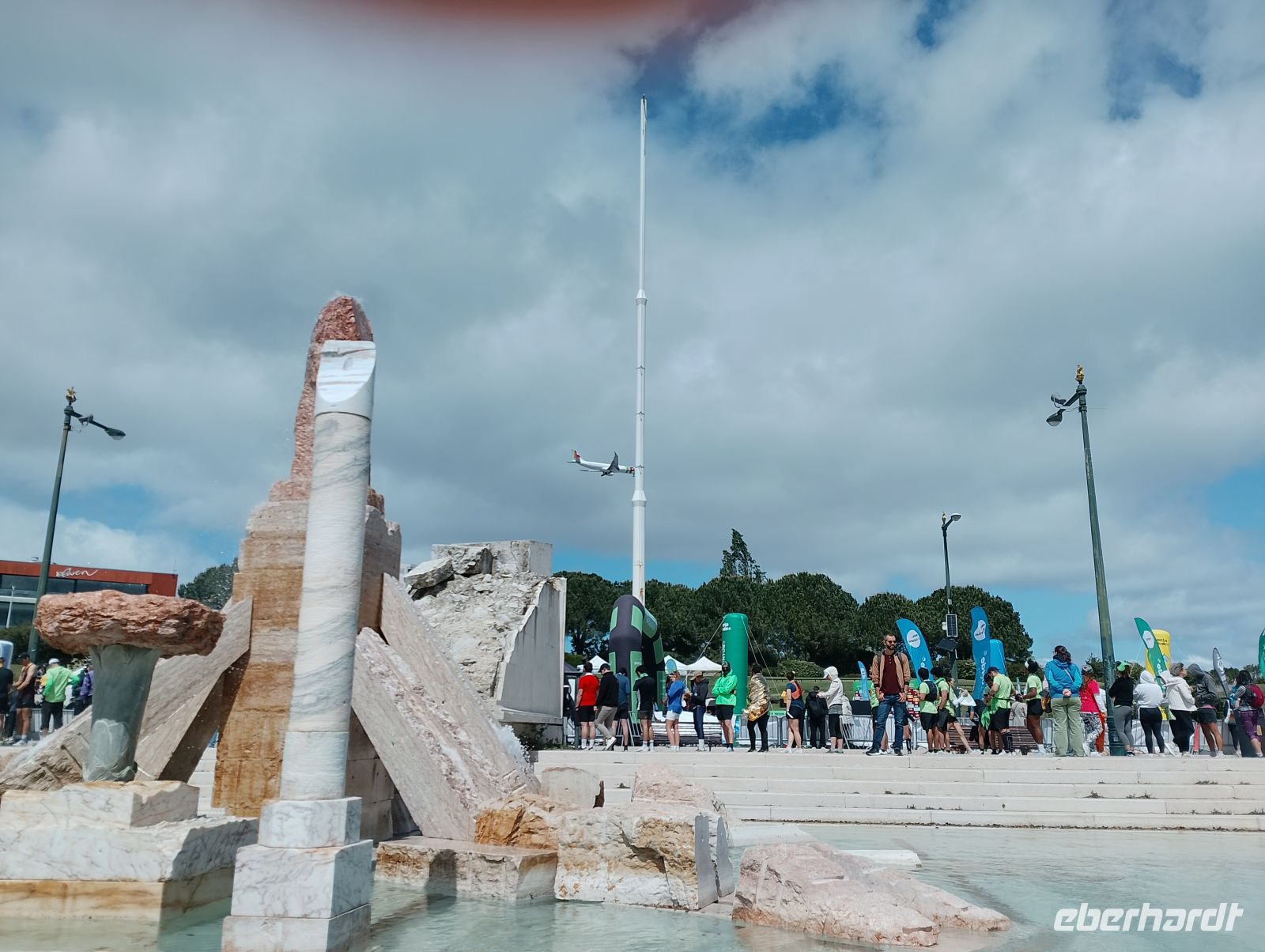 Kurz konnten wir den Zieleinlauf der Sportlerinnen im Bereich des Parque Eduardo VII beobachten. Von dort spazierten wir durch die Grünanlagen des Eduardo-VII-Parks hinunter zum Praça Marquês de Pombal und weiter entlang der Avenida da Liberdade in die Innenstadt von Lissabon. Dort zeigte sich das Wetter deutlich milder und angenehmer. Die Sperrungen des Stadtlaufs waren inzwischen aufgehoben, sodass die Innenstadt wieder frei zugänglich war.