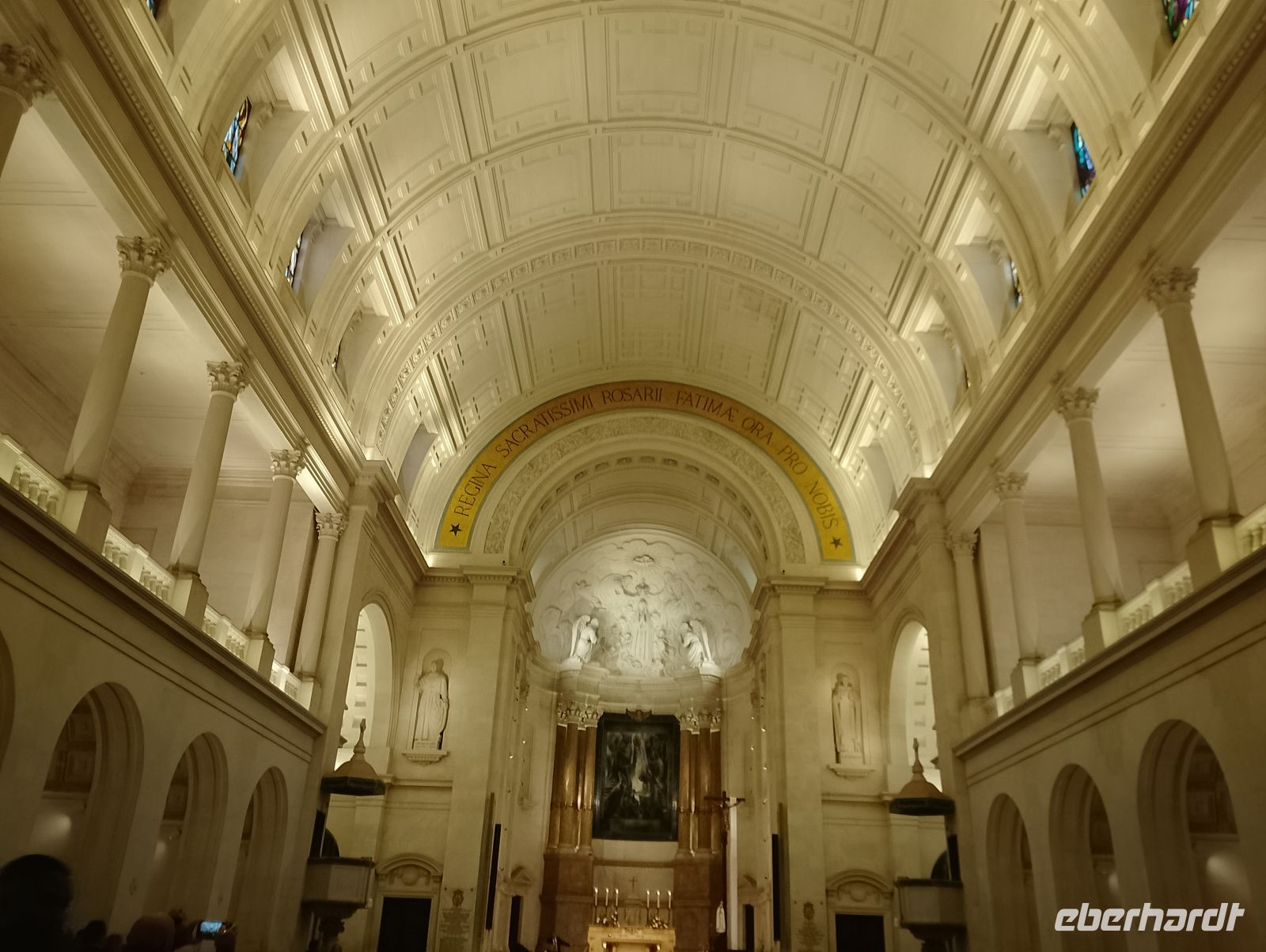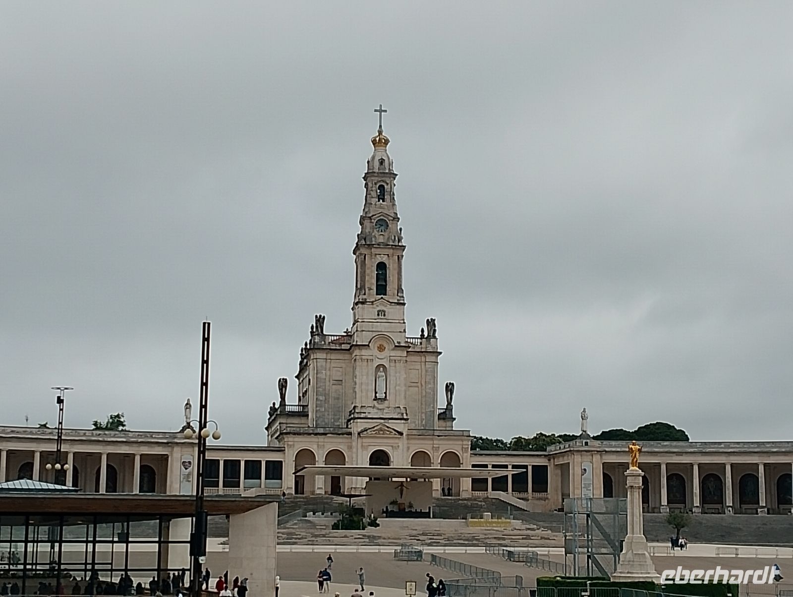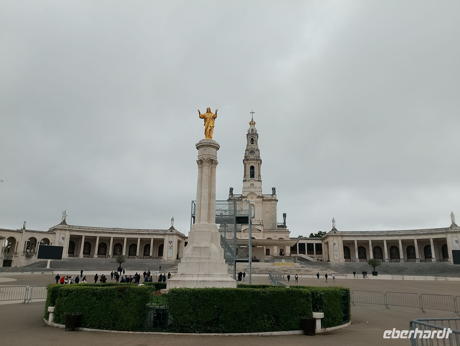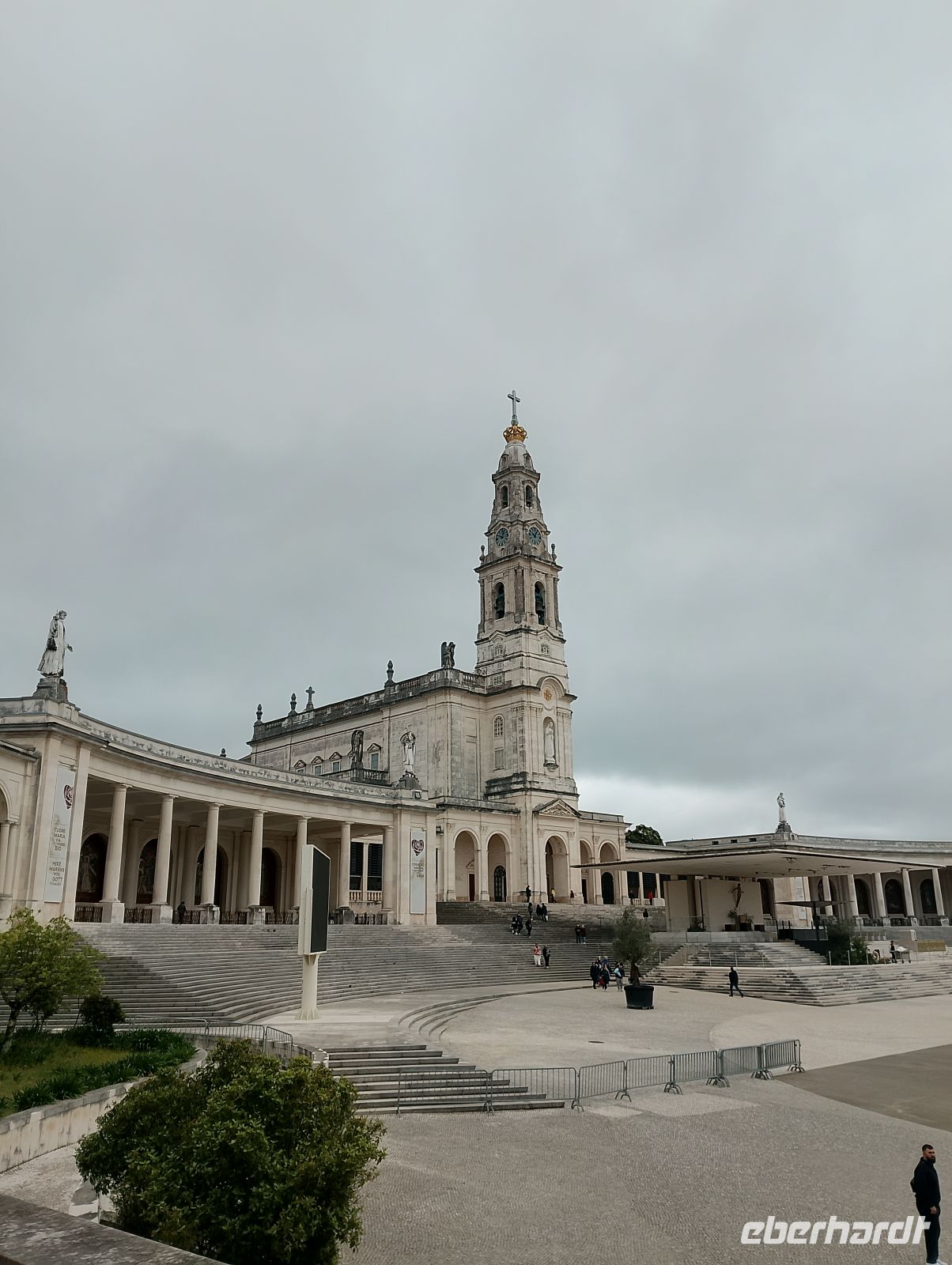 Im Zentrum stehen zwei markante Kirchenanlagen: die klassische Basilika Nossa Senhora do Rosário aus den 1920er Jahren mit ihren schlanken Türmen und der langen Kolonnade sowie die moderne, deutlich größere Kirche der Heiligen Dreifaltigkeit, die 2007 eingeweiht wurde und zu den größten Kirchen der Welt zählt. Beide Bauwerke spiegeln auf eindrucksvolle Weise die Entwicklung Fátimas vom einfachen Erscheinungsort zu einem internationalen Pilgerzentrum wider.