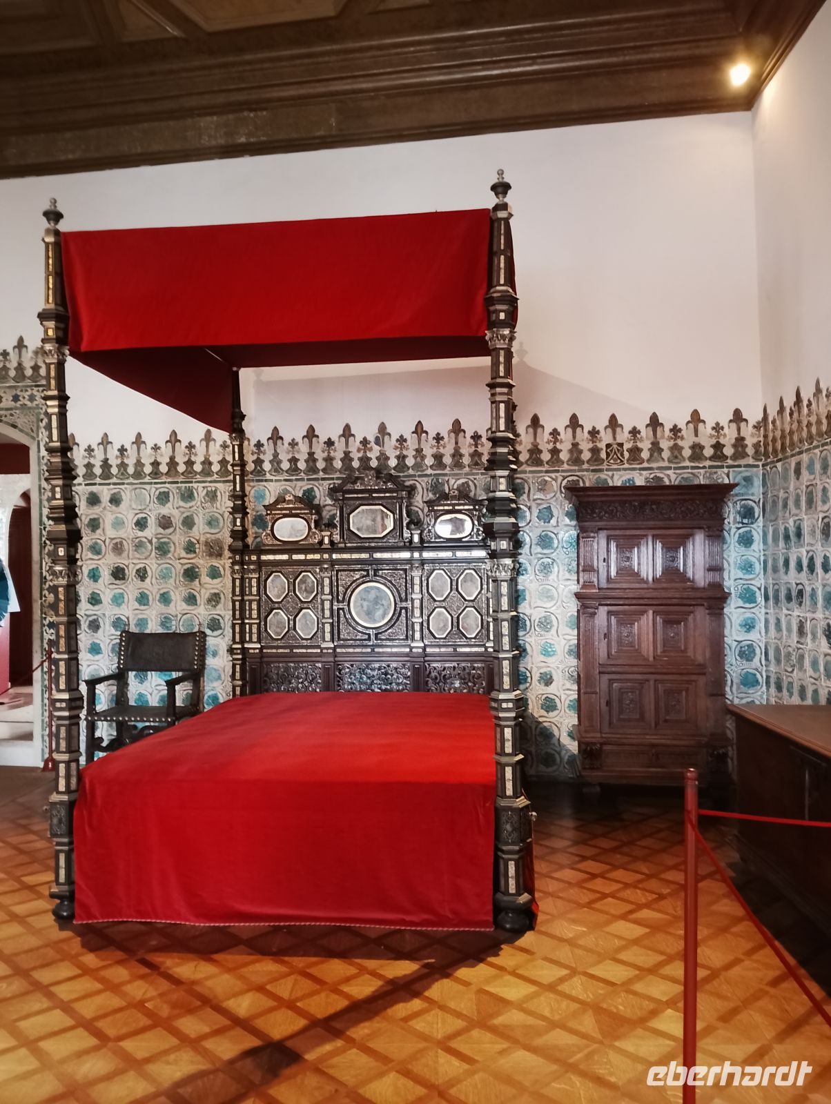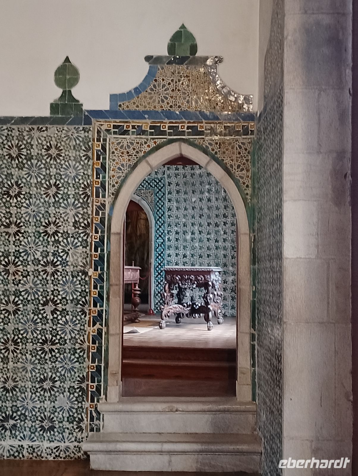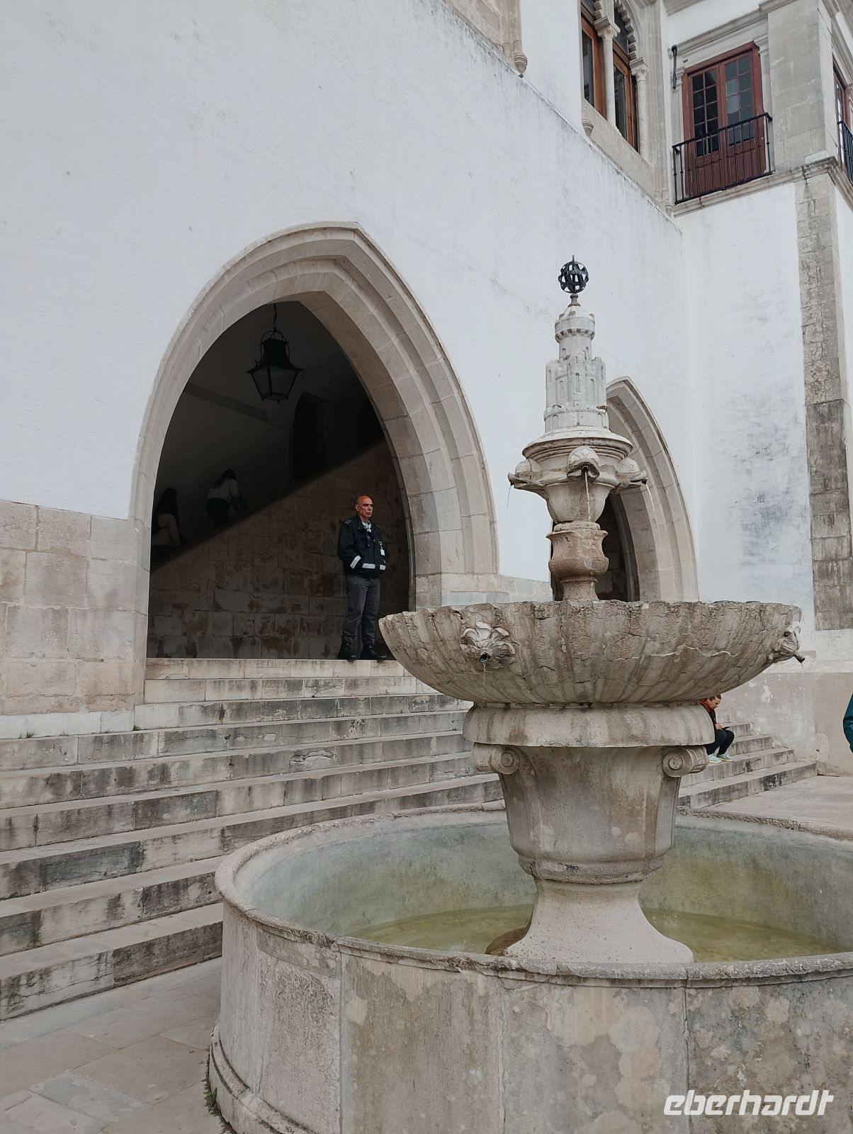 Am Nachmittag besichtigten wir gemeinsam den Palácio Nacional de Sintra, der mit seinen markanten Schornsteinen bereits von außen gut erkennbar ist. Der Palast war über viele Jahrhunderte königliche Residenz und beeindruckt besonders durch seine Mischung aus maurischen, gotischen und manuelinischen Stilelementen sowie seine reich ausgestatteten Innenräume. Im Inneren beeindruckten vor allem die reich ausgestatteten Säle mit kunstvollen Azulejos, historischen Deckenmalereien und prachtvollen Räumen. Ein besonderes Interesse weckte zudem die Ausstellung mit historischen beweglichen Bildern.