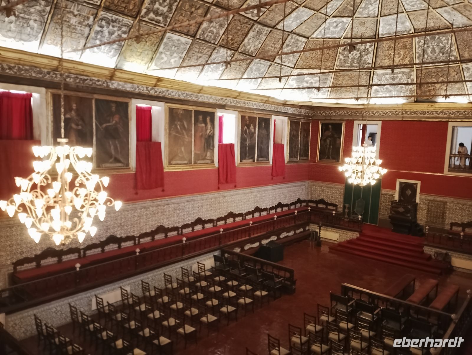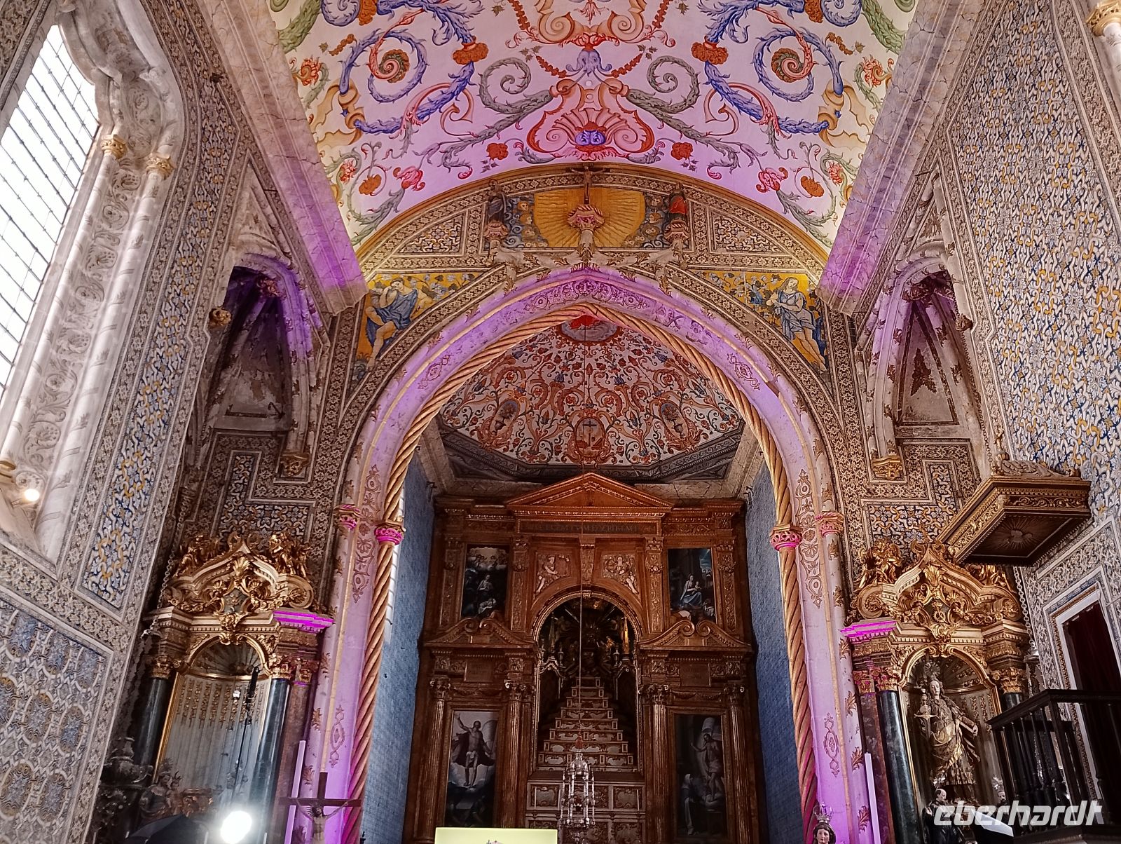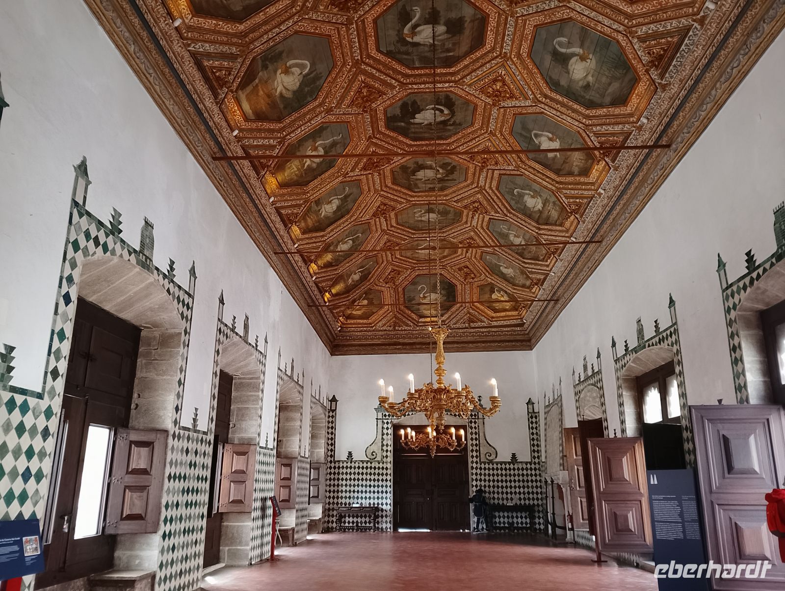 Am Nachmittag besichtigten wir gemeinsam den Palácio Nacional de Sintra, der mit seinen markanten Schornsteinen bereits von außen gut erkennbar ist. Der Palast war über viele Jahrhunderte königliche Residenz und beeindruckt besonders durch seine Mischung aus maurischen, gotischen und manuelinischen Stilelementen sowie seine reich ausgestatteten Innenräume. Im Inneren beeindruckten vor allem die reich ausgestatteten Säle mit kunstvollen Azulejos, historischen Deckenmalereien und prachtvollen Räumen. Ein besonderes Interesse weckte zudem die Ausstellung mit historischen beweglichen Bildern.