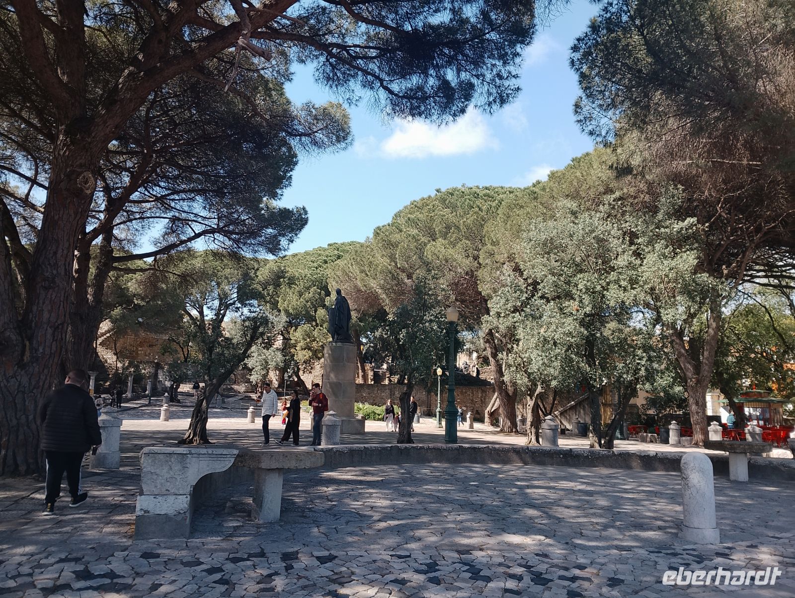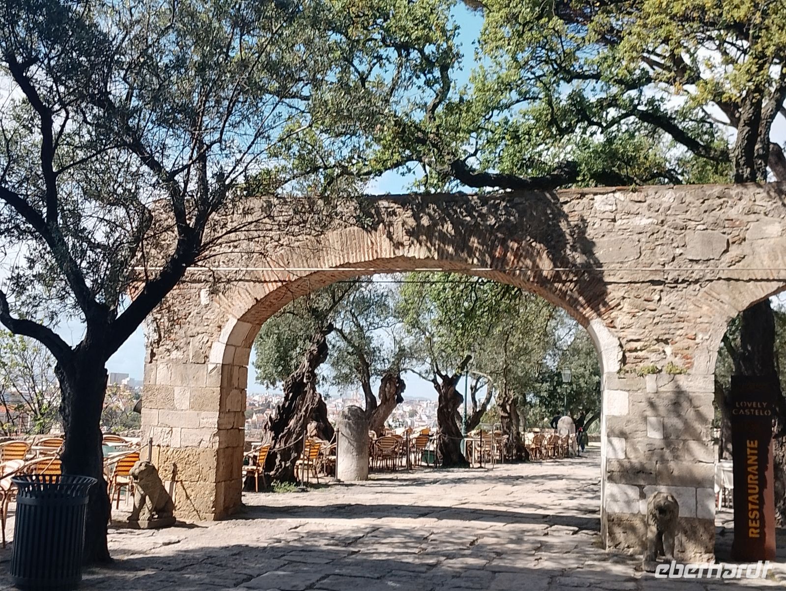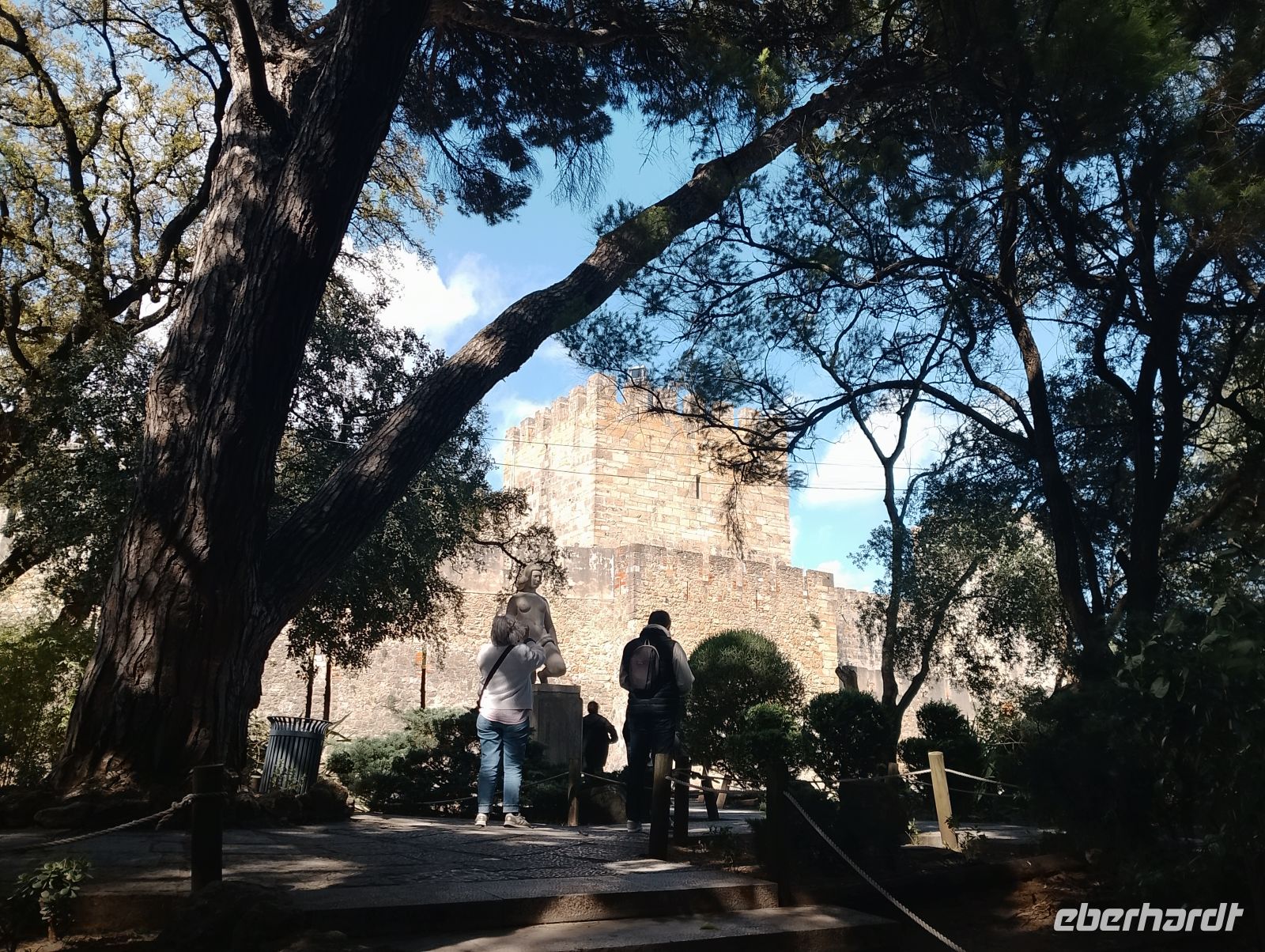 Am Nachmittag traf sich die Gruppe wieder am Restauradores-Platz, wo ein Teil sich bereits am Brunnen versammelt hatte. Von dort begann der gemeinsame Aufstieg zur Burg São Jorge. Auch wenn wir teilweise den Aufzug nutzten, war der anschließende Weg hinauf in der Nachmittagswärme durchaus anspruchsvoll, wurde jedoch mit großer Motivation bewältigt. Einzelne Gäste verzichteten auf diesen Programmpunkt und verbrachten die Zeit individuell in der Stadt.