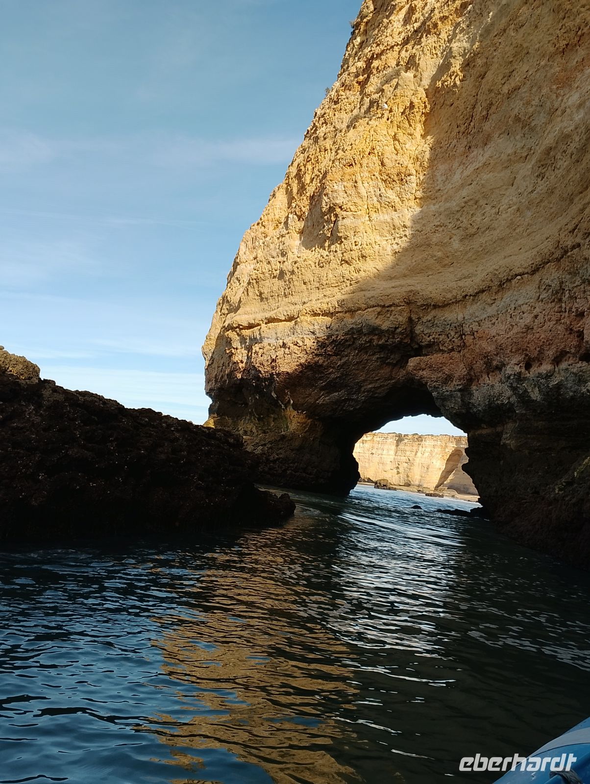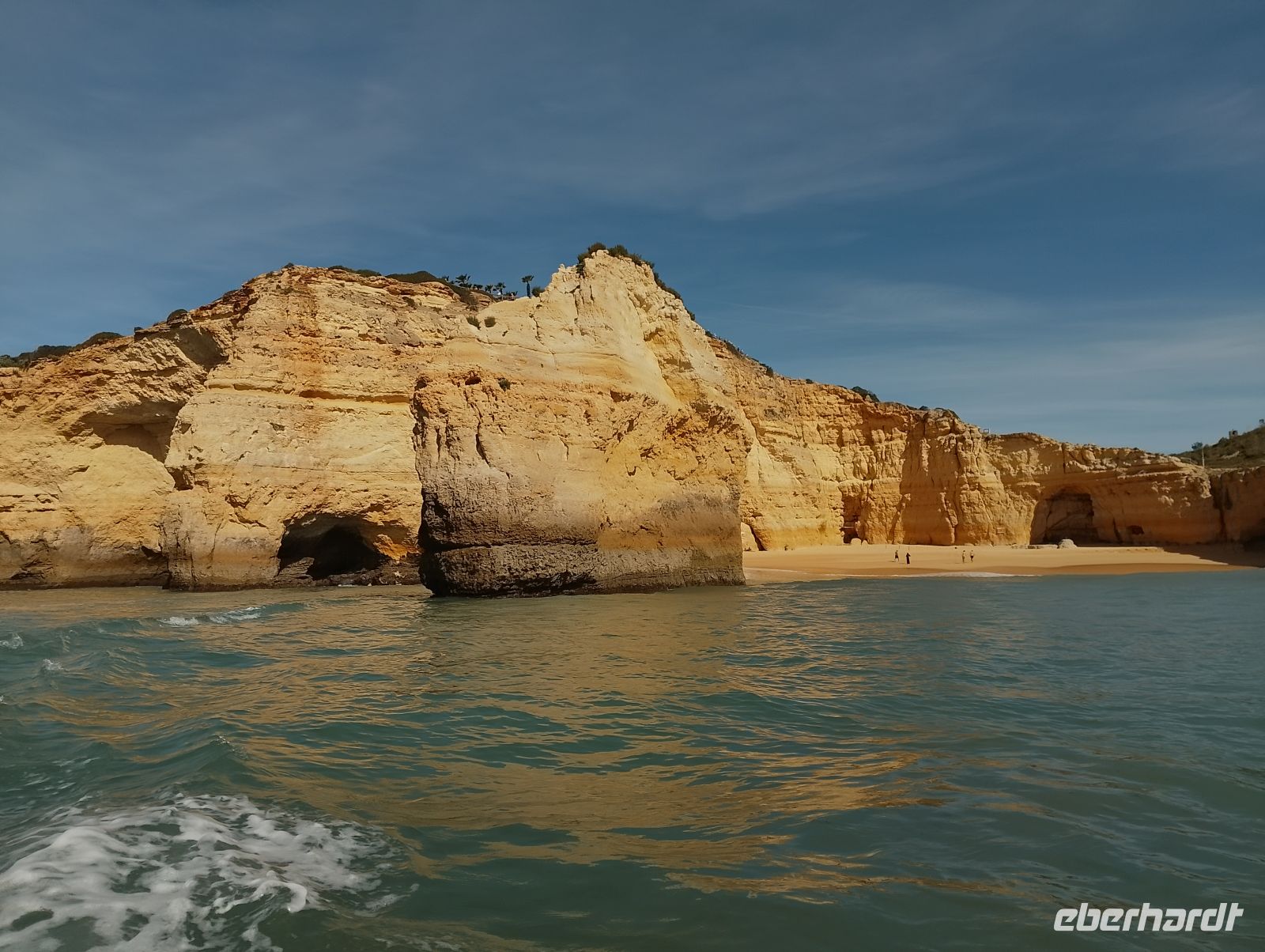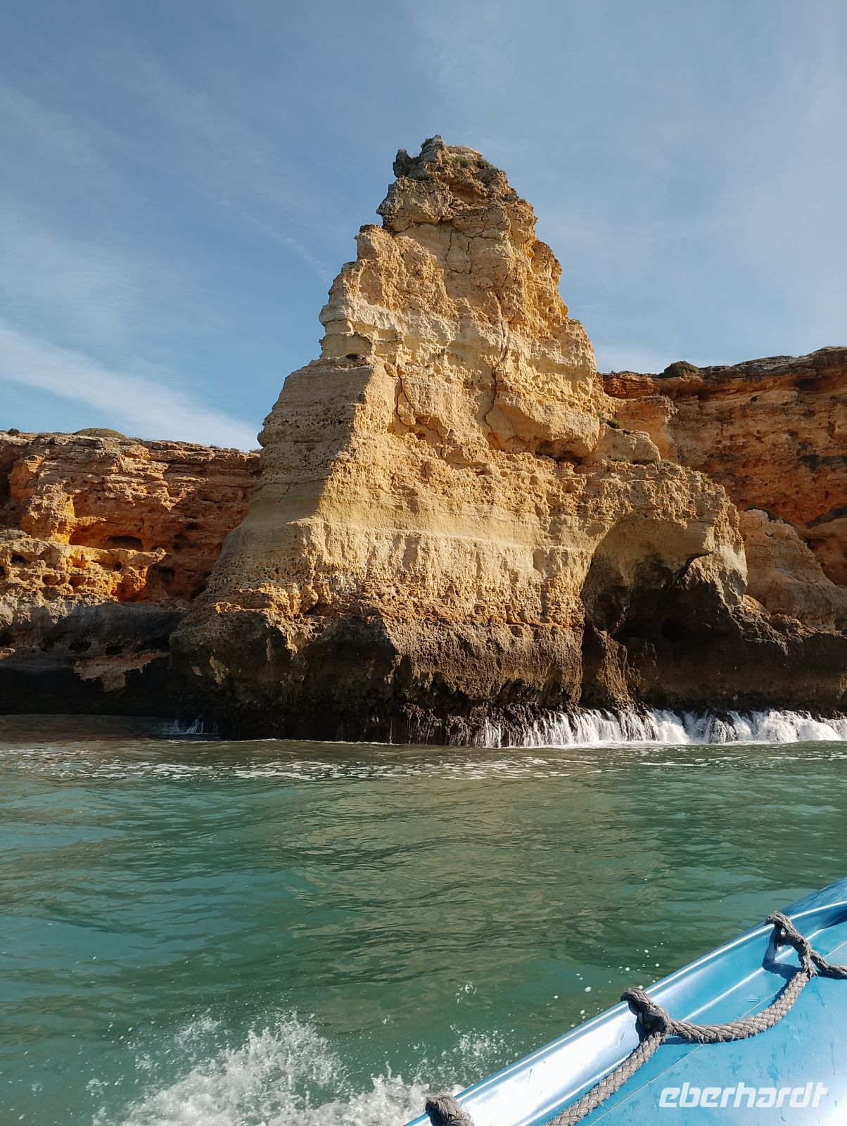 Am Morgen wurden wir direkt am Hotel abgeholt und zum Hafen von Portimão gebracht. Von dort startete eine rund zweistündige Bootstour entlang der eindrucksvollen Algarve-Küste mit ihren goldfarbenen Felsformationen, Grotten und versteckten Buchten. Unsere Gruppe hatte das Boot für sich allein, was die Fahrt besonders angenehm machte. Zum Einsatz kam ein größeres Schlauchboot mit elektrischem Antrieb, das ruhig und komfortabel unterwegs war.