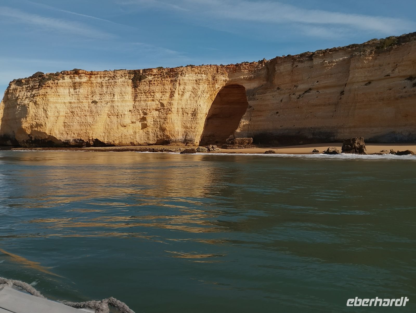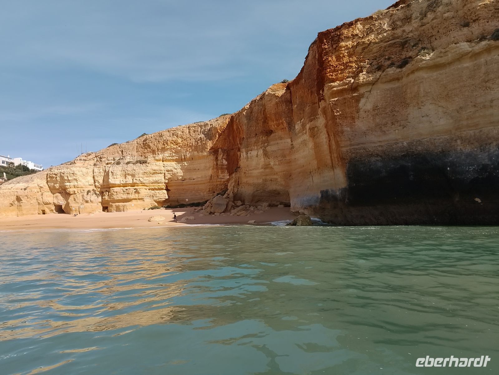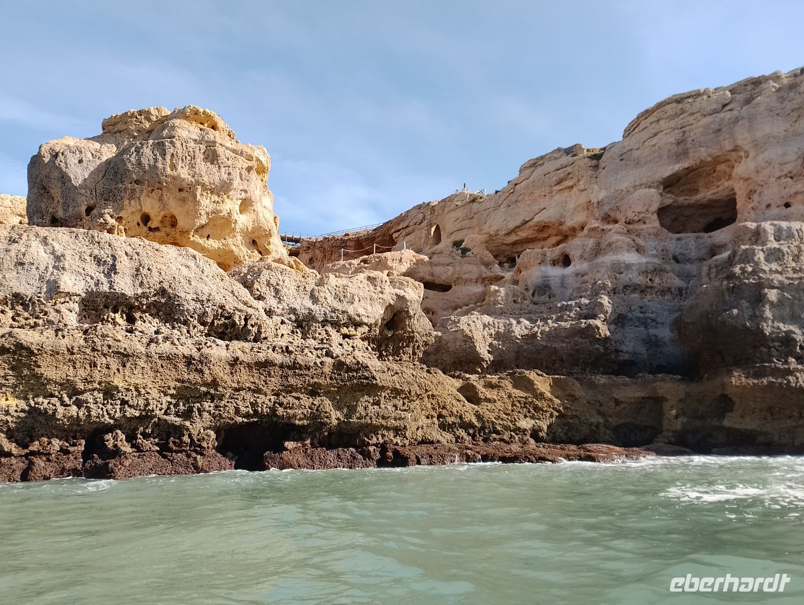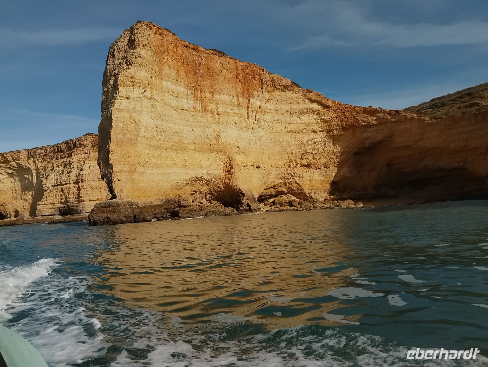 Am Morgen wurden wir direkt am Hotel abgeholt und zum Hafen von Portimão gebracht. Von dort startete eine rund zweistündige Bootstour entlang der eindrucksvollen Algarve-Küste mit ihren goldfarbenen Felsformationen, Grotten und versteckten Buchten. Unsere Gruppe hatte das Boot für sich allein, was die Fahrt besonders angenehm machte. Zum Einsatz kam ein größeres Schlauchboot mit elektrischem Antrieb, das ruhig und komfortabel unterwegs war.