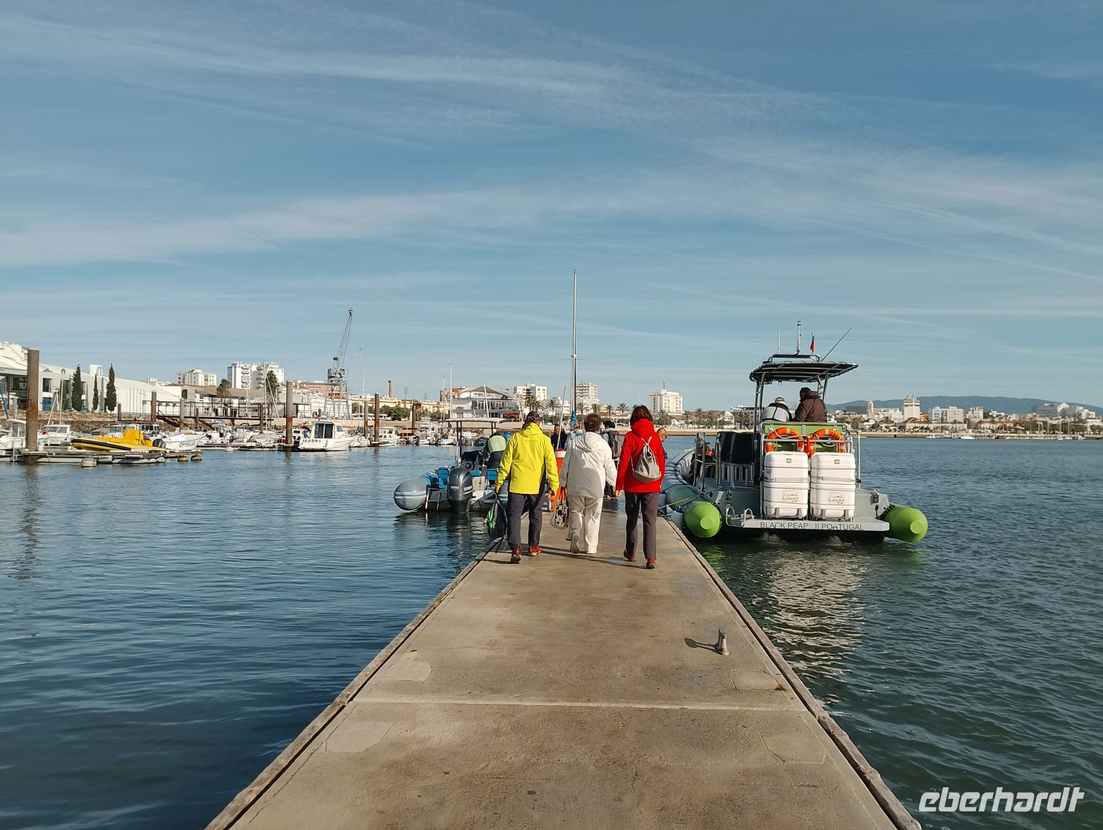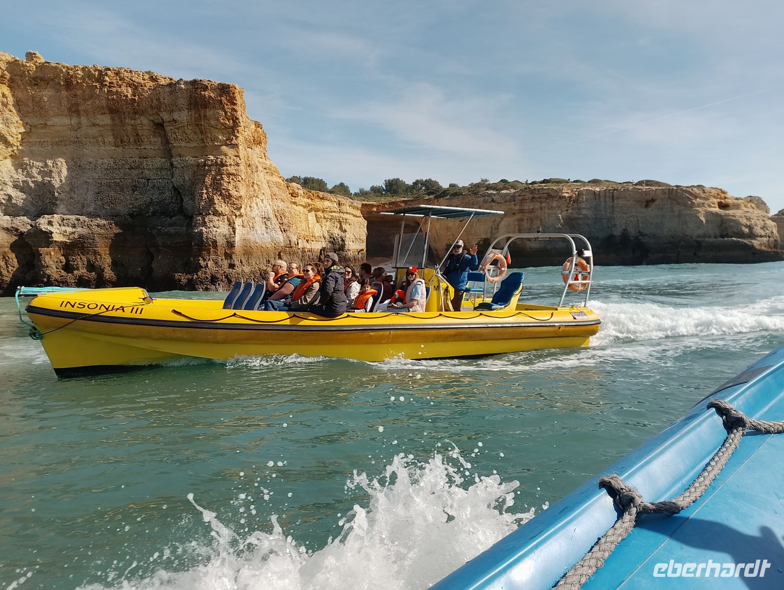 Der letzte volle Reisetag stand grundsätzlich zur freien Verfügung und bot Raum für individuelle Erholung an der Algarve. Gleichzeitig wurde für einen Teil der Gruppe noch ein besonderer zusätzlicher Höhepunkt möglich: Bereits einige Tage zuvor war von Reisebegleitung Marieta eine optionale Bootsfahrt entlang der Küste organisiert worden. Nach Auswahl eines geeigneten Anbieters – auf Empfehlung des Hotels – konnte eine Tour für 11 Personen bestätigt werden Ein wichtiger Aspekt bei der Auswahl war ein sicheres Boot, bei dem die Gäste möglichst trocken bleiben würden – gerade dies erfüllte sich in idealer Weise.
