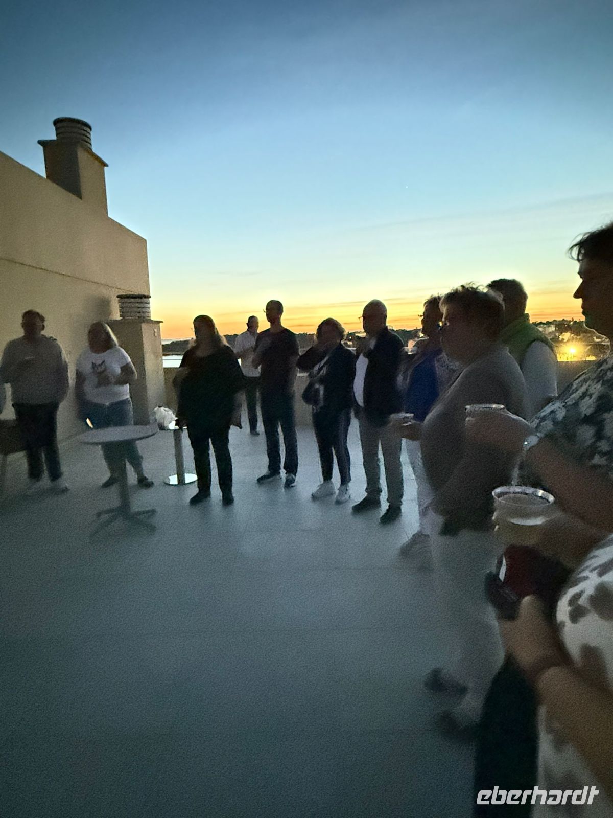 Am Abend traf sich die Gruppe zum gemeinsamen Abschiedsessen im Hotel. Da im Hotel keine geeigneten öffentlichen Räumlichkeiten zur Verfügung standen, entstand dort in fast privatem Rahmen ein besonders schöner Abschluss auf der großen Dachterrasse, die von meinem Zimmer erreichbar war. Für die Gäste hatte ich bereits Weißwein, Rotwein sowie eine Flasche Portwein vorbereitet.