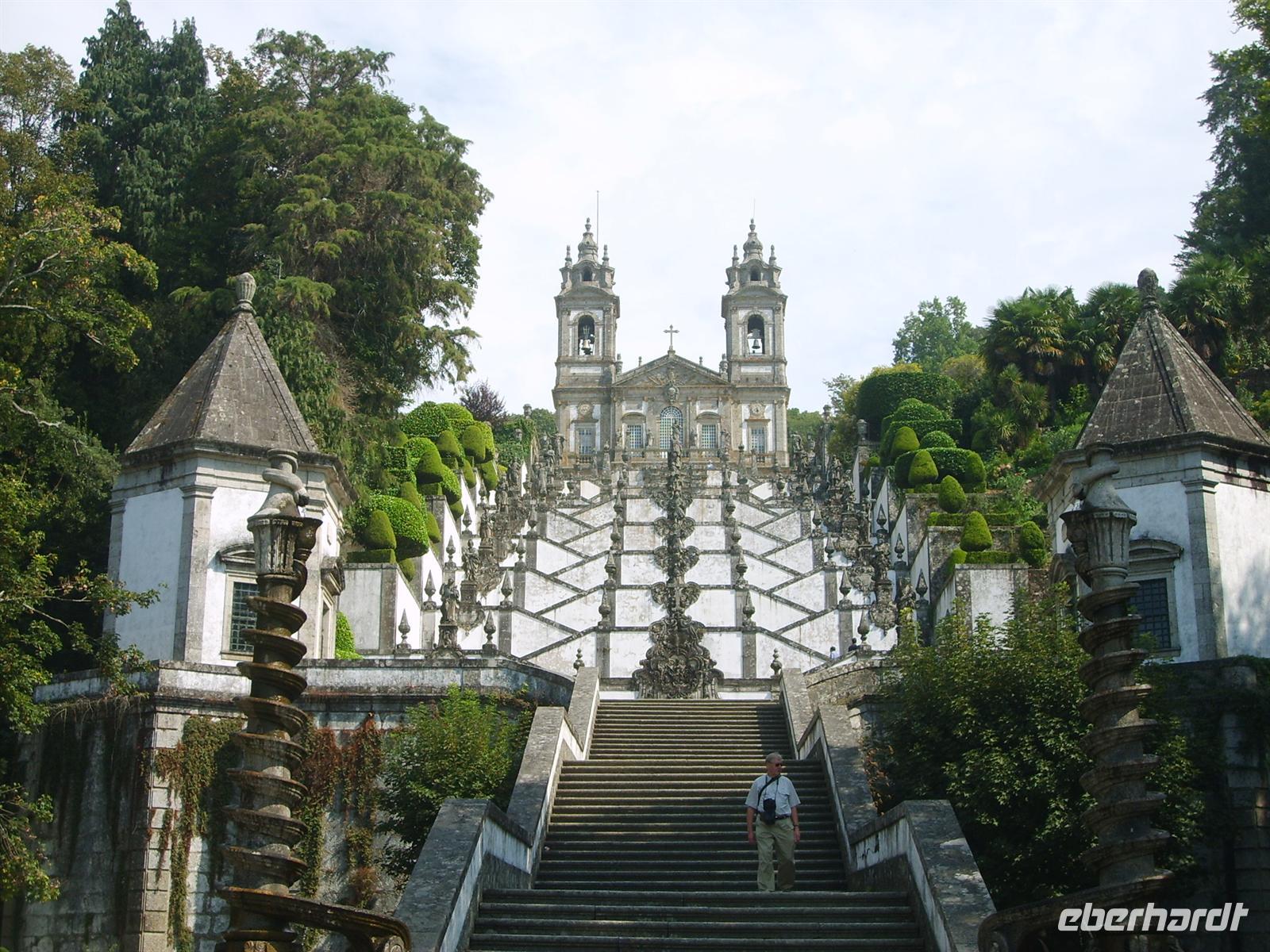 Im puren Sonnenschein erreichten wir den Wallfahrtsort Bom Jesus. Auch hier gingen wir kurzzeitig getrennte Wege. Während einige auf dem Hügel auf die Weiterfahrt des Busses warteten, lief ein großer Teil der Gruppe die 600 Stufen hinab vorbei an den Brunnen der fünf Sinne zum Beginn des Pilgerpfades. Einige fuhren den Weg hinab mit der kleinen Standseilbahn.