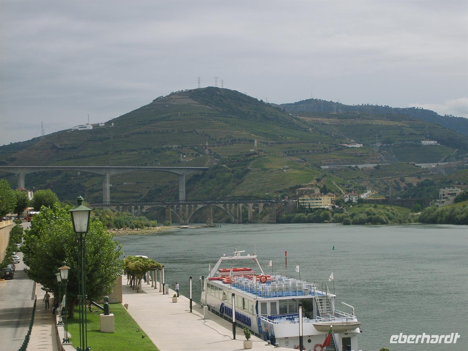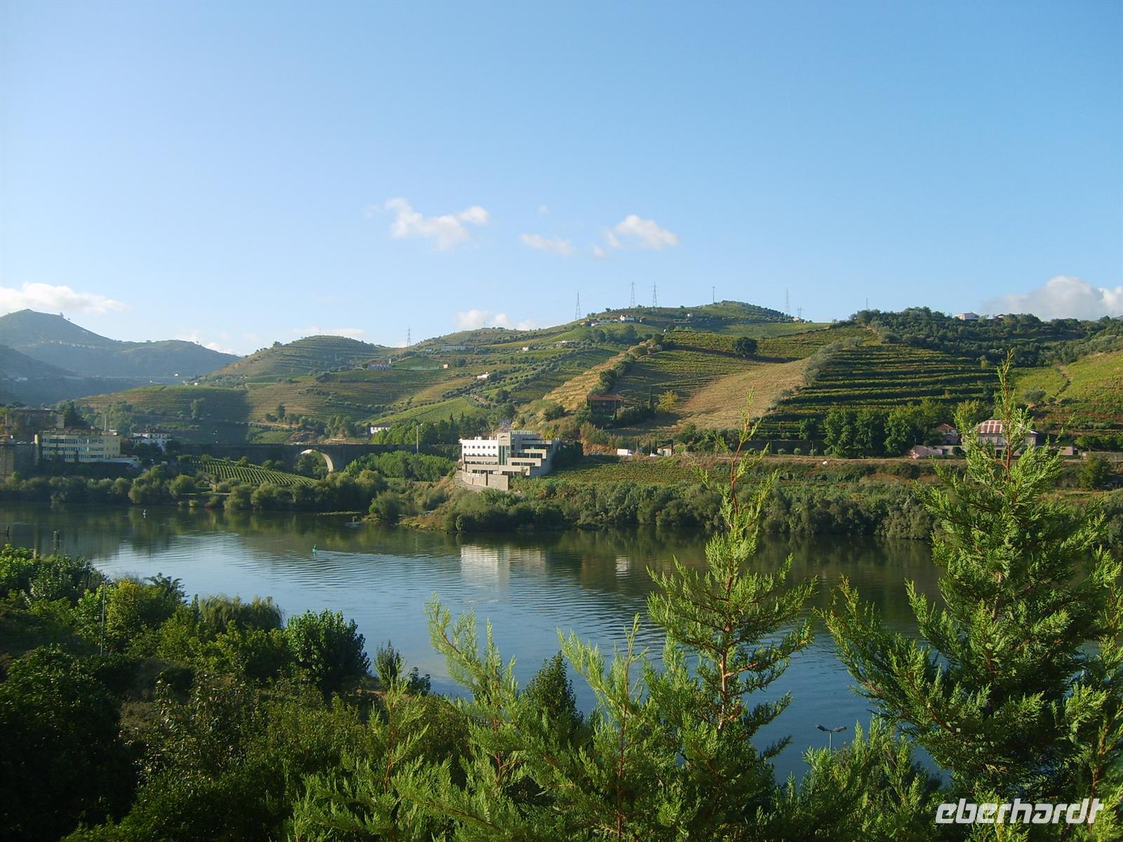 Gegen 13:15 erreichten wir die nächste Etappe unserer Reise: Peso da Regua. In unserer Mittagspause genossen wir portugiesischen Espresso, Tosta Mista, Sardinen, Baguette oder auch andere kleine Köstlichkeiten. Auch der portugiesische Wein sollte an diesem Tag nicht zu kurz kommen. So fuhren wir entlang des Douro mit seinen weitläufigen Weinhängen zum Weingut „Quinta do Tedo“, wo uns ein junger Mann in perfektem Deutsch durch die Räume führte und in die Prozesse der Herstellung des regionalen Weines einweihte. Ein Teil der Gruppe verewigte sich im Gästebuch des Hauses - zu Ehren des heutigen Geburtstags. Dann fuhren wir weiter entlang des Flusses bis nach Pinhao. Neben dem alten Bahnhof mit seinen wunderschönen Kachelbildern, schleuste uns Luisa überraschenderweise durch die Hintertür eines edlen 5-Sterne Hotels im englischen Herrenhausstil. Zu bestaunen gab es einen fürstlicher Essenssaal, ein prächtiger Palmengarten, sowie geräumige Salons zum Lesen und gemütlichen Verweilen. 18 Uhr erreichten wir unser Hotel, von dessen Rezeptionshalle und Restaurant ein romantischer Blick auf das Flussbett des Douro zu genießen war.
