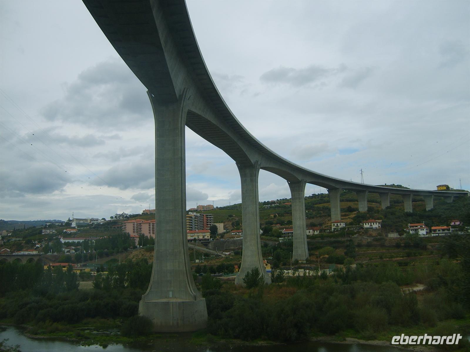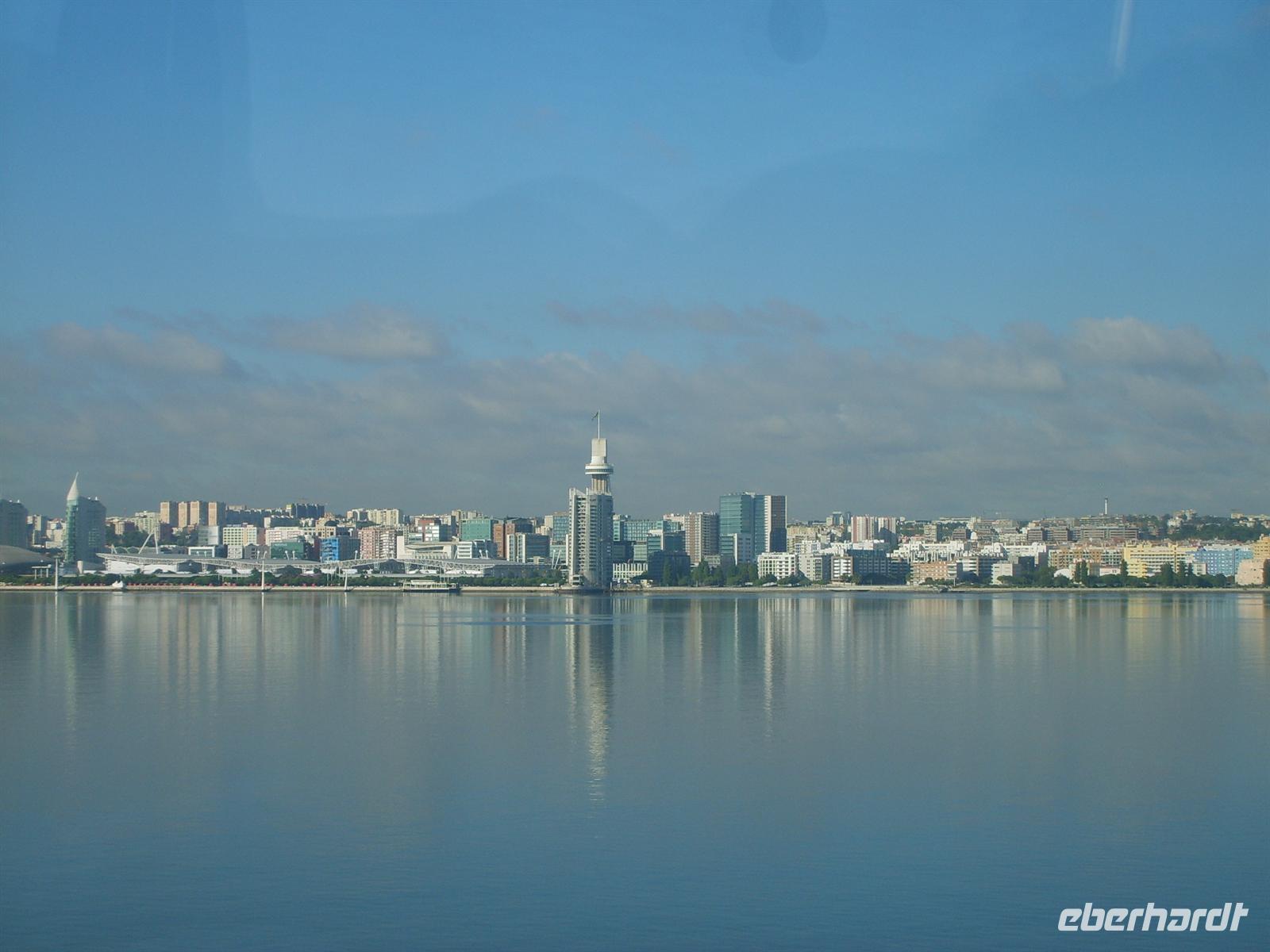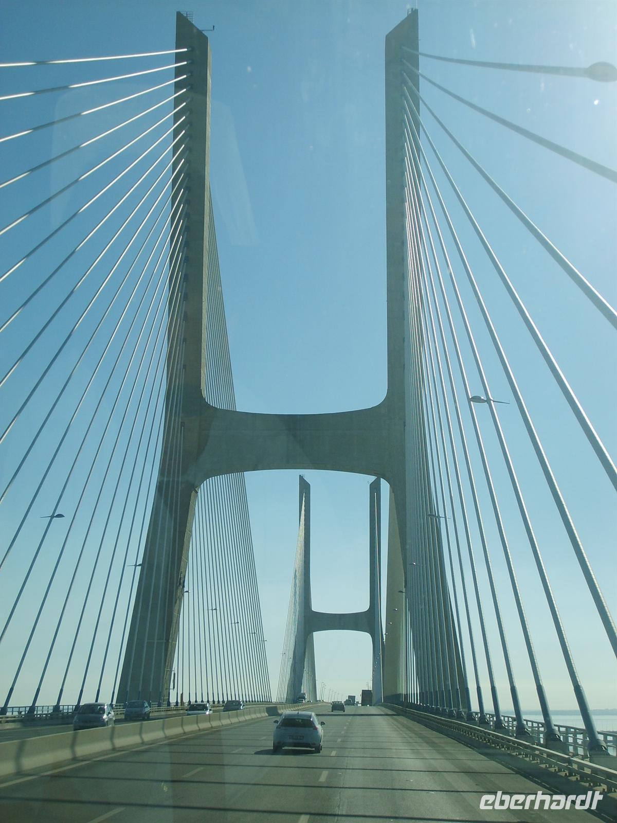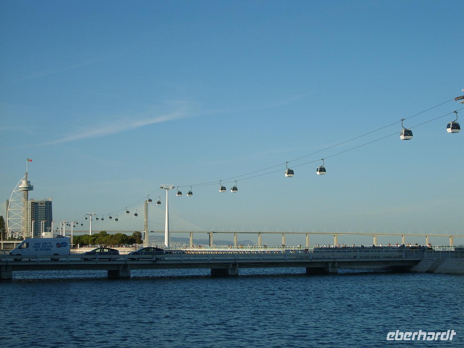 Die Fahrt führte weiter durch den neuen EXPO-Stadtteil. Aus der Stadt hinaus leitet eine wellenförmige Mauer den Weg auf das Gelände. Aus der Stadt hinaus überqueren wir die 17,3 km lange Vasco da Gama - Brücke. Von deren Mitte aus man einen umfassenden Blick auf die Skyline der Hauptstadt gewinnt.