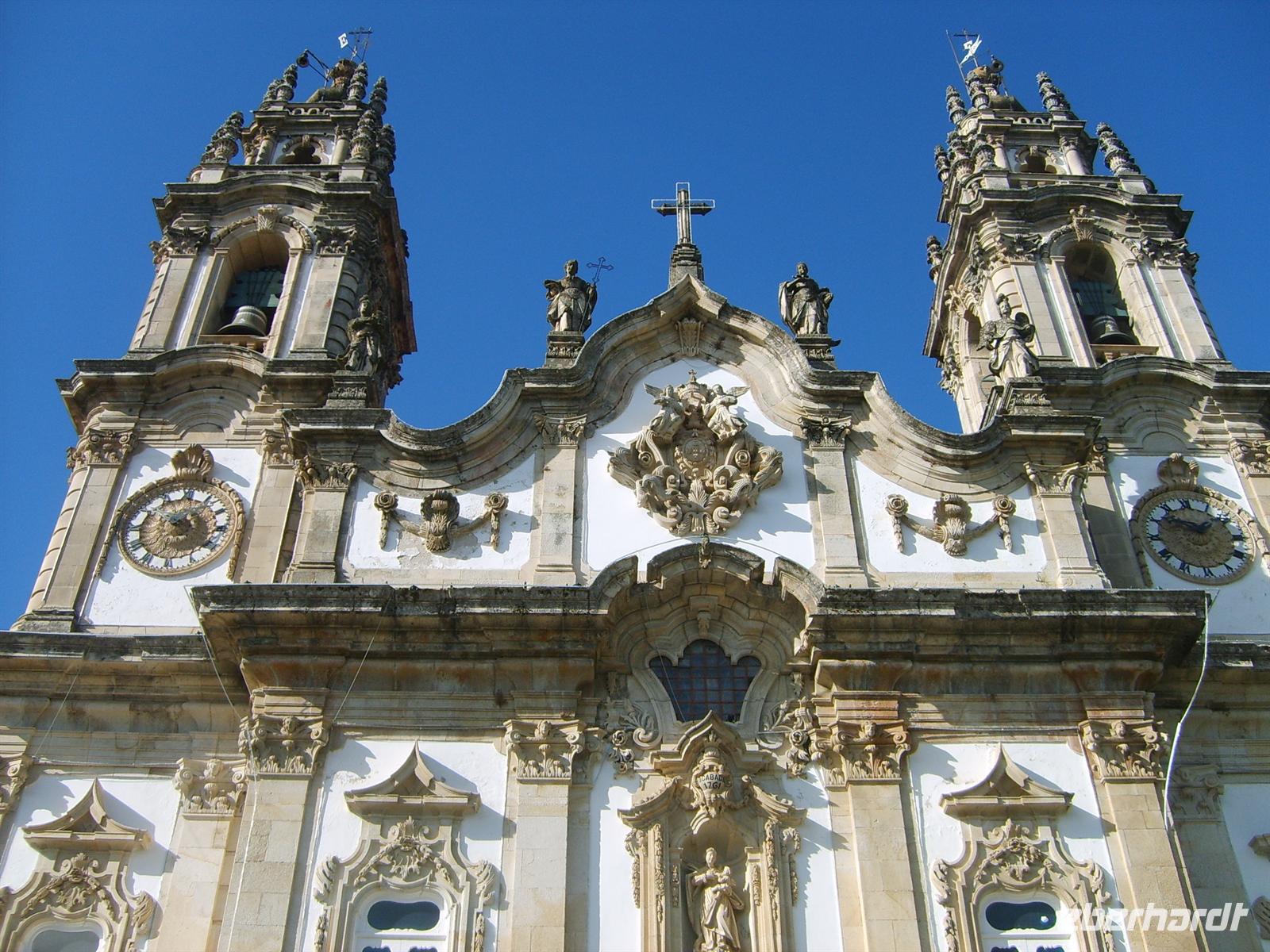 An diesem Morgen war die Wasseroberfläche spiegelglatt, so dass sich die umliegenden Weinberge spiegelten. Nach einem fürstlichen Frühstück starteten wir mit unserem Gepäck in Richtung Lamego. Dieser Punkt wurde von Luisa als Extra eingebaut, da sie uns die wunderschöne Kirche der Stadt nicht vorenthalten wollte. Man sagt von Lamego, dass eine Wasserquelle im Ort heilende Wirkung haben soll, als in der portugiesischen Geschichte ein behinderter Thronfolger gesund gewaschen wurde. In Wahrheit soll der Junge jedoch lediglich durch einen anderen Knaben ausgetauscht worden sein. Doch ob nun heilig oder nicht - wir waren von der Kathedrale der helfenden Maria begeistert. Die schöne Sonne nutzten wir, um unsere Reisegruppe an diesem idyllischen Ort bildlich festzuhalten.