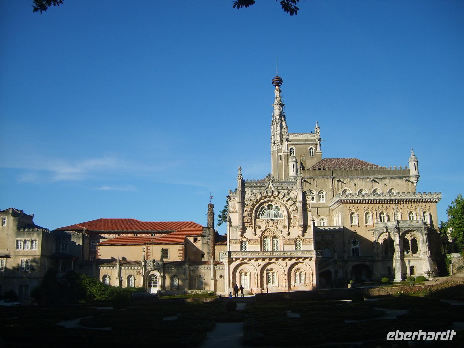 Auf dem Berg angekommen, ragte ein Luxushotel im neo-manuelinischen Stil. Der ehemalige Palast dient heute der Unterbringung von Touristen und der Eintritt ist Leuten, die nicht im Hause Gast sind, verboten. Nach einem kurzen Spaziergang durch den Wald ergab sich uns eine wunderschöne Aussicht über die umliegende Landschaft.