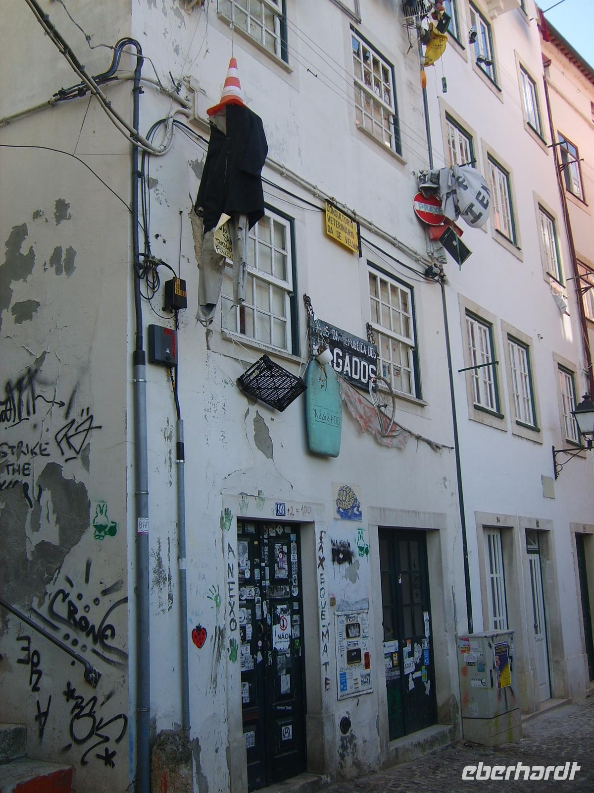 Auf unserem Weg, der hinunter vom Universitätshügel führte, kamen wir an einigen „Studenten-Republiken“ vorbei. Riesige Wohngemeinschaften, die durch das Aufhängen von vielerlei Kram auf sich aufmerksam machen.