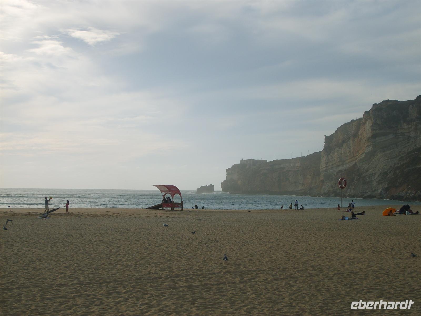 Nach der Besichtigung rückte der Atlantik immer näher. In Nazaré konnten wir uns die Meeresbrise durch Haar wehen lassen und die abendliche Sonne glitzernd auf dem Wasser genießen. Nazaré war früher ein Fischerdorf und ist es auch noch heute. Nur dass sich zahlreiche Hotels und Restaurants zu den traditionellen Fischerhäuschen gesellt haben. Doch auch noch heute kann man einige Bewohner in ihrer traditionellen Tracht erspähen.