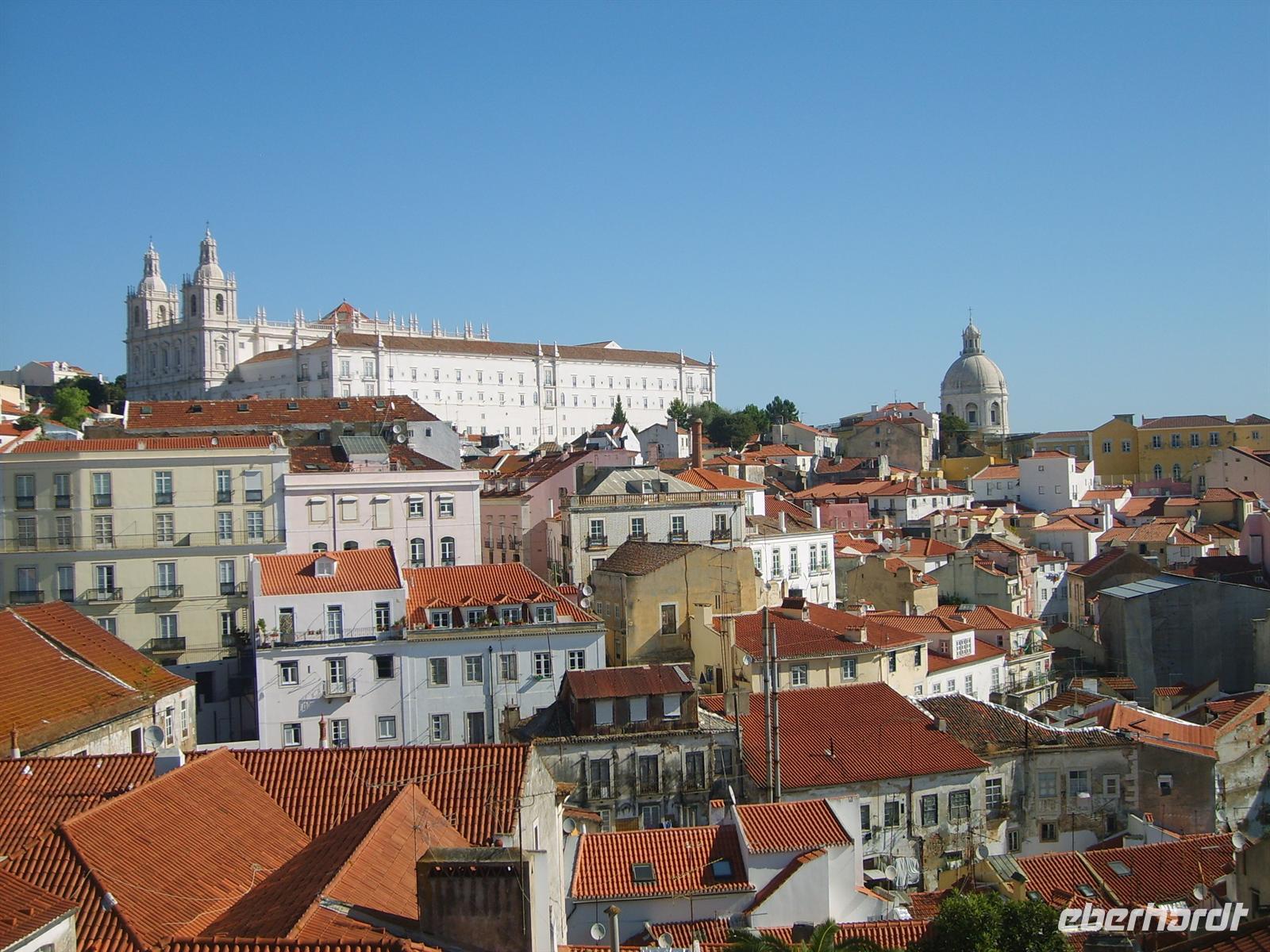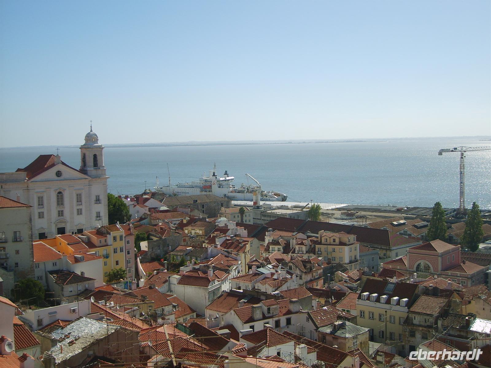 Auch heute starten wir wieder pünktlich 9 Uhr. Heute wird Portugals Hauptstadt erkundet. Nachdem wir uns am nahegelegenen Aussichtspunkt einen ersten Überblick verschafft haben, führt unser Weg in die Kathedrale von Alfama, wo wir durch Luisa ausdrücklich vor Taschendieben gewarnt werden. Die engen Gassen entlang schlendern wir hinunter zum Tejo. Auf den letzten Kilometern vor der Mündung ins offene Meer misst der Fluss eine Breite von 30km.