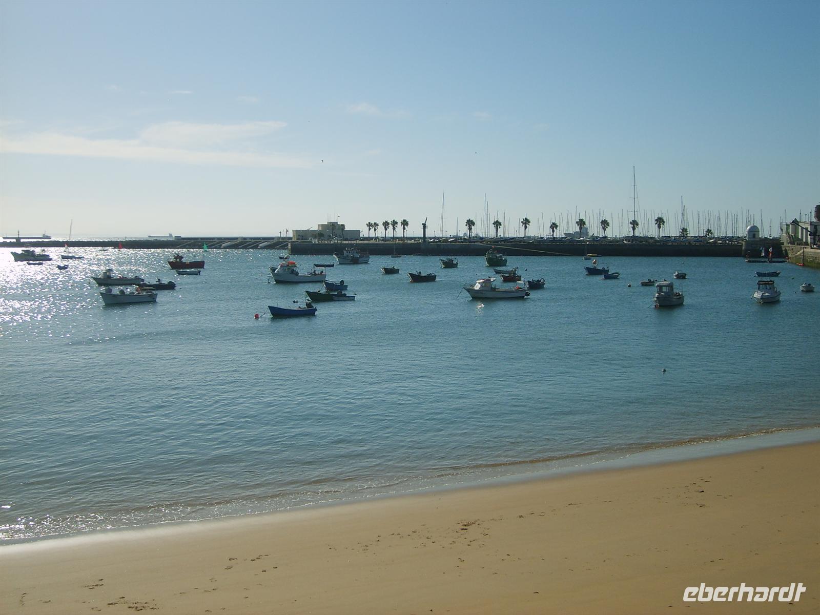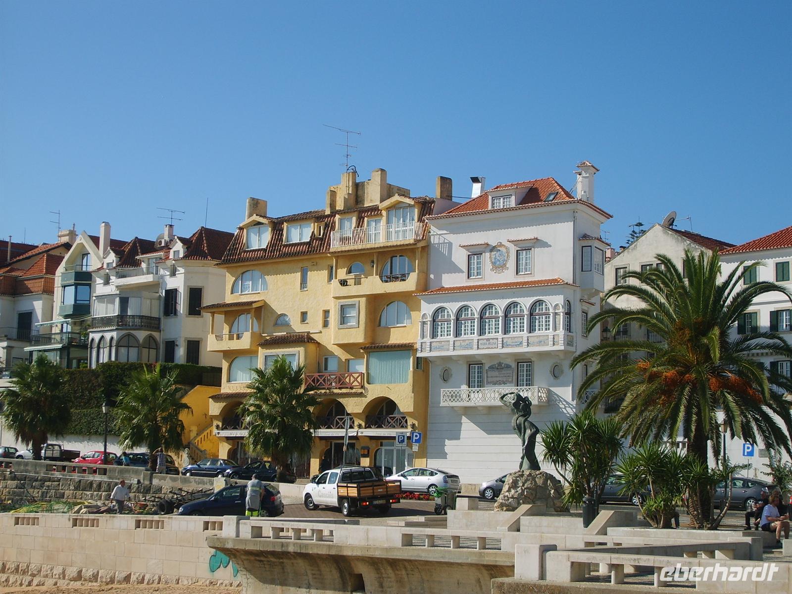 Die sonnige Panoramafahrt entlang des Tejo zeigte vereinzelte Strände, kleine Häfen und winzige Festungen. Wir durchfuhren die Stadt Estoril, den Ort an dem der heutige spanische König Carlos in seiner Kindheit lebte. Cascais erreichten wir 10 Uhr - eine Stadt für Reiche, Fischer und Touristen. Besonders faszinierend war die optische Täuschung, die durch die schwarz-weiß gefliesten Bürgersteige zustande kam. Ebenfalls überraschend war die Beschriftung des Rathauses in deutscher Sprache.