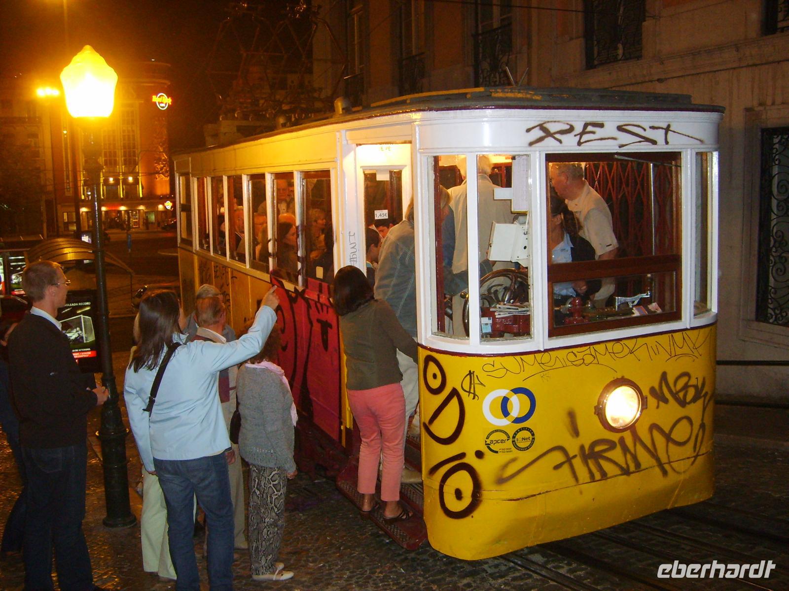 Nach dem heutigen Abendbrot ging es nicht wie sonst auf die Zimmer, sondern in die Metro, um Lisboa auch am Abend kennenzulernen. Per U-Bahn ging es zunächst ins Stadtzentrum, von wo aus wir per Standseilbahn hinauf zu einem Ausblick fuhren, um die beleuchtete Stadt zu bewundern. Nach einem Bummel durch die belebten Gassen mit ihren zahlreichen Cafés und Kneipen holte uns Antonio auf dem Hauptplatz Rossio ab und chauffierte uns zurück ins Hotel.
