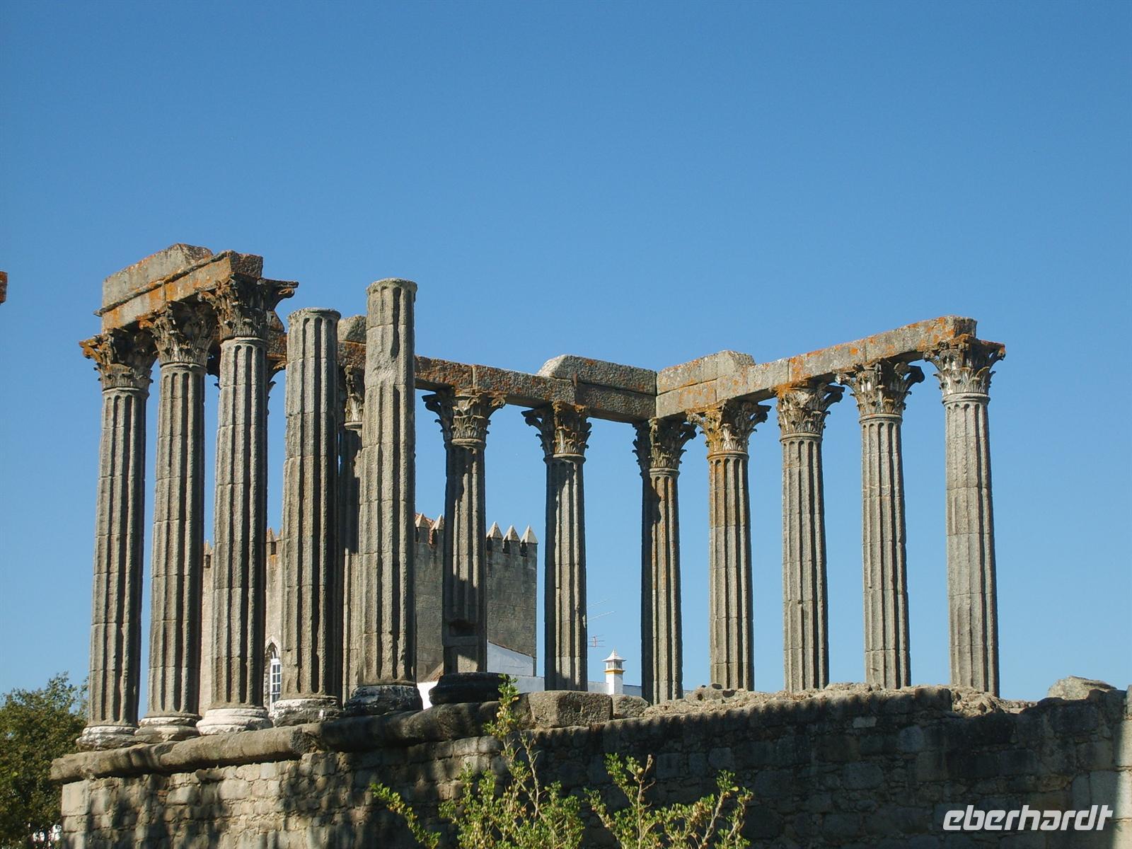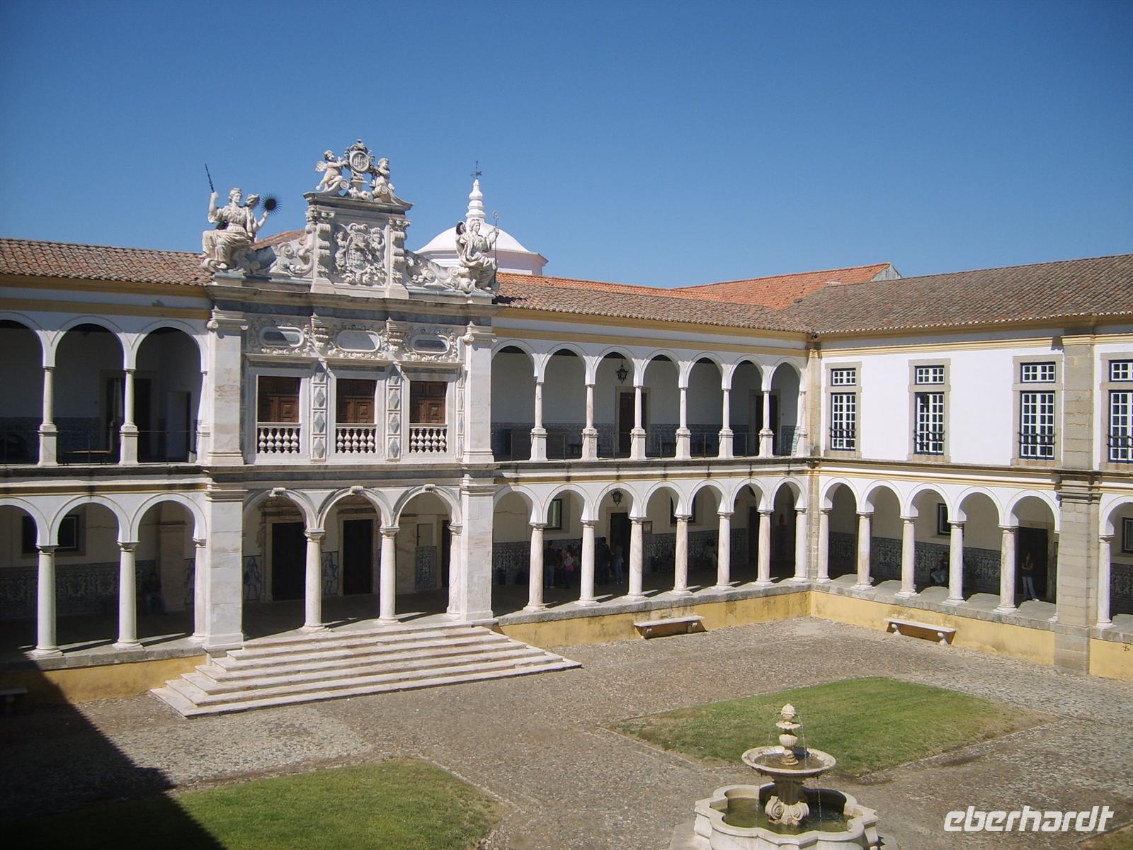 Im Anschluss an den Blick hinter die Kulissen führte die Fahrt weiter nach Èvora, in die Hauptstadt der Region des „Ober-Alentejo“. Die Region ist geprägt von Korkeichenwälder, Steineichen und weite Weiden für Kühe und Schafe. Èvora gilt noch heute als Getreidekammer des Landes. Ein römischer Tempel der Stadt wurde wohl zu Bauzeiten dem Gott des Getreides gewidmet. Doch bevor wir diesen Tempel besichtigten, machten wir Halt an der Universität von Èvora, die in einem ehemaligen untergebracht ist. Da gerade Mittagspause war, hatten wir sogar die Möglichkeit, einen Blick in die Seminarräume zu werfen.