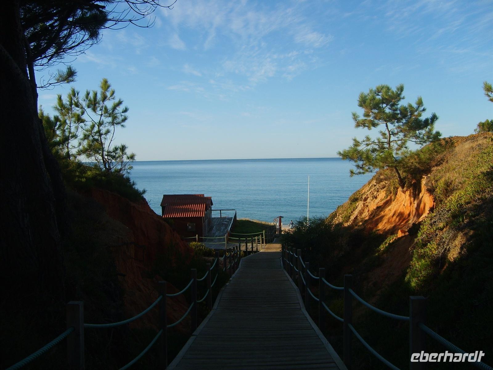 Bei tollstem Sonnenschein begann ein viel versprechender Tag am Meer. Das Hotel Alfamar befindet sich nur 50 Meter vom sauberen langen Sandstrand. Heute hieß es verfrüht Abschied nehmen von Luisa. Sie musste eher nach Porto als zunächst geplant. Per Bus fuhr sie noch bis zum Bahnhof in Albufeira, um dort den Zug nach Porto zu nehmen.