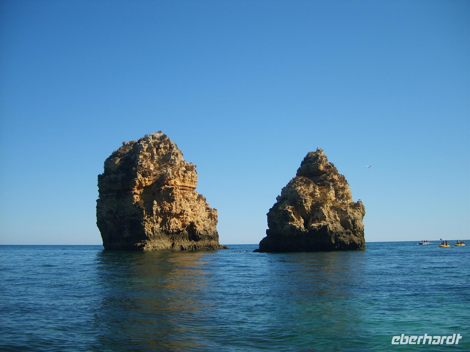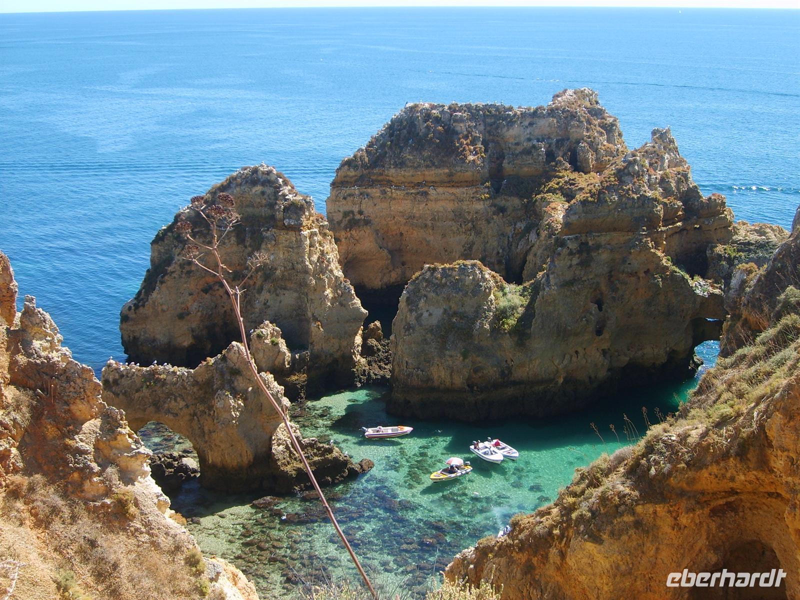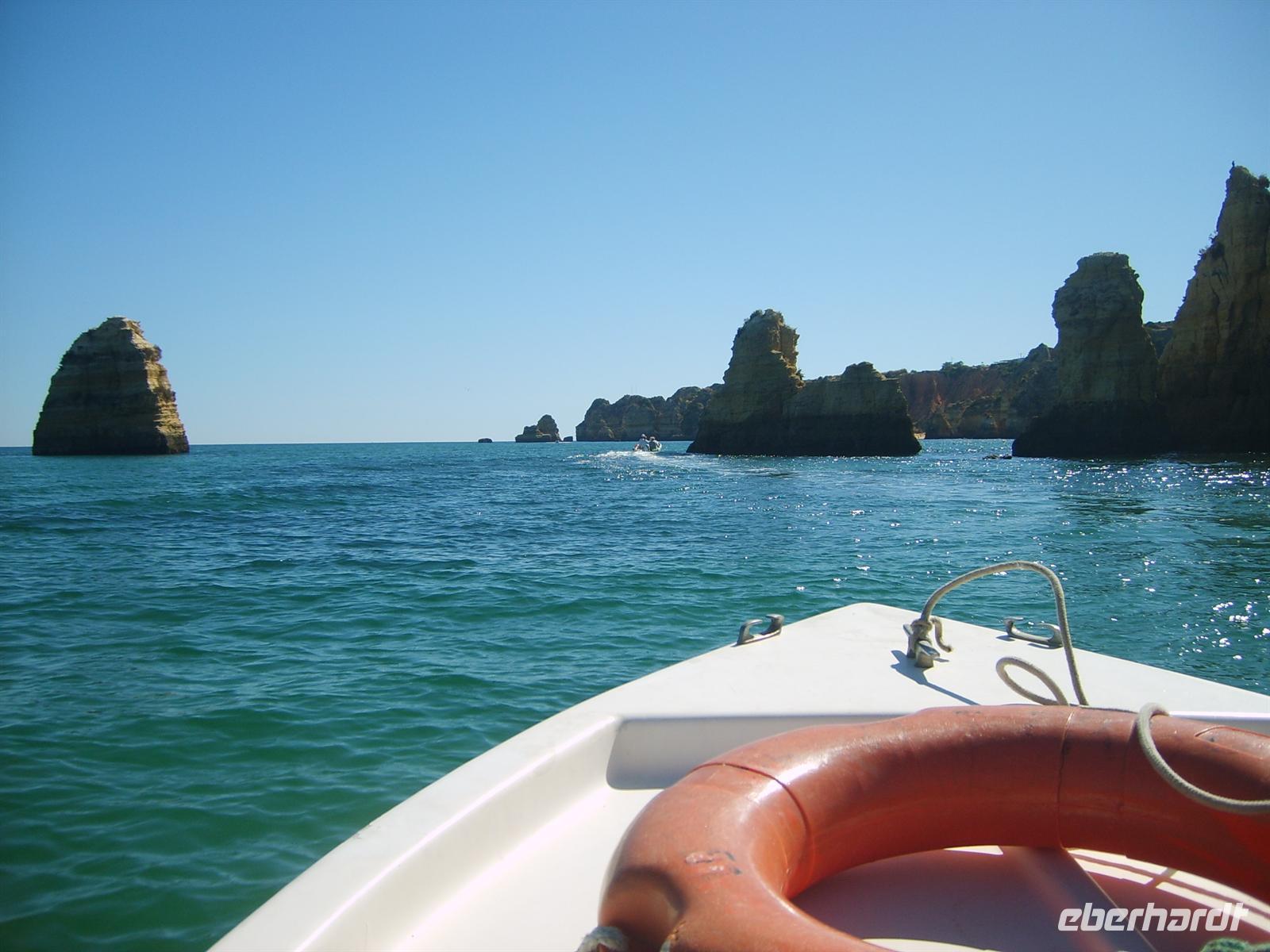 Nächste Station des Tages war Lagos, wo wir auch unsere Mittagspause machten. Nach einem kurzen Stadtrundgang bestiegen wir am kleinen Hafen Motorboote, um die zuvor von oben bestaunten Felsformationen aus nächster Nähe zu betrachten. Mit sehr viel Fantasie erklärte uns der Steuermann mit welchen Gegenständen oder Tieren die jeweiligen Felsen zu vergleichen seien.