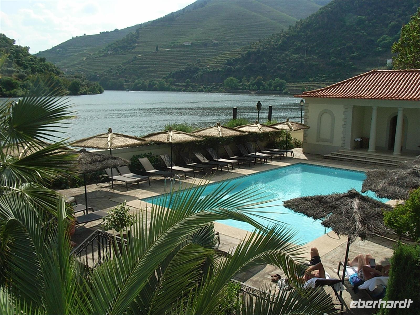 Heute besuchen wir das hübsche Städtchen Amarante und die Kirche des Heiligen Goncalo. Danach reisen wir weiter in unser Super-Hotel REGUA DOURO. Nach einer kleinen Mittagspause hat Luisa für uns eine Fahrt mit der Eisenbahn nach Regua Pinhao geplant. Nach dieser nostalgischen kurzen Reise entlang des Douro führt uns Luisa durch ein chices Hotel am Ufer zum Bus, der uns weiter zur Quinta do Tedo bringt. Hier erwartet uns Carlos bereits zur Portweinverkostung. Lecker! Einige Gäste kaufen Portwein bzw. Olivenöl oder geben eine Bestellung auf.