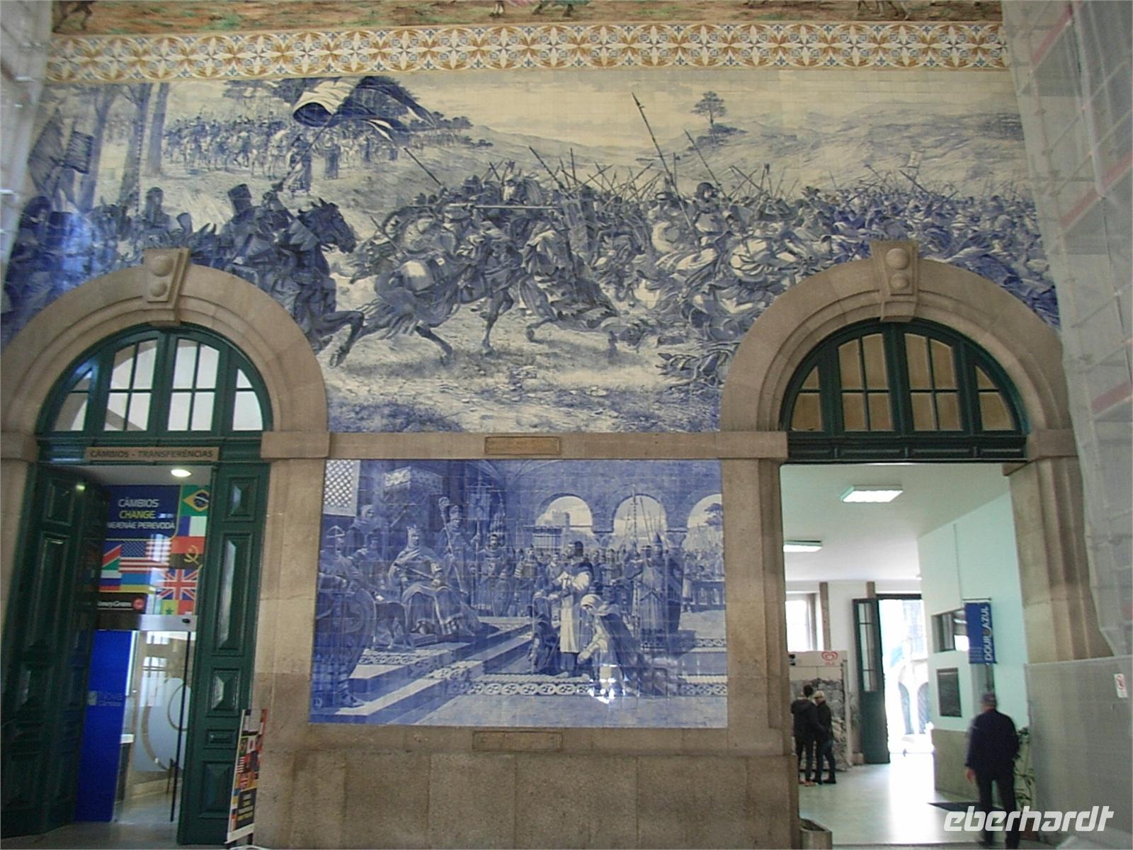 Weiter geht es zum Torre und zum Vogelmarkt, Wir sehen das Alte Rathaus, den Platz Praca de Libertade mit dem Denkmal von Pedro IV., die Praca de Almeida Garrett, den Bahnhof mit seinen berühmten Kacheln und das Benediktiner-Kloster mit dem Bischhofspalast. Nach diesen vielen wunderschönen Eindrücken haben wir uns eine genüßliche Pause verdient!