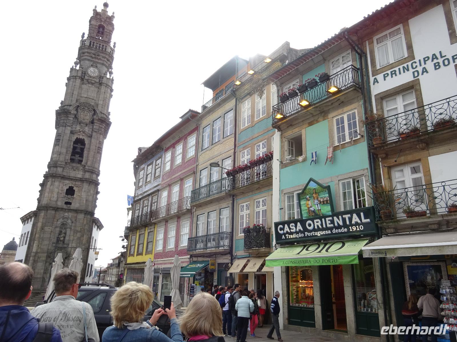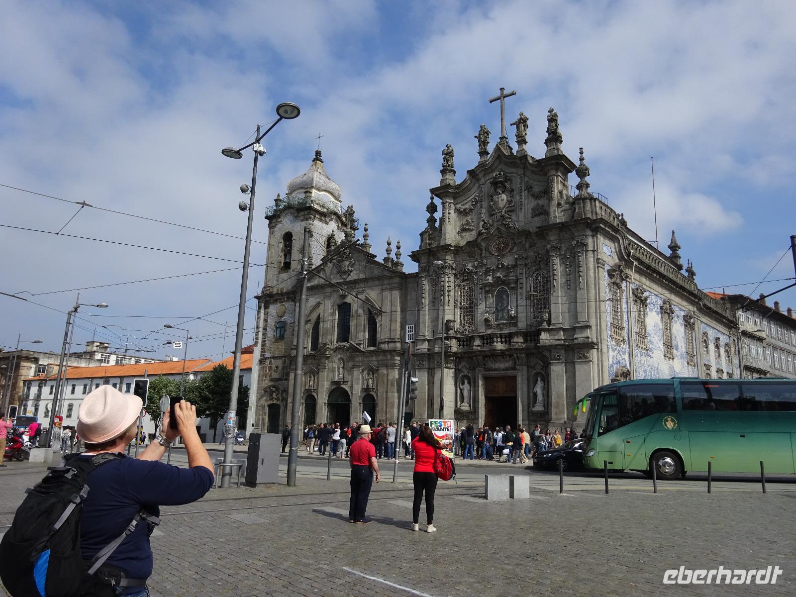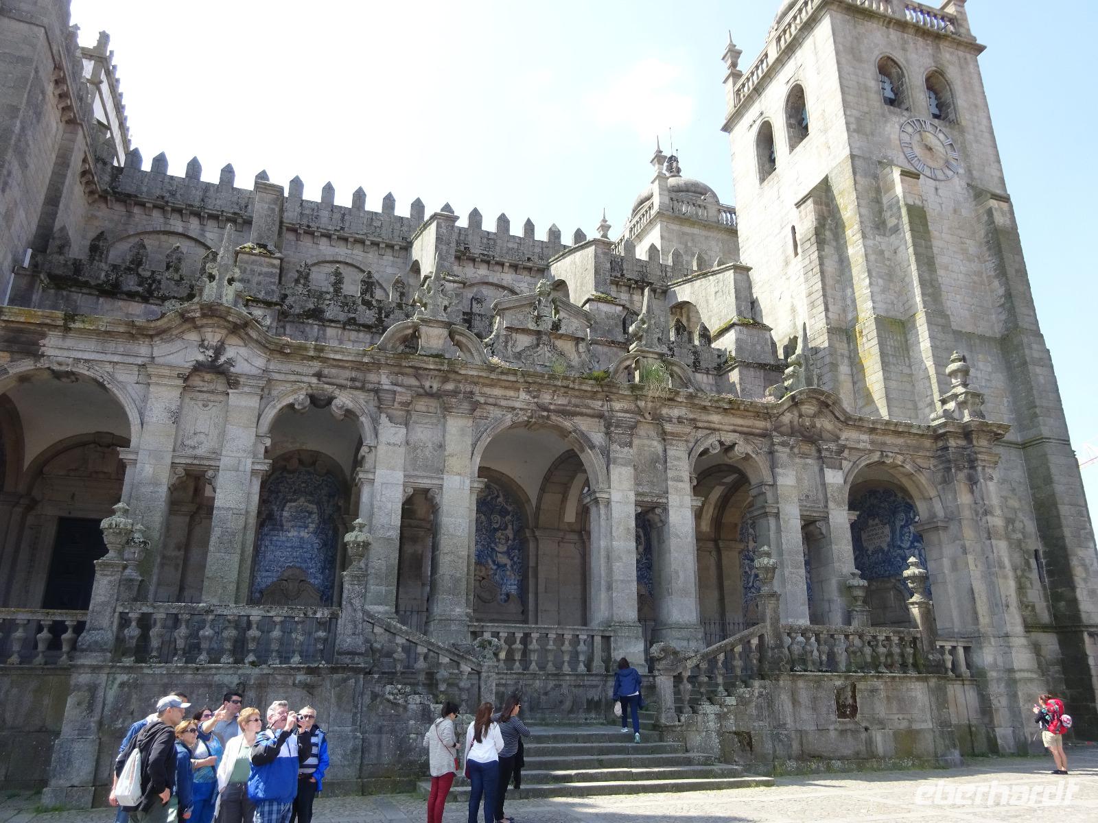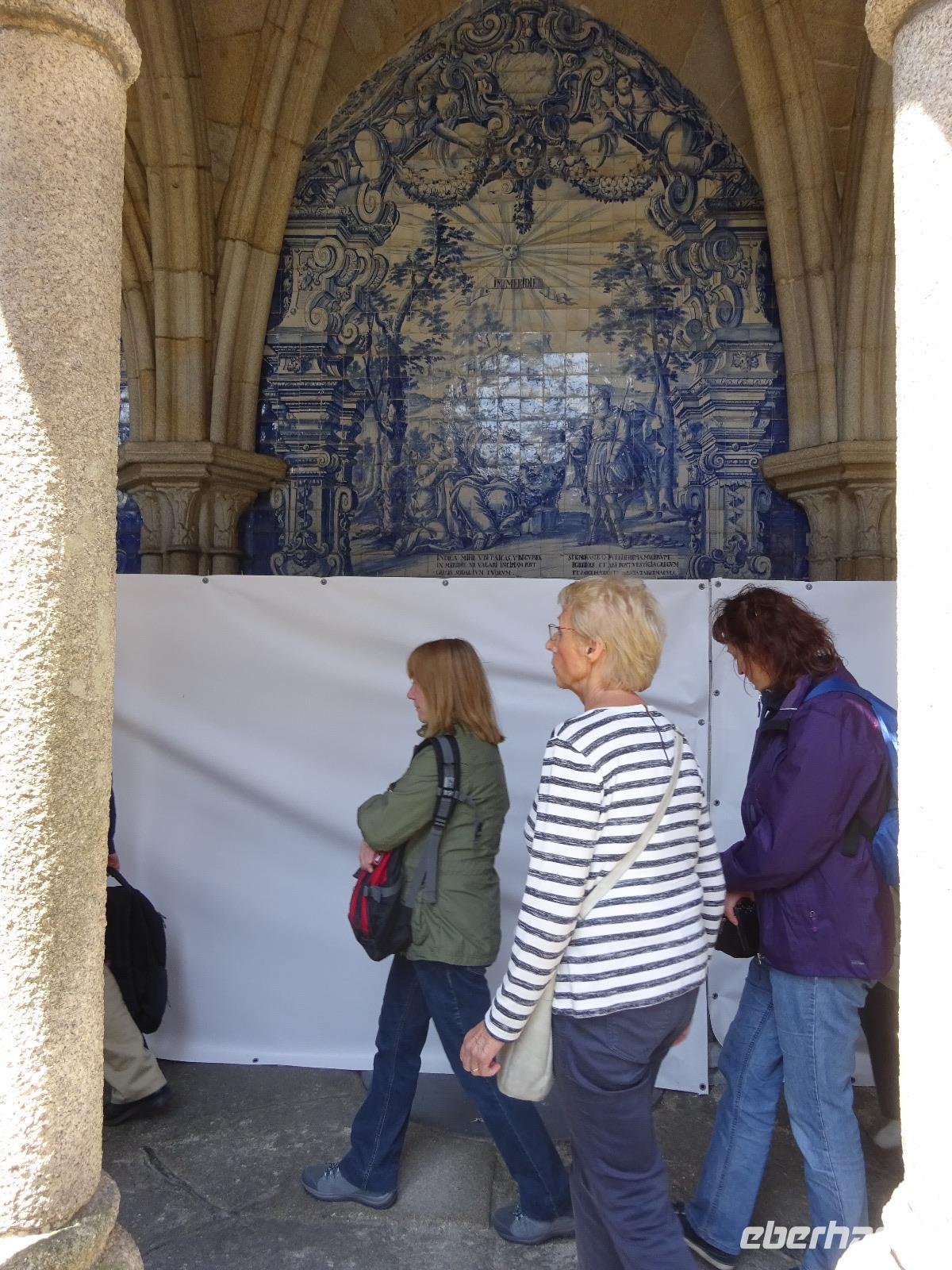 Gut gelaunt trafen wir uns mit Isabell. Heute wollten wir Porto erkunden. Unser Busfahrer Silverio fuhr uns direkt in das Stadtzentrum, Isabel erzählte uns Interessantes zu den einzelnen Plätzen, die wir passierten. Wir sahen viele, mit den typischen blauen Fliesen (Azulejos) verzierte Häuser und Kirchen. Vorbei an der Zwillingskirche Carmelitas und Carmo hielt unser Bus am nahe gelegenem Park Cordoria. Von hier aus ging es zu Fuß weiter. Wir sahen die Kirche dos Clérigos und entdeckten den Buchladen, der als Vorlage der bekannten Harry Potter-Bibliothek diente. Nun hatten wir Zeit, die Gegend um den Park und die Doppelkirche zu erkunden. Unser nächster Programmpunkt galt der imposanten Kathedrale Se in der Altstadt. Zuerst besichtigten wir die Kirche und anschließend den interessanten Kreuzgang. Unser Spaziergang führte uns weiter zur Bogenbrücke Ponte Dom Luis I. auf die obere Fahrbahnebene. 45 Meter Höhe sind sehr gewaltig, wenn man denn oben steht und die wunderschöne Aussicht auf Porto und Vila Nova de Gaia genießen kann. Weiter ging es zum Bahnhof Sao Bento, der uns mit seiner tollen Vorhalle beeindruckte. Die unzähligen Azulejos stellten Bilder aus der Geschichte Portugals dar. So sah man unter anderem Heinrich den Seefahrer bei der Eroberung Ceutas oder Egas Moniz' vor dem König Afonso VII von Kastilien und Léon. Die Einkaufsstraße Santa Catalina ließ anschließend die Frauenherzen höher schlagen. Wir hatten wir genügend Zeit, einen kleinen Snack zu essen, in den zahlreichen Geschäften zu stöbern oder sogar im Jugendstil-Café Majestic, in welchem Joanne K. Rowling die ersten Kapitel des Harry Potter-Buches schrieb, einen Kaffee zu trinken. Am weiteren Nachmittag bestand die Möglichkeit, mit dem Bus zum Hotel zurück zufahren oder für weitere individuelle Erkundungen in der Stadt. Gemeinsam spazierten wir Stadterkundler zum Bahnhof zurück und erkundeten jeder nach eigener Fasson die schmalen Straßen der Stadt. Mit der Metro ging es dann wieder über die Bogenbrücke zurück zum Hotel. Gemeinsam trafen wir uns abends, um am Flussufer des Douro in einem hübschen Restaurant zu Abend zu essen. Im Restaurant Bacalhoeiro wurden wir bereits erwartet und wie der Name schon andeutet, konnten wir frischen leckeren Stockfisch sowie andere portugiesische Leckereien essen. Ein abendlicher Spaziergang am Ufer entlang ließ diesen Tag entspannt zu Ende gehen.