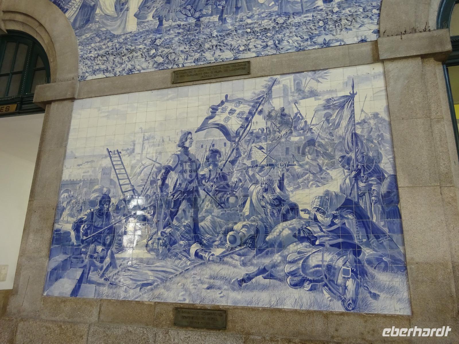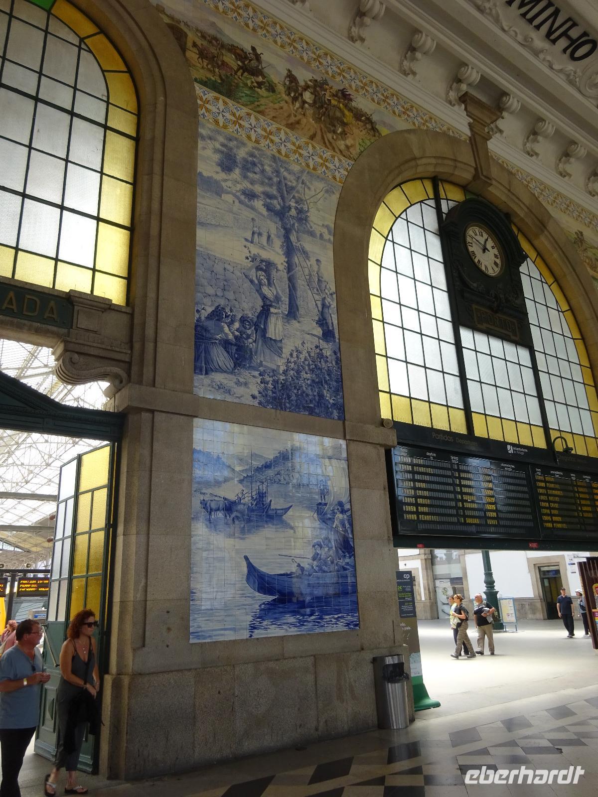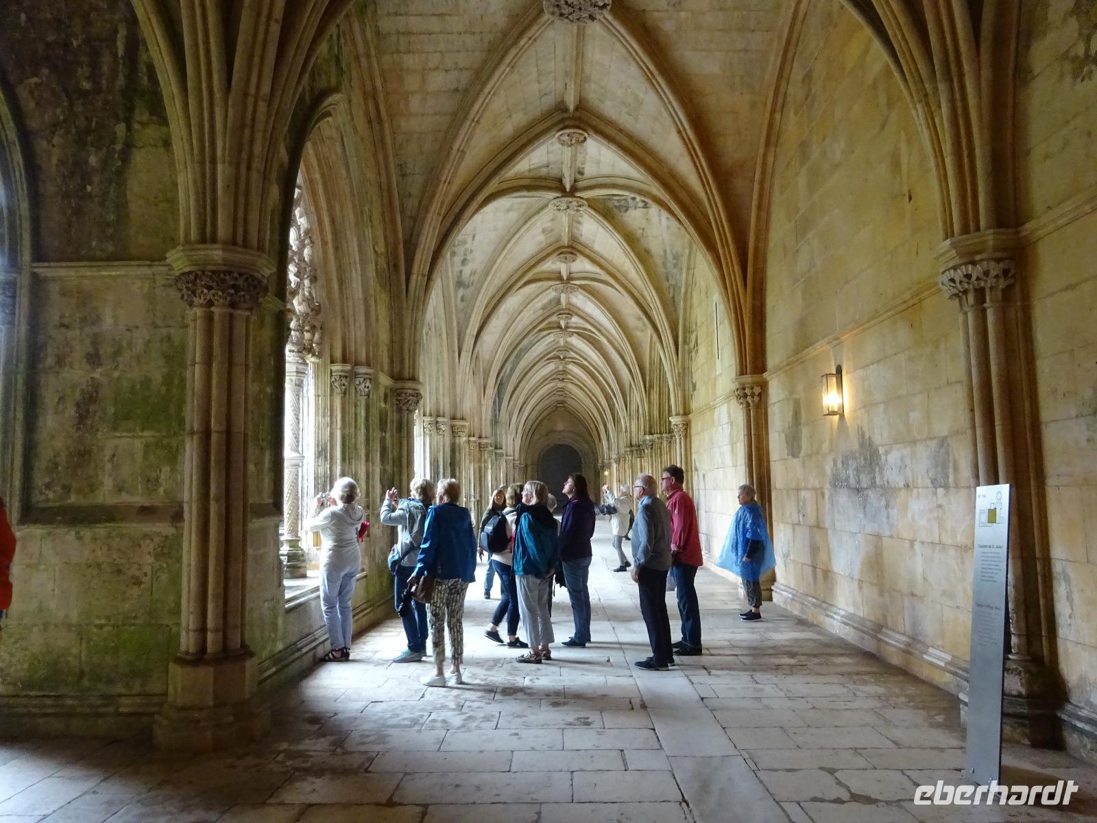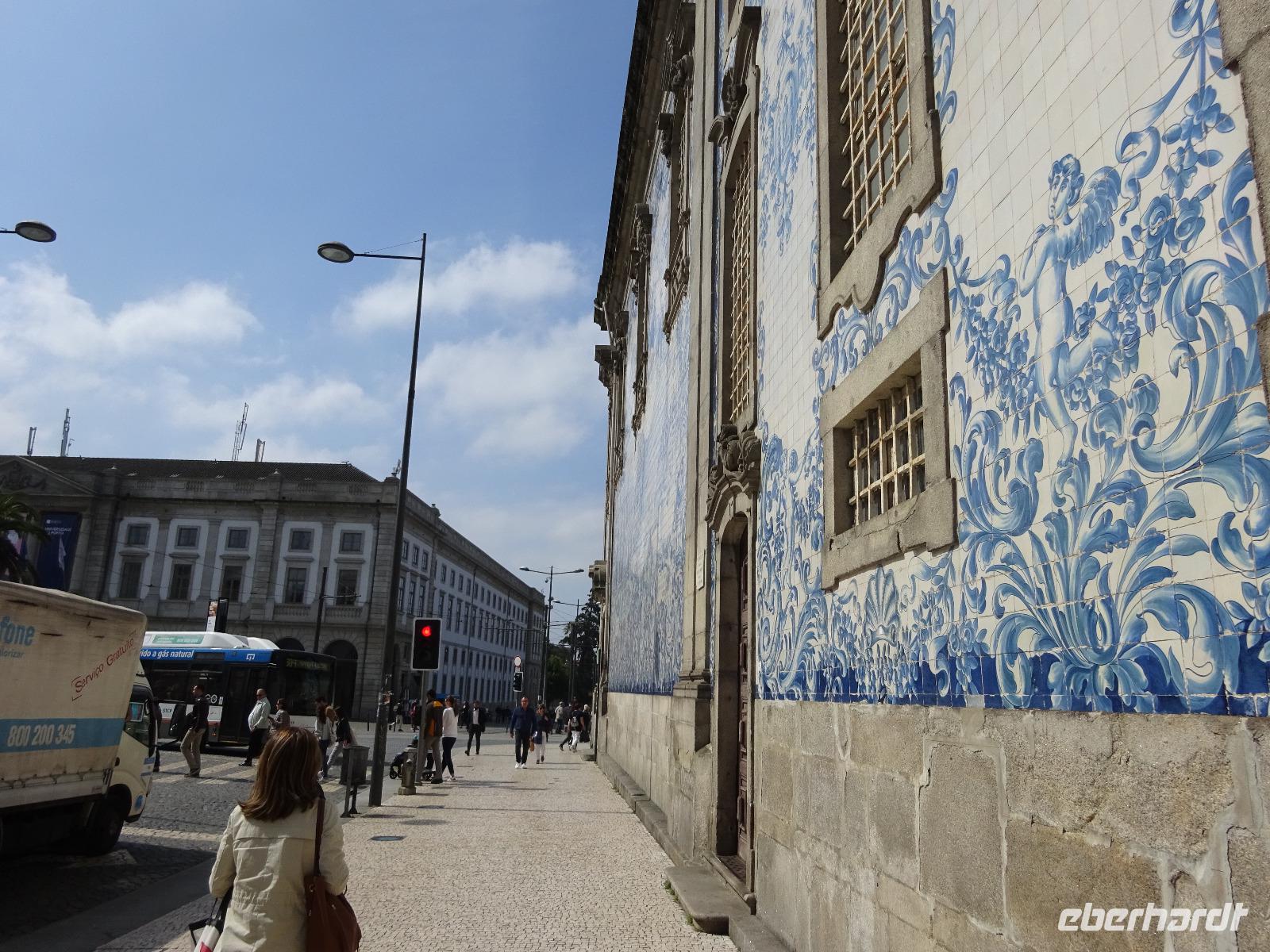 Gut gelaunt trafen wir uns mit Isabell. Heute wollten wir Porto erkunden. Unser Busfahrer Silverio fuhr uns direkt in das Stadtzentrum, Isabel erzählte uns Interessantes zu den einzelnen Plätzen, die wir passierten. Wir sahen viele, mit den typischen blauen Fliesen (Azulejos) verzierte Häuser und Kirchen. Vorbei an der Zwillingskirche Carmelitas und Carmo hielt unser Bus am nahe gelegenem Park Cordoria. Von hier aus ging es zu Fuß weiter. Wir sahen die Kirche dos Clérigos und entdeckten den Buchladen, der als Vorlage der bekannten Harry Potter-Bibliothek diente. Nun hatten wir Zeit, die Gegend um den Park und die Doppelkirche zu erkunden. Unser nächster Programmpunkt galt der imposanten Kathedrale Se in der Altstadt. Zuerst besichtigten wir die Kirche und anschließend den interessanten Kreuzgang. Unser Spaziergang führte uns weiter zur Bogenbrücke Ponte Dom Luis I. auf die obere Fahrbahnebene. 45 Meter Höhe sind sehr gewaltig, wenn man denn oben steht und die wunderschöne Aussicht auf Porto und Vila Nova de Gaia genießen kann. Weiter ging es zum Bahnhof Sao Bento, der uns mit seiner tollen Vorhalle beeindruckte. Die unzähligen Azulejos stellten Bilder aus der Geschichte Portugals dar. So sah man unter anderem Heinrich den Seefahrer bei der Eroberung Ceutas oder Egas Moniz' vor dem König Afonso VII von Kastilien und Léon. Die Einkaufsstraße Santa Catalina ließ anschließend die Frauenherzen höher schlagen. Wir hatten wir genügend Zeit, einen kleinen Snack zu essen, in den zahlreichen Geschäften zu stöbern oder sogar im Jugendstil-Café Majestic, in welchem Joanne K. Rowling die ersten Kapitel des Harry Potter-Buches schrieb, einen Kaffee zu trinken. Am weiteren Nachmittag bestand die Möglichkeit, mit dem Bus zum Hotel zurück zufahren oder für weitere individuelle Erkundungen in der Stadt. Gemeinsam spazierten wir Stadterkundler zum Bahnhof zurück und erkundeten jeder nach eigener Fasson die schmalen Straßen der Stadt. Mit der Metro ging es dann wieder über die Bogenbrücke zurück zum Hotel. Gemeinsam trafen wir uns abends, um am Flussufer des Douro in einem hübschen Restaurant zu Abend zu essen. Im Restaurant Bacalhoeiro wurden wir bereits erwartet und wie der Name schon andeutet, konnten wir frischen leckeren Stockfisch sowie andere portugiesische Leckereien essen. Ein abendlicher Spaziergang am Ufer entlang ließ diesen Tag entspannt zu Ende gehen.
