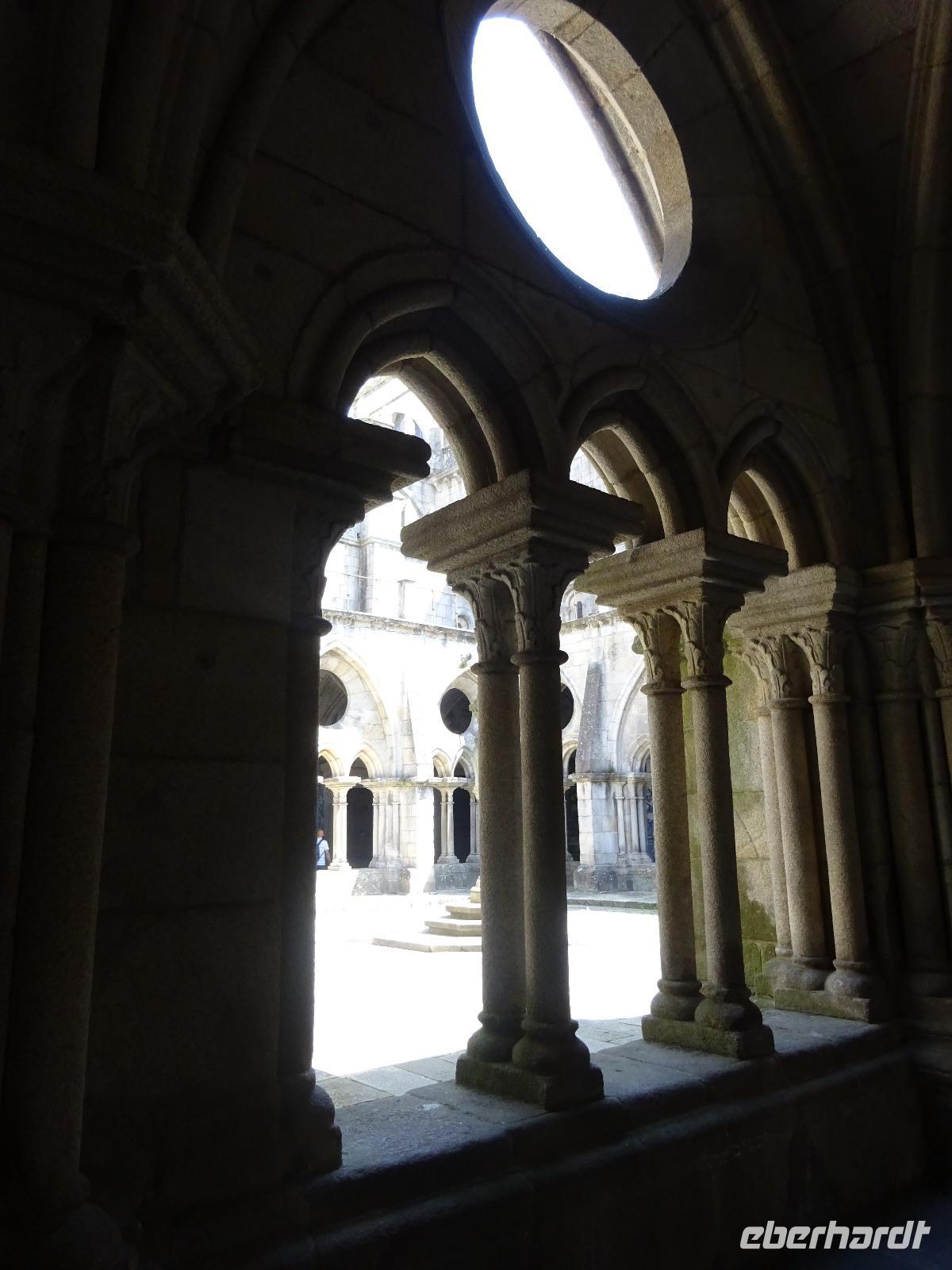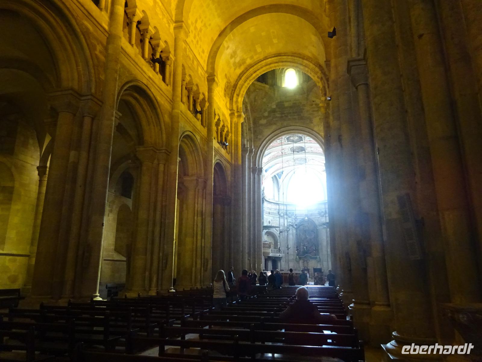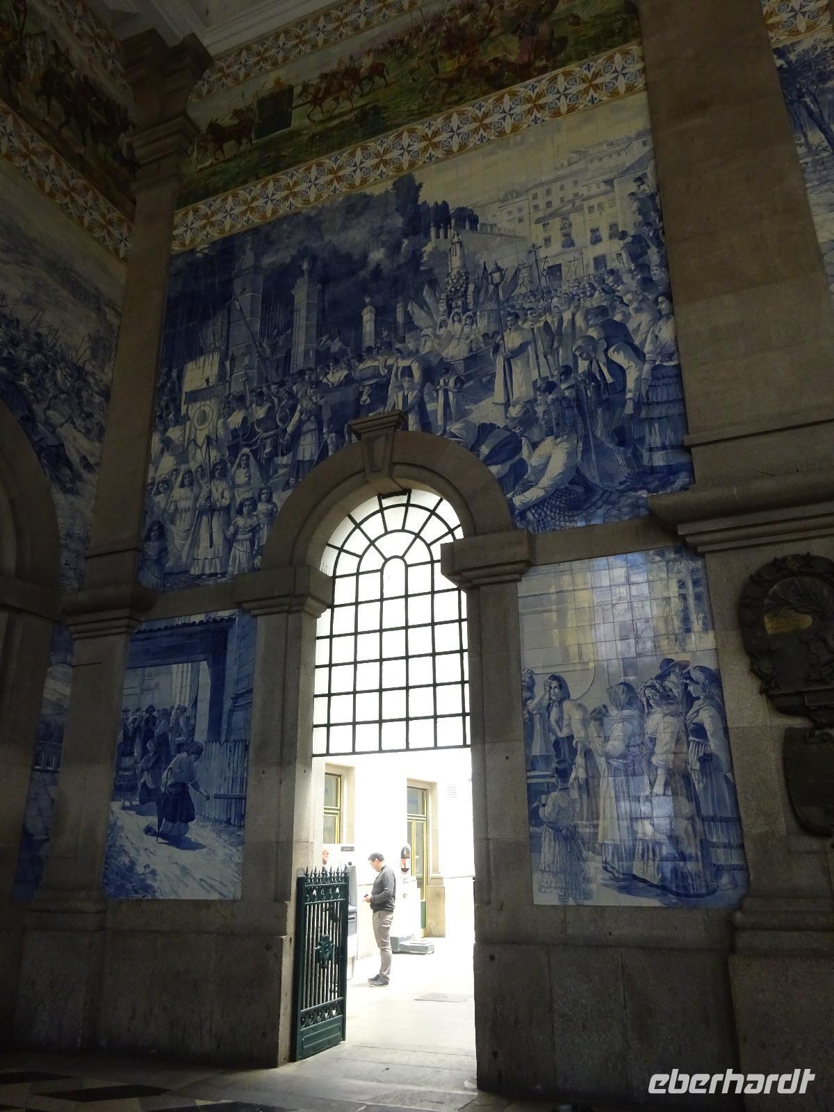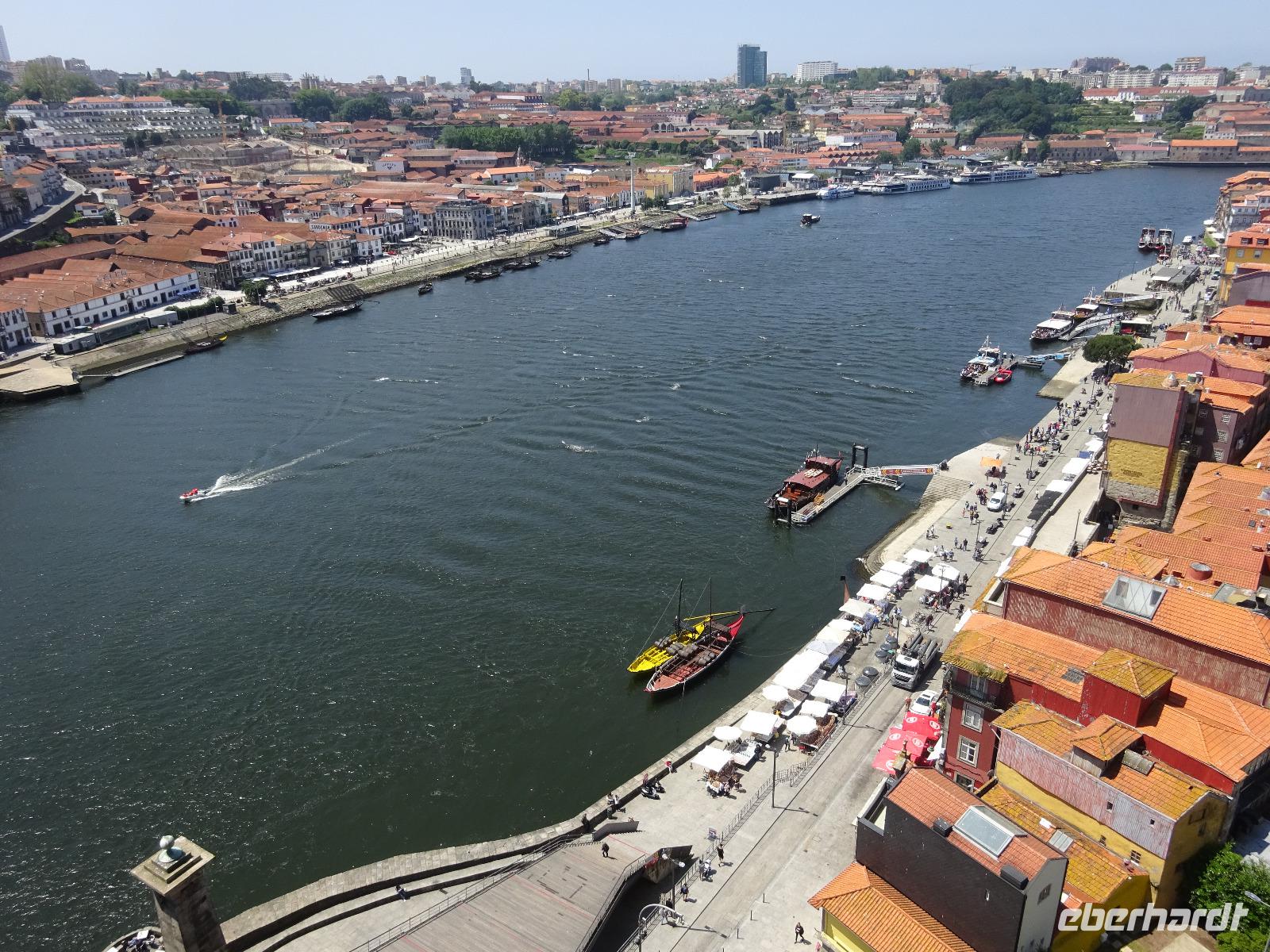 Gut gelaunt trafen wir uns mit Isabell. Heute wollten wir Porto erkunden. Unser Busfahrer Silverio fuhr uns direkt in das Stadtzentrum, Isabel erzählte uns Interessantes zu den einzelnen Plätzen, die wir passierten. Wir sahen viele, mit den typischen blauen Fliesen (Azulejos) verzierte Häuser und Kirchen. Vorbei an der Zwillingskirche Carmelitas und Carmo hielt unser Bus am nahe gelegenem Park Cordoria. Von hier aus ging es zu Fuß weiter. Wir sahen die Kirche dos Clérigos und entdeckten den Buchladen, der als Vorlage der bekannten Harry Potter-Bibliothek diente. Nun hatten wir Zeit, die Gegend um den Park und die Doppelkirche zu erkunden. Unser nächster Programmpunkt galt der imposanten Kathedrale Se in der Altstadt. Zuerst besichtigten wir die Kirche und anschließend den interessanten Kreuzgang. Unser Spaziergang führte uns weiter zur Bogenbrücke Ponte Dom Luis I. auf die obere Fahrbahnebene. 45 Meter Höhe sind sehr gewaltig, wenn man denn oben steht und die wunderschöne Aussicht auf Porto und Vila Nova de Gaia genießen kann. Weiter ging es zum Bahnhof Sao Bento, der uns mit seiner tollen Vorhalle beeindruckte. Die unzähligen Azulejos stellten Bilder aus der Geschichte Portugals dar. So sah man unter anderem Heinrich den Seefahrer bei der Eroberung Ceutas oder Egas Moniz' vor dem König Afonso VII von Kastilien und Léon. Die Einkaufsstraße Santa Catalina ließ anschließend die Frauenherzen höher schlagen. Wir hatten wir genügend Zeit, einen kleinen Snack zu essen, in den zahlreichen Geschäften zu stöbern oder sogar im Jugendstil-Café Majestic, in welchem Joanne K. Rowling die ersten Kapitel des Harry Potter-Buches schrieb, einen Kaffee zu trinken. Am weiteren Nachmittag bestand die Möglichkeit, mit dem Bus zum Hotel zurück zufahren oder für weitere individuelle Erkundungen in der Stadt. Gemeinsam spazierten wir Stadterkundler zum Bahnhof zurück und erkundeten jeder nach eigener Fasson die schmalen Straßen der Stadt. Mit der Metro ging es dann wieder über die Bogenbrücke zurück zum Hotel. Gemeinsam trafen wir uns abends, um am Flussufer des Douro in einem hübschen Restaurant zu Abend zu essen. Im Restaurant Bacalhoeiro wurden wir bereits erwartet und wie der Name schon andeutet, konnten wir frischen leckeren Stockfisch sowie andere portugiesische Leckereien essen. Ein abendlicher Spaziergang am Ufer entlang ließ diesen Tag entspannt zu Ende gehen.